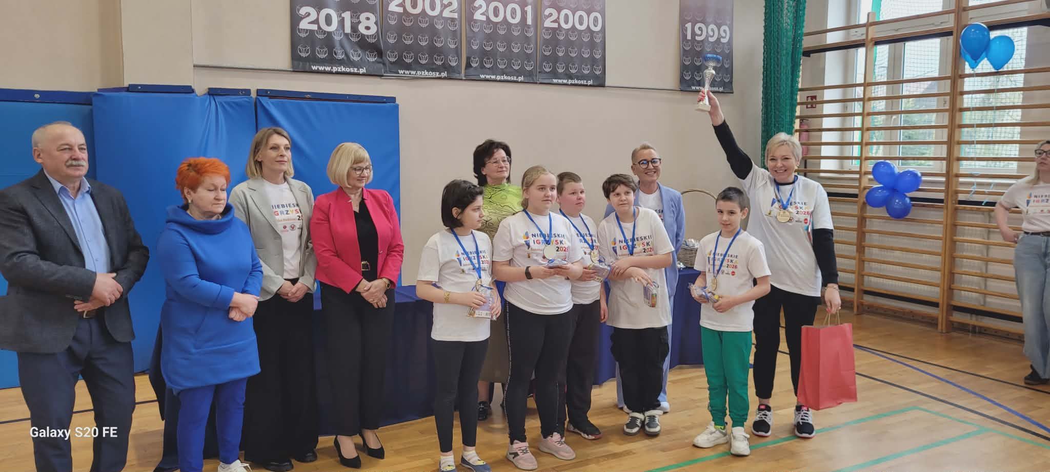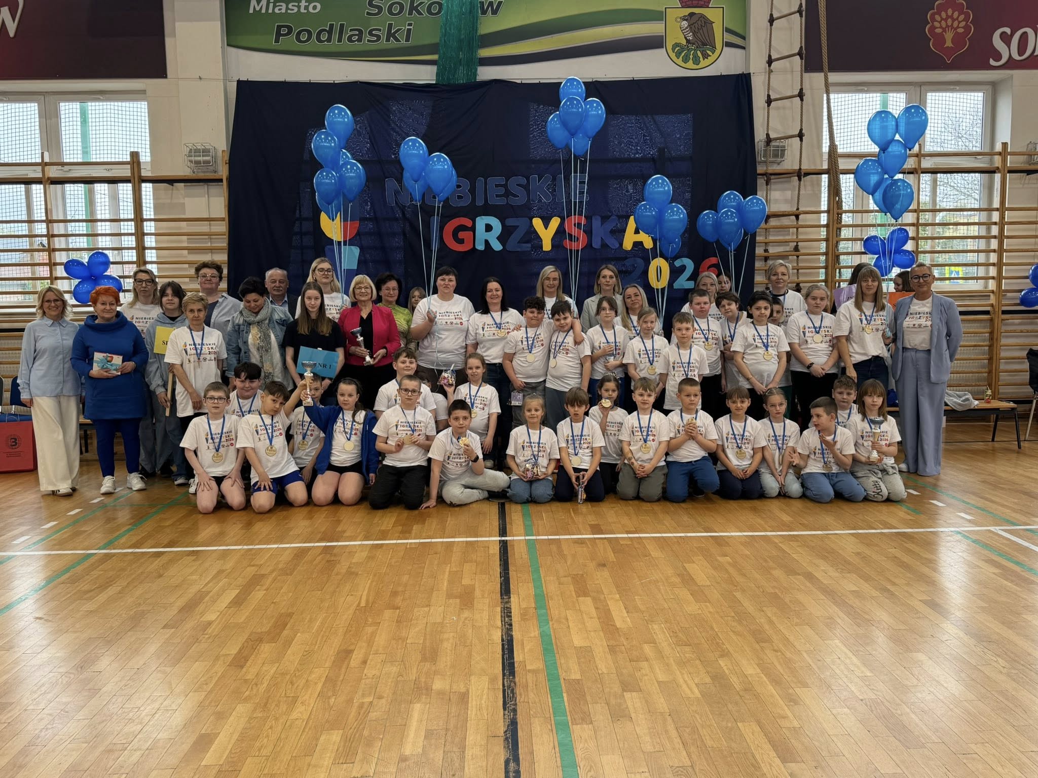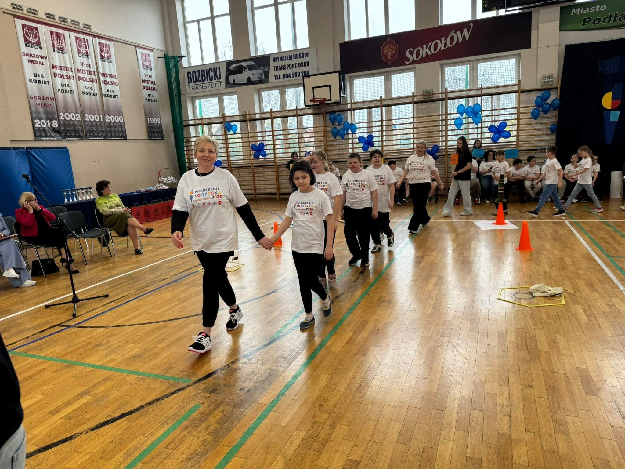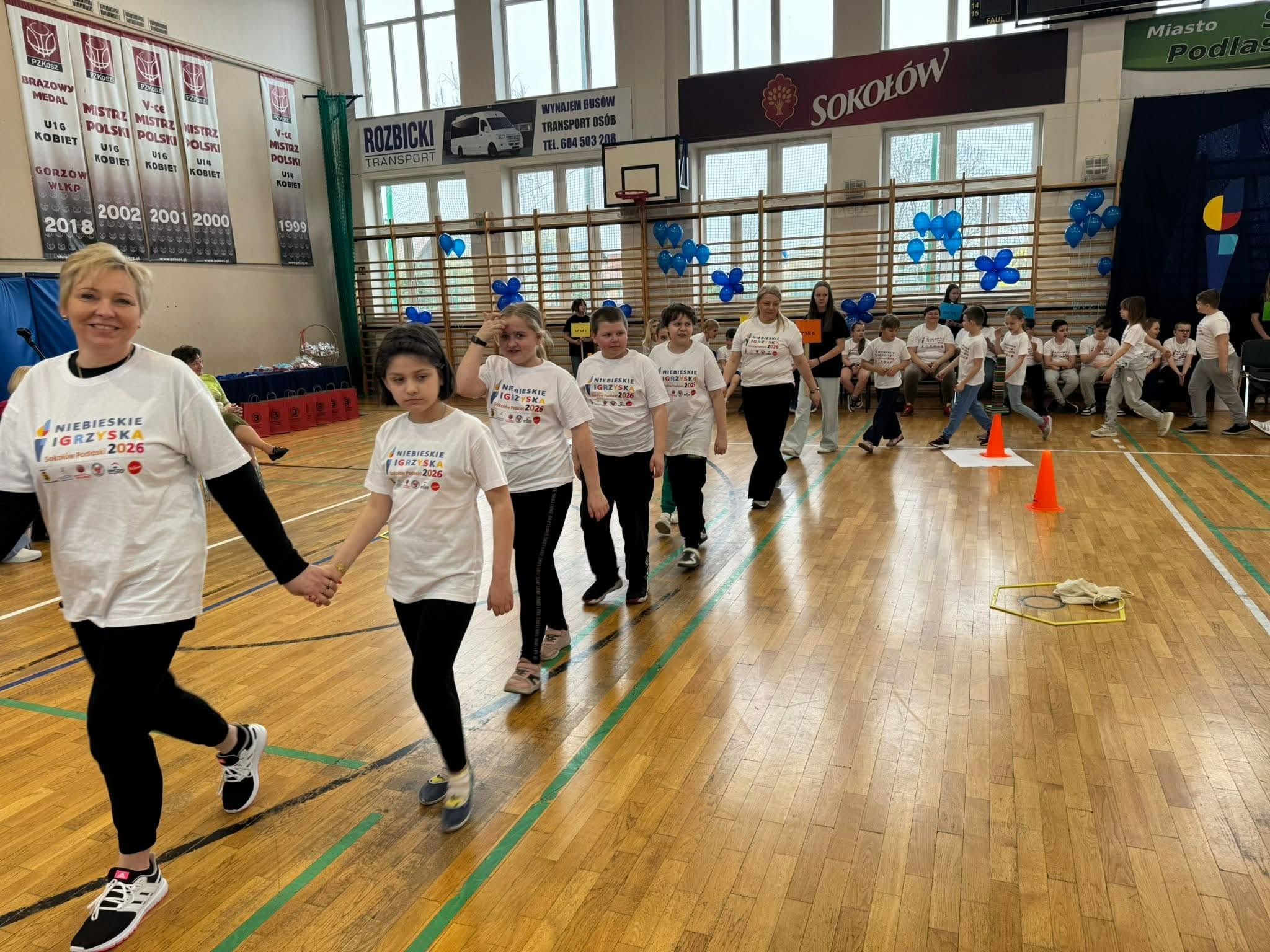 15 kwietnia 2026 roku uczniowie klasy IIIb Szkoły Podstawowej wraz z wychowawcą p. Mirosławą Strzała i p. Barbarą Krasowską Zając uczestniczyli w Międzyszkolnych Niebieskich Igrzyskach. Organizowane one były w Szkole Podstawowej nr 3 w Sokołowie Podlaskim. Każda z uczestniczących szkół wytypowała swoją pięcioosobową drużynę reprezentującą szkołę. Uczniowie świetnie bawili się zarówno podczas części teoretycznej – quizu wiedzy o autyzmie, jak i w trakcie zmagań sportowych. Tego szczególnego dnia wszyscy zawodnicy okazali się zwycięzcami – pokonali własne bariery, wykazali się dużą wiedzą, a przede wszystkim pokazali, że potrafią się wspaniale zintegrować z innymi. Drużyny otrzymały puchary, nagrody medale i słodkie upominki. Na koniec igrzysk zostały wypuszczone w świat niebieskie balony jako dowód na to, że mimo trudności potrafimy być razem, wspierać się, bawić się i cieszyć z życia. Na dzieci czekała też niespodzianka- wielka pizza, którą wszyscy uczestnicy zjedli ze smakiem.