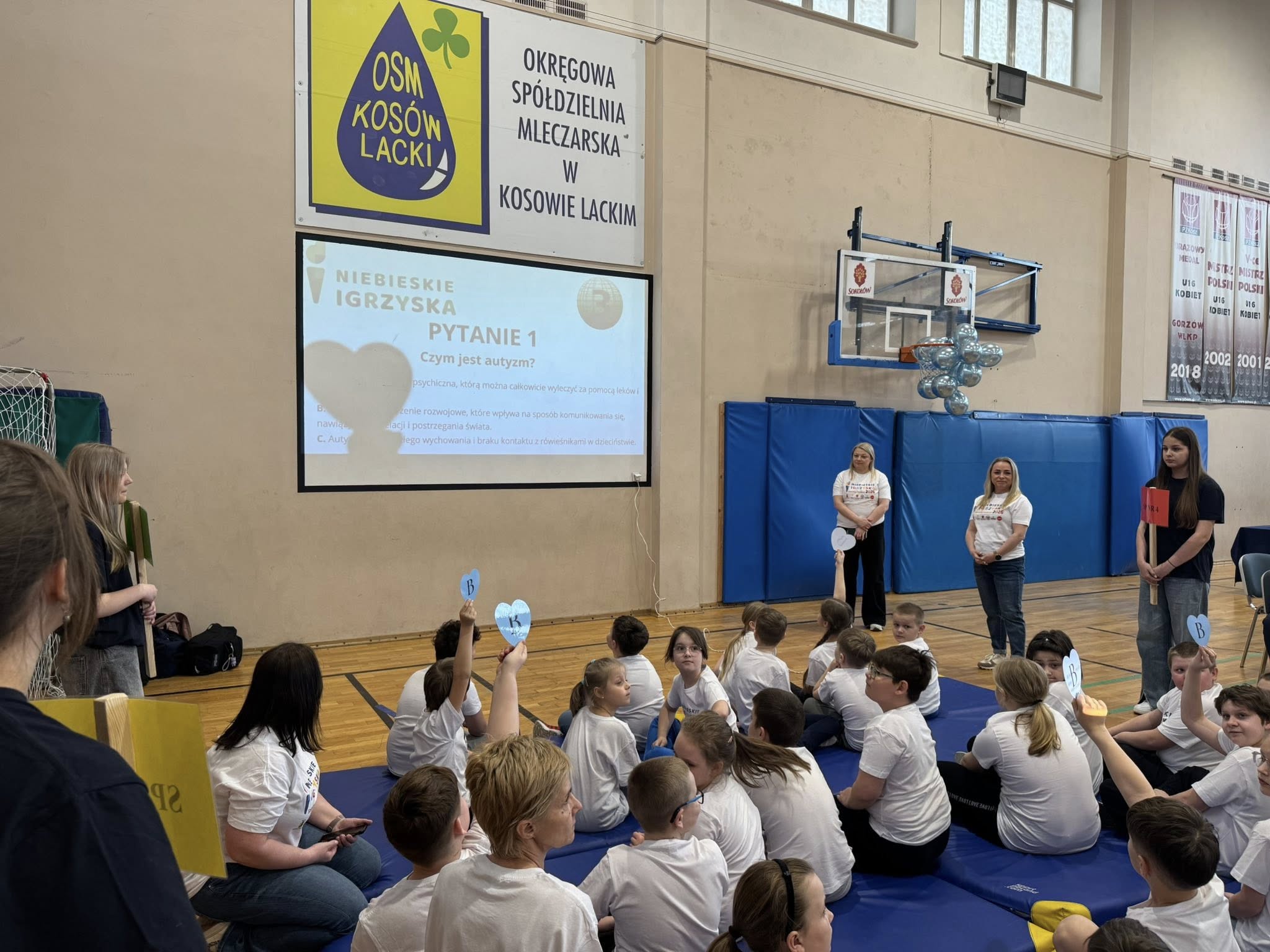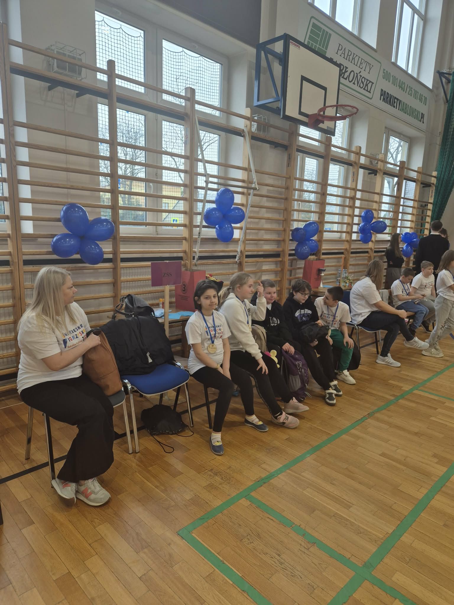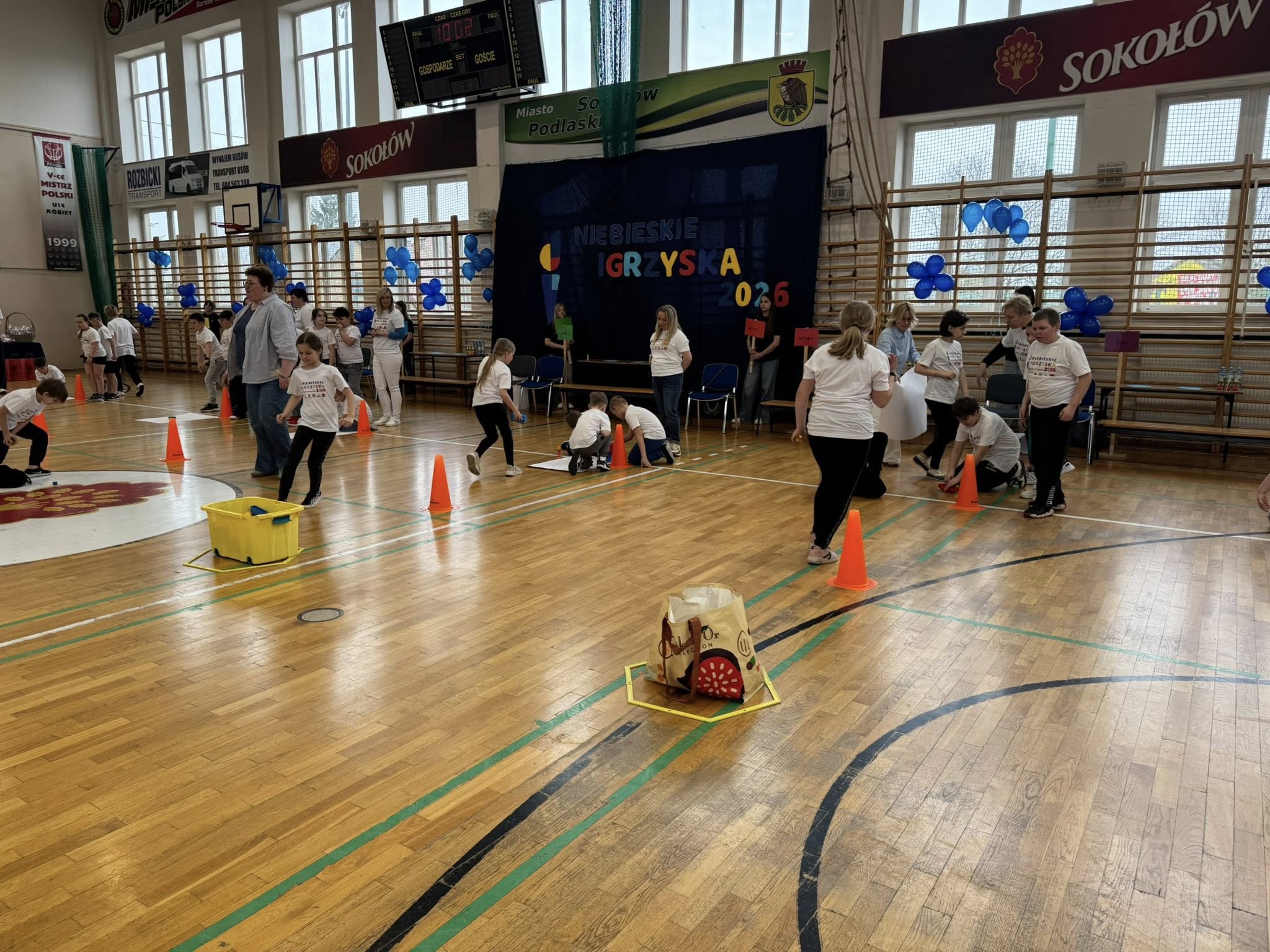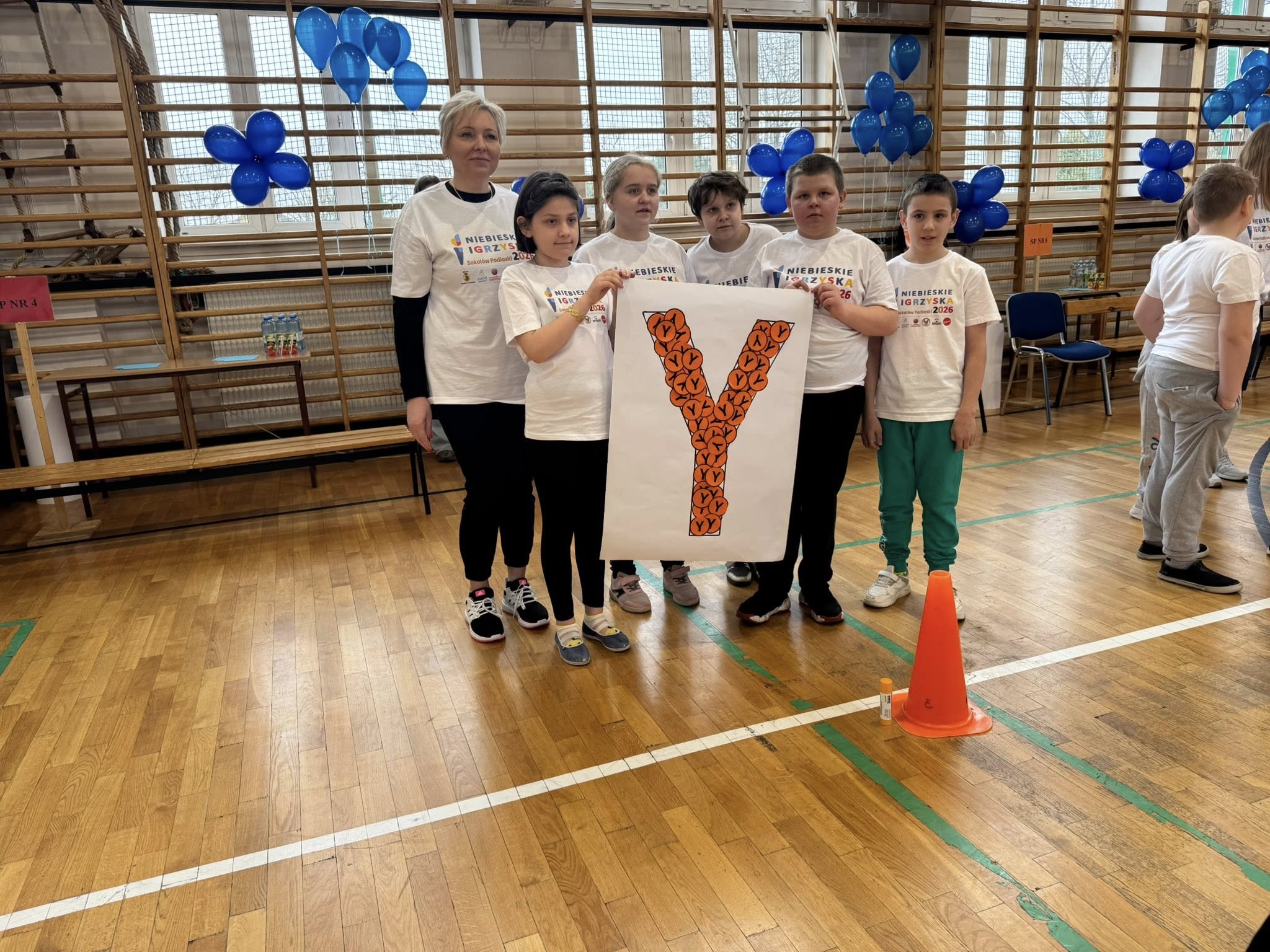 15 kwietnia 2026 roku uczniowie klasy IIIb Szkoły Podstawowej wraz z wychowawcą p. Mirosławą Strzała i p. Barbarą Krasowską Zając uczestniczyli w Międzyszkolnych Niebieskich Igrzyskach. Organizowane one były w Szkole Podstawowej nr 3 w Sokołowie Podlaskim. Każda z uczestniczących szkół wytypowała swoją pięcioosobową drużynę reprezentującą szkołę. Uczniowie świetnie bawili się zarówno podczas części teoretycznej – quizu wiedzy o autyzmie, jak i w trakcie zmagań sportowych. Tego szczególnego dnia wszyscy zawodnicy okazali się zwycięzcami – pokonali własne bariery, wykazali się dużą wiedzą, a przede wszystkim pokazali, że potrafią się wspaniale zintegrować z innymi. Drużyny otrzymały puchary, nagrody medale i słodkie upominki. Na koniec igrzysk zostały wypuszczone w świat niebieskie balony jako dowód na to, że mimo trudności potrafimy być razem, wspierać się, bawić się i cieszyć z życia. Na dzieci czekała też niespodzianka- wielka pizza, którą wszyscy uczestnicy zjedli ze smakiem.