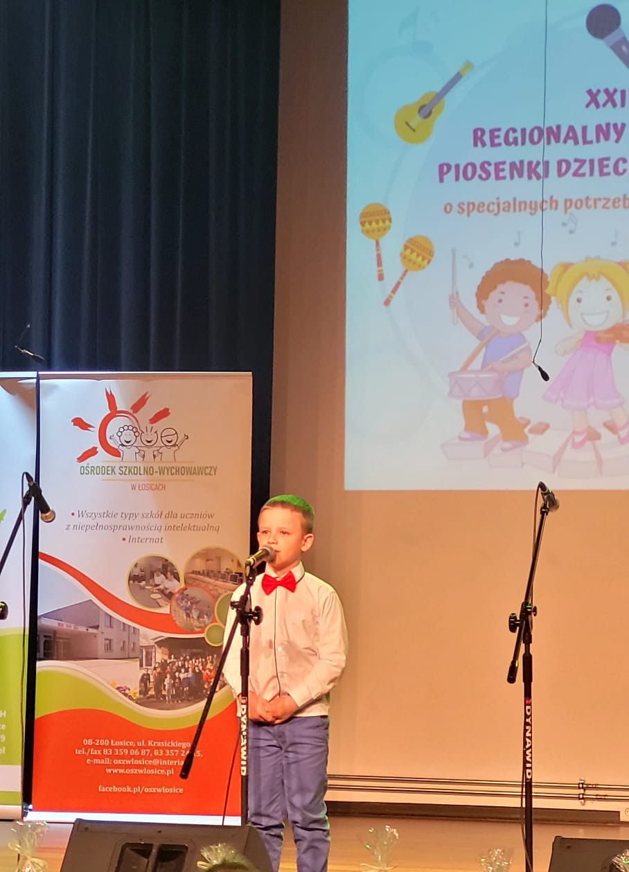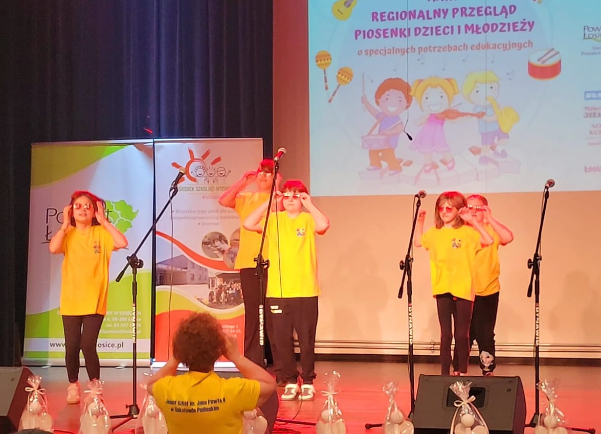 W dniu 23 kwietnia 2026 roku uczniowie naszej szkoły Klaudia Ciosek, Martyna Mąka, Kinga Kazimierczuk, Michalina Kobylińska, Kacper Maćkowiak oraz Dominika Kowalczyk wzięli udział w Regionalnym Przeglądzie Piosenki Dzieci i Młodzieży o specjalnych potrzebach edukacyjnych w Łosicach, który był okazją do zaprezentowania ich talentów muzycznych oraz wrażliwości artystycznej. Podczas wydarzenia nasi wychowankowie z ogromnym zaangażowaniem i radością wystąpili na scenie, wykonując układ taneczny do utworu „Różowe okulary” oraz piosenkę „Walc o życiu”. Udział w przeglądzie był nie tylko szansą na rozwijanie pasji muzycznych, ale także ważnym wydarzeniem społecznym, budującym pewność siebie i poczucie własnej wartości. Gratulujemy wszystkim uczestnikom oraz dziękujemy pani Marcie Kosieradzkiej za przygotowanie dzieci i młodzieży do występu. To wydarzenie na długo pozostanie w naszej pamięci jako piękne święto muzyki, integracji i wspólnej radości.