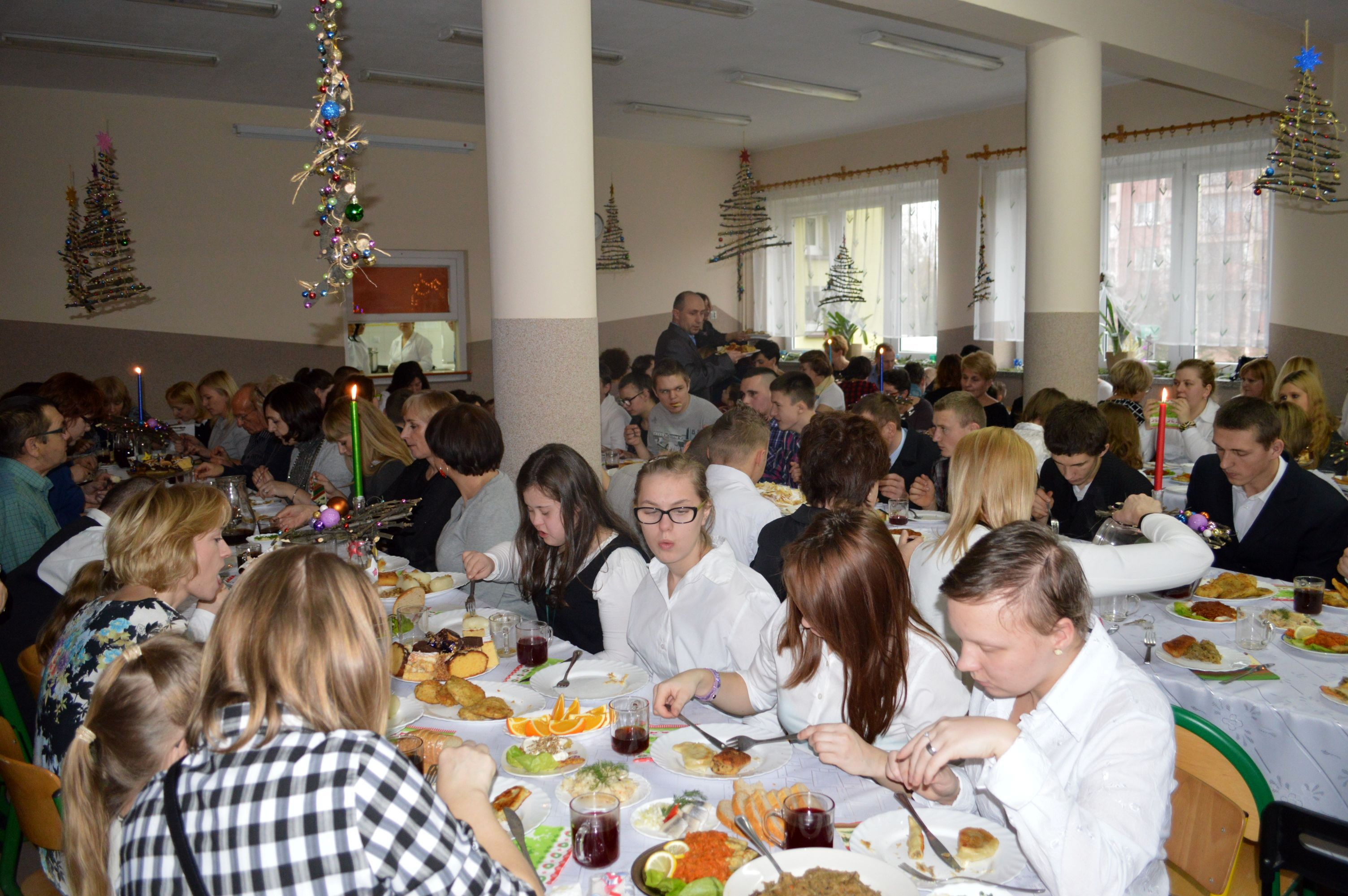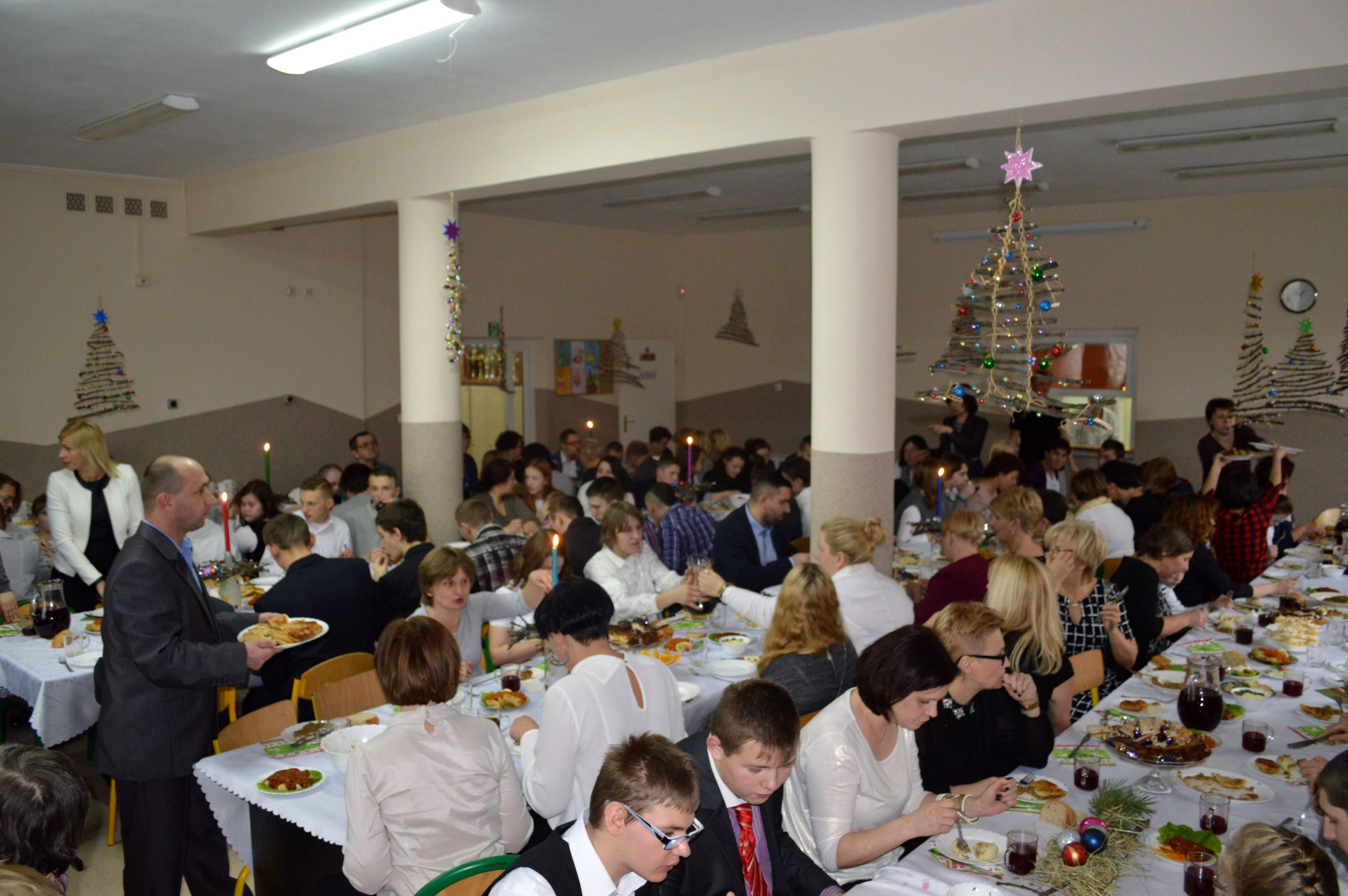 Polski, Wigilijny nastrój: ze Świętą Rodziną i Jezuskiem, z dzieleniem się „Opłatkiem”, z życzeniami „od wszystkich dla wszystkich”, z tradycyjnymi wigilijnymi potrawami, z pięknymi choinkami, bombkami, z upominkami od Mikołaja… przedsmak Takich Świąt poczuliśmy wspólnie z Gośćmi, z Uczniami, z Rodzicami, z Nauczycielami, z Administracją i Obsługą, z całą Społecznością Szkoły. Sił, Zdrowia i Uśmiechu na nadchodzące „Świętowanie” !!!