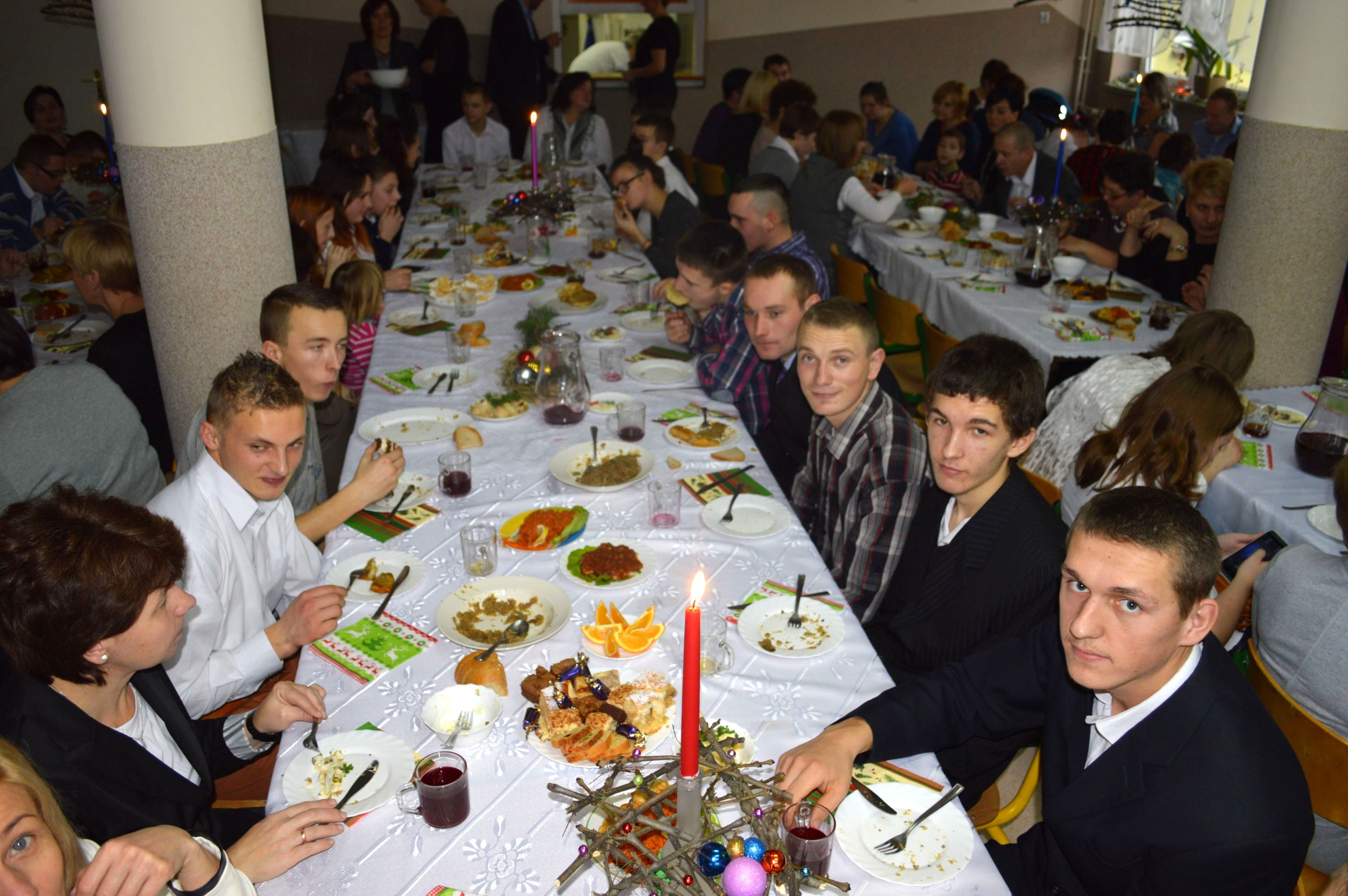 Polski, Wigilijny nastrój: ze Świętą Rodziną i Jezuskiem, z dzieleniem się „Opłatkiem”, z życzeniami „od wszystkich dla wszystkich”, z tradycyjnymi wigilijnymi potrawami, z pięknymi choinkami, bombkami, z upominkami od Mikołaja… przedsmak Takich Świąt poczuliśmy wspólnie z Gośćmi, z Uczniami, z Rodzicami, z Nauczycielami, z Administracją i Obsługą, z całą Społecznością Szkoły. Sił, Zdrowia i Uśmiechu na nadchodzące „Świętowanie” !!!