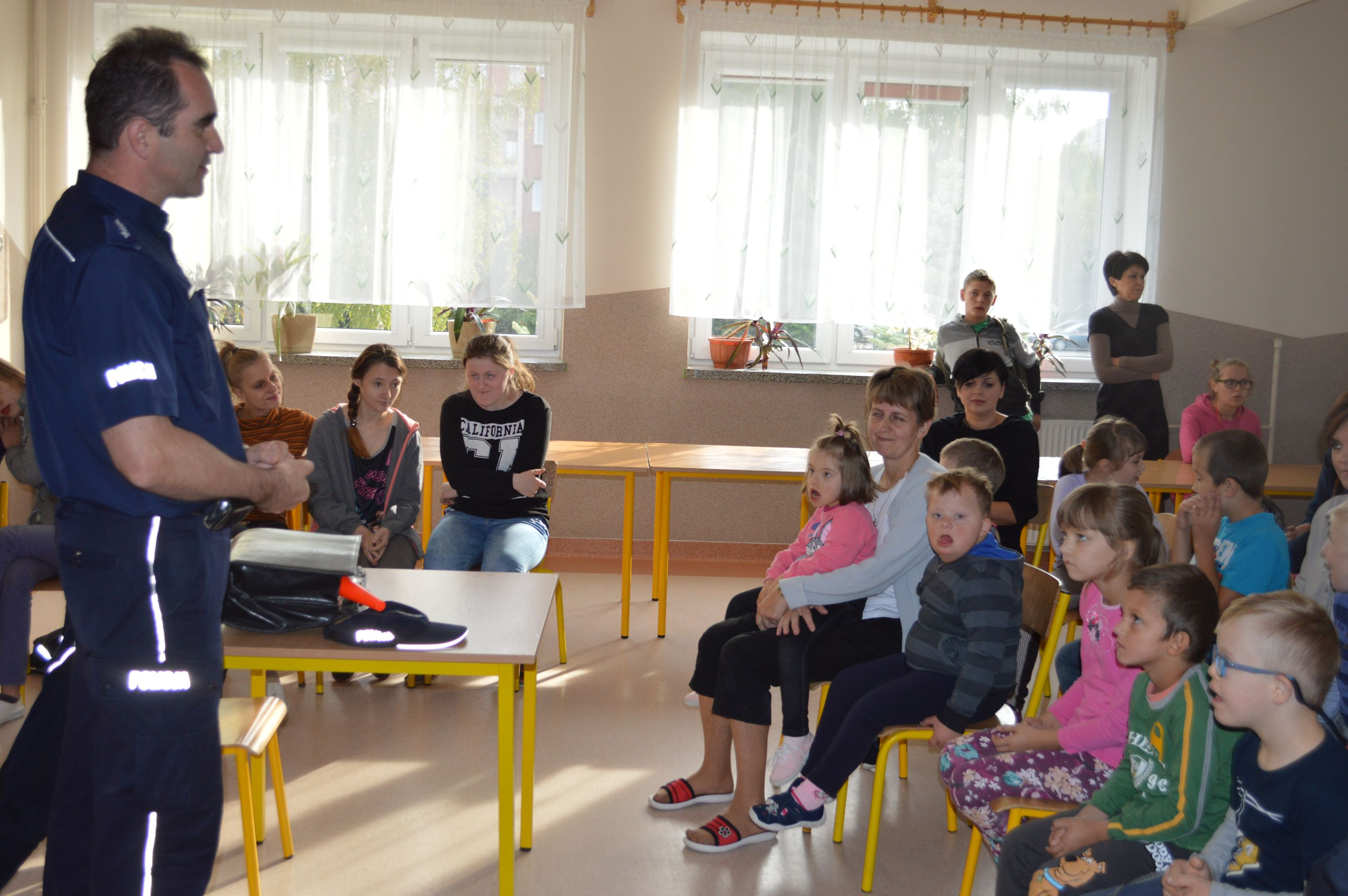 Po spotkaniu z Panem Policjantem czujemy się bezpieczniej. 28 września, w środę, uczestniczyliśmy wraz z wychowankami w spotkaniu na temat zasad obowiązujących na drogach. Dziękujemy za przyjęcie zaproszenia i przeszkolenie najmłodszych z zakresu właściwych zachowań na drodze do i ze szkoły. To co musimy utrwalić najlepiej często powtarzać.