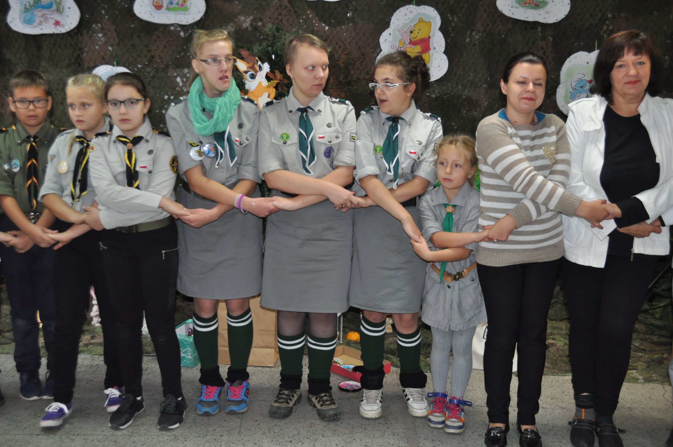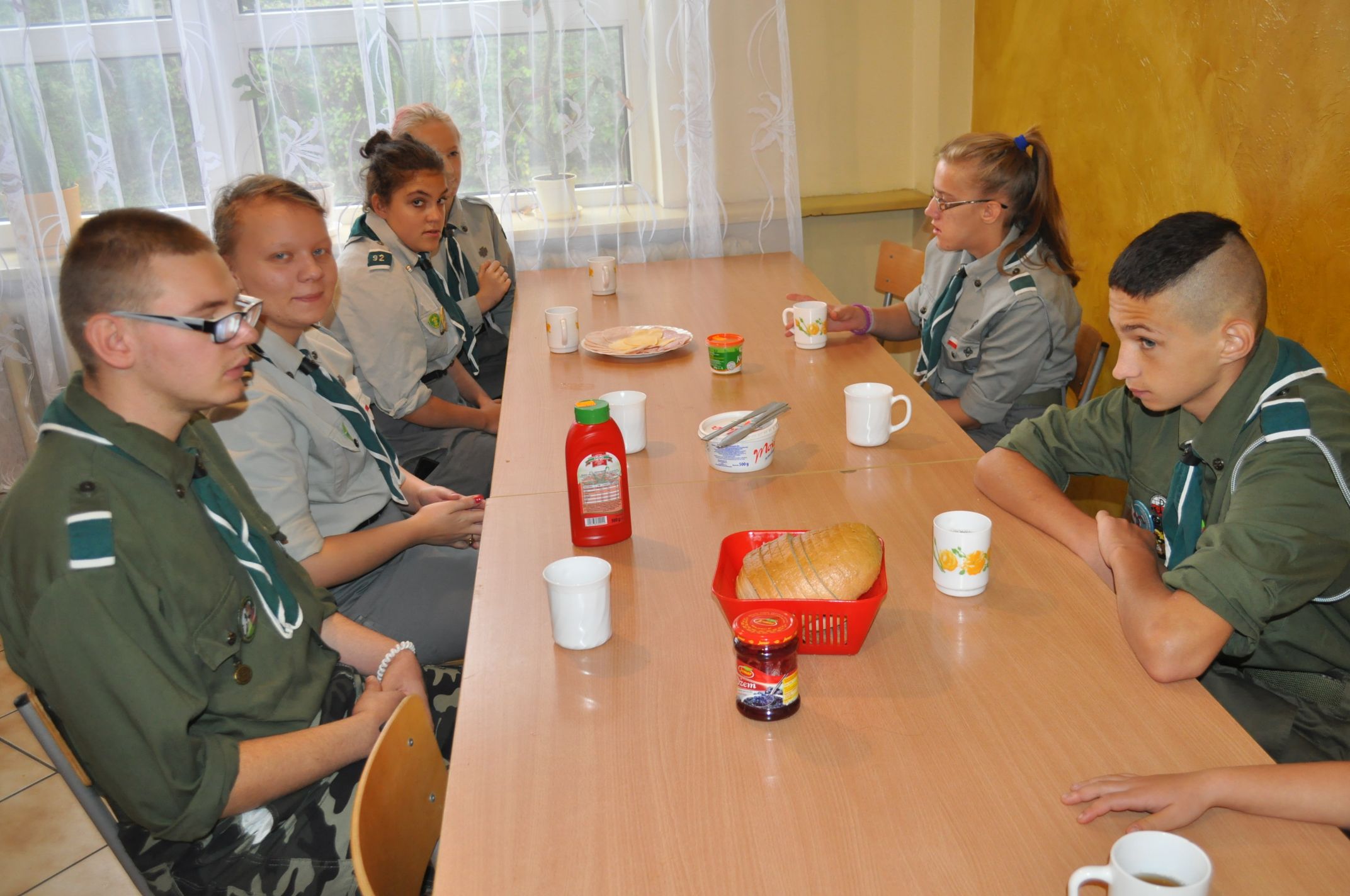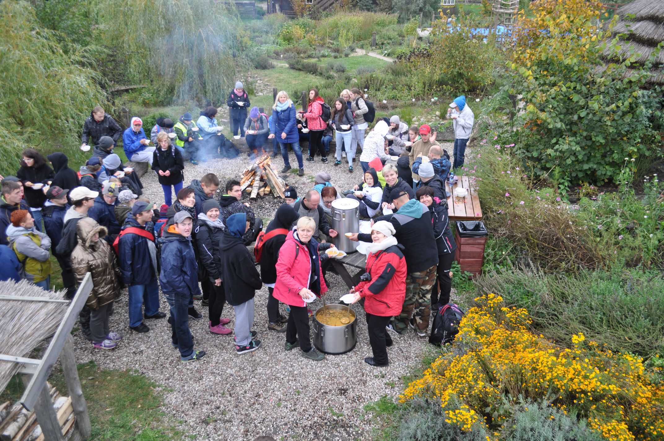 Nagrodą dla uczestników za warsztaty i grę terenową było oczywiście ognisko i ciepły posiłek w postaci przepysznej prawdziwej grochówki po którą w kolejce ustawiano się po kilka razy. Wszystkiemu towarzyszyły pląsy i śpiewy a co za tym idzie wspaniała atmosfera przepełniona serdecznością, przyjaźnią i harcerskim braterstwem.
