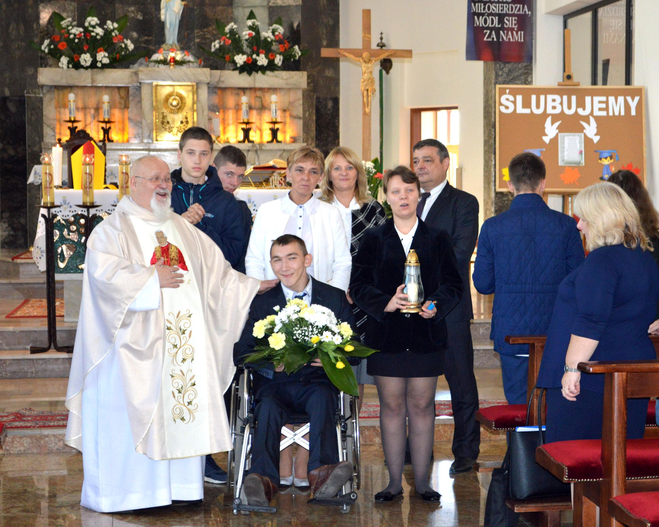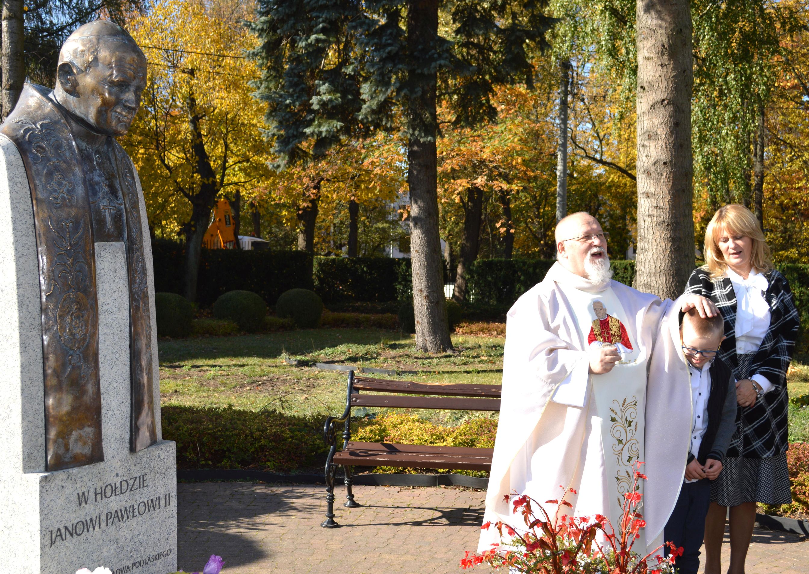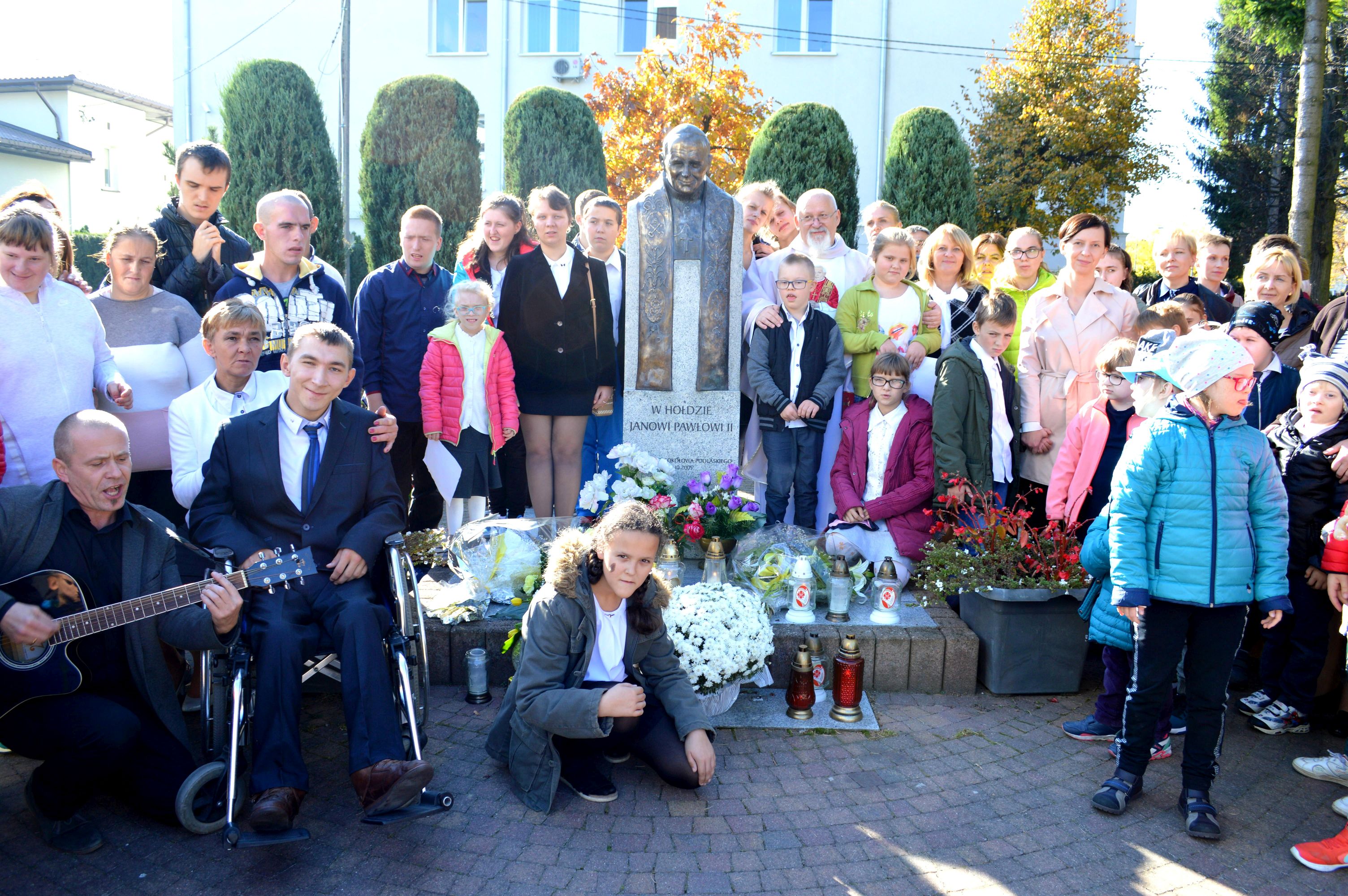 Święty Jan Paweł II, Papież, Polak, Patron Naszej Szkoły, został wybrany w 1978 roku na Papieża – dzisiaj, z okazji 40 lecia tego wydarzenia, cała społeczność szkolna uczestniczyła we Mszy Świętej. Dumni jesteśmy z faktu, że patronem naszej szkoły jest Jan Paweł II. Połączeni w modlitwie prosiliśmy o zdrowie dla nas wszystkich, szczególnie dla Damiana… Pod pomnikiem złożyliśmy kwiaty i zapaliliśmy symboliczną lampkę. Nasza „Barka” odpłynęła w promieniach pięknego, jesiennego słońca, wprost do Jana Pawła II.