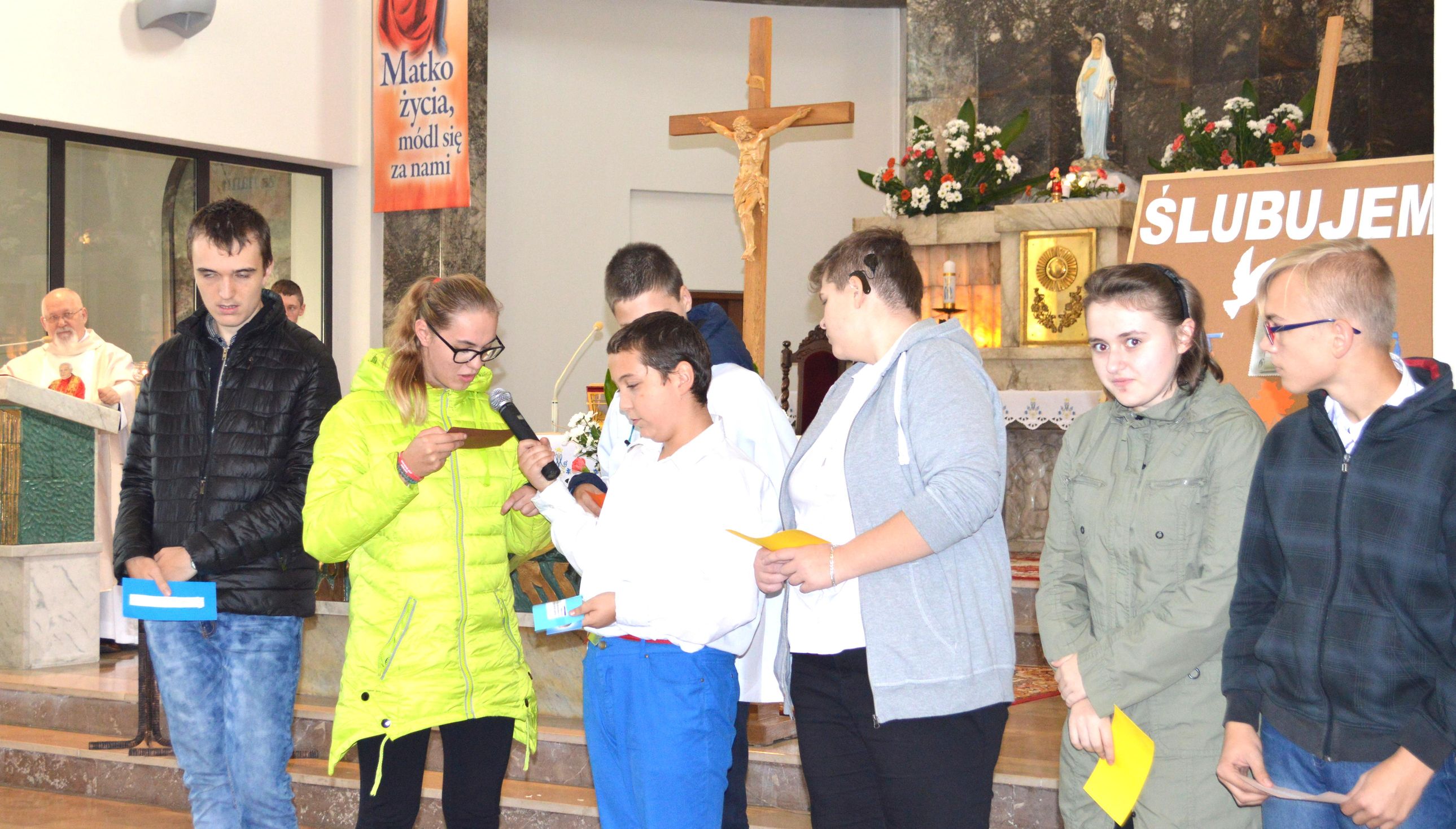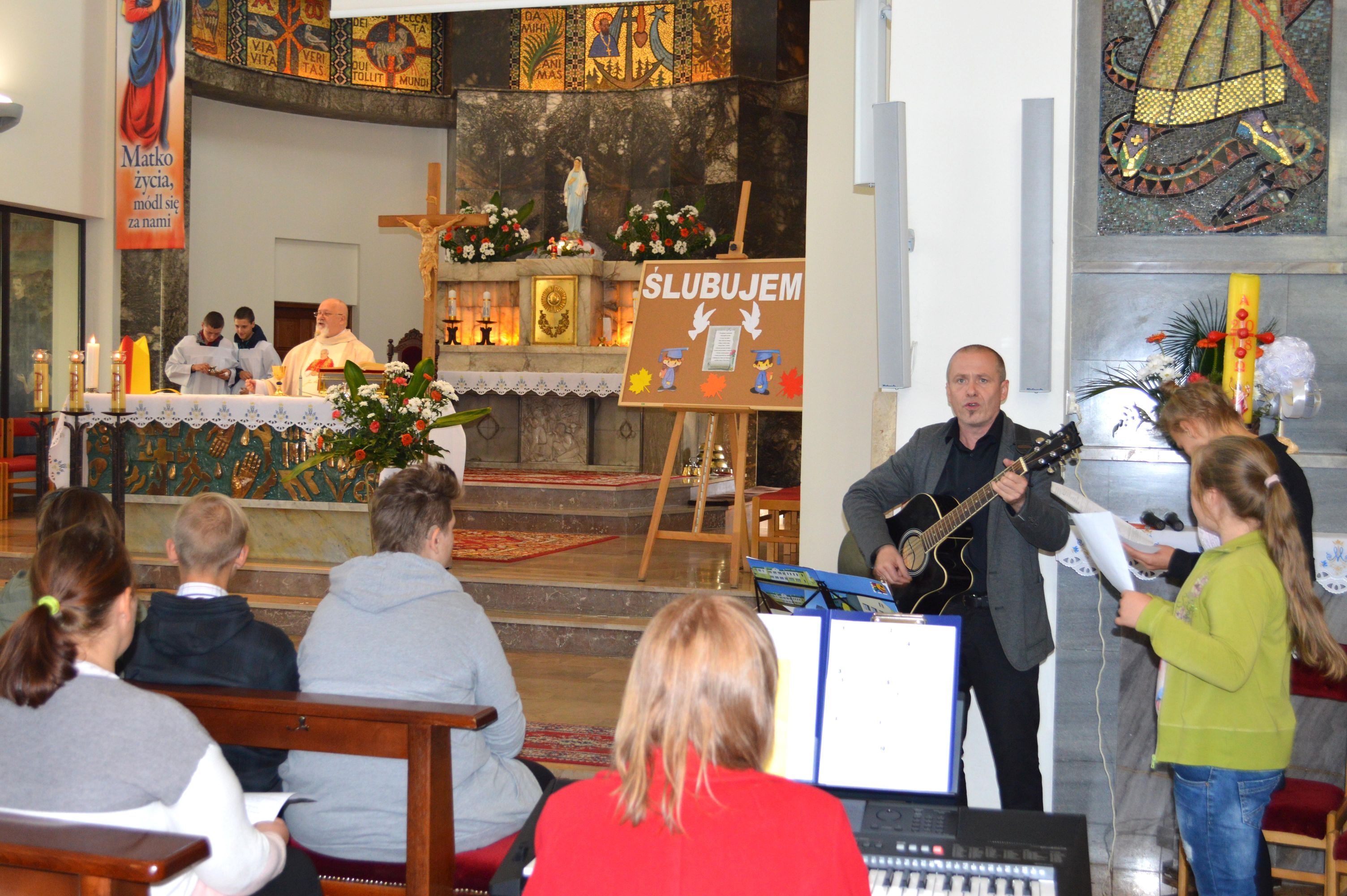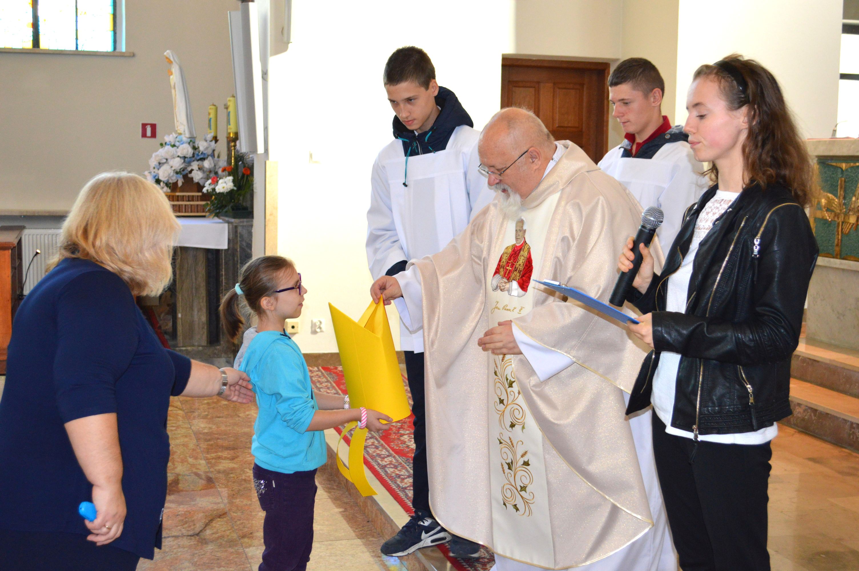 Święty Jan Paweł II, Papież, Polak, Patron Naszej Szkoły, został wybrany w 1978 roku na Papieża – dzisiaj, z okazji 40 lecia tego wydarzenia, cała społeczność szkolna uczestniczyła we Mszy Świętej. Dumni jesteśmy z faktu, że patronem naszej szkoły jest Jan Paweł II. Połączeni w modlitwie prosiliśmy o zdrowie dla nas wszystkich, szczególnie dla Damiana… Pod pomnikiem złożyliśmy kwiaty i zapaliliśmy symboliczną lampkę. Nasza „Barka” odpłynęła w promieniach pięknego, jesiennego słońca, wprost do Jana Pawła II.