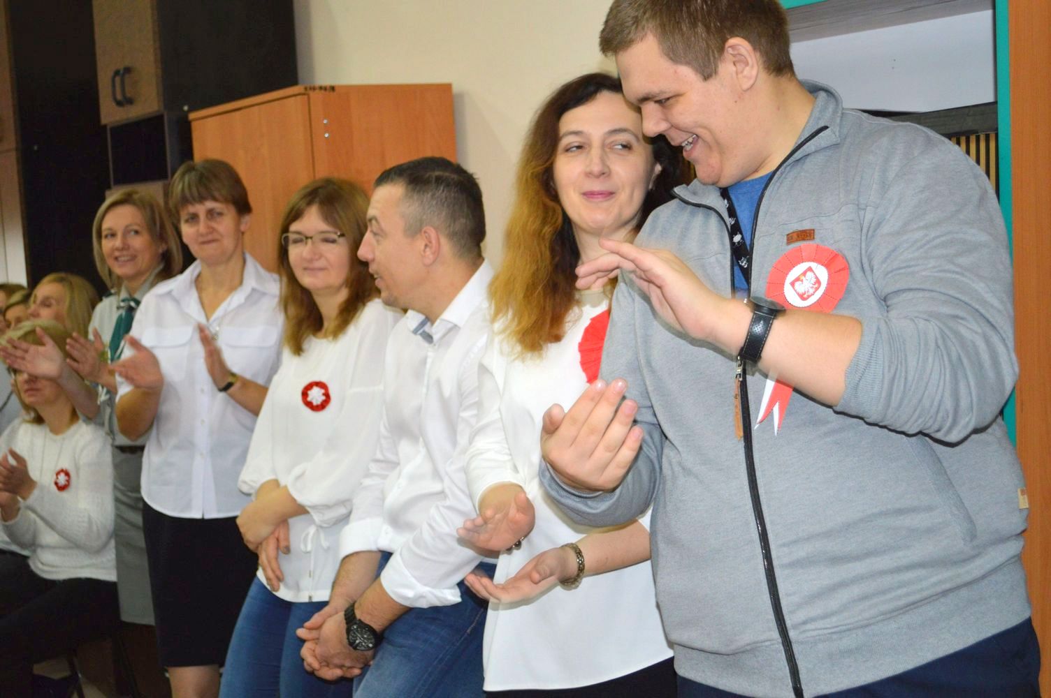 Obchody 100 lecia Odzyskania Niepodległości w Zespole Szkół Specjalnych im. Jana Pawła II w Sokołowie Podlaskim. Rok 2018 jest szczególny dla naszej Ojczyzny, bowiem obchodzimy setną rocznicę odzyskania przez Polskę niepodległości. W naszej szkole podejmowaliśmy w ciągu całego roku szereg działań mających na celu przybliżenie historii naszego państwa i przeżycie atmosfery tamtych dni, kiedy to wszyscy Polacy cieszyli się upragnioną wolnością po 123 latach niewoli. My dziś nie musimy przelewać krwi za swój kraj, nie musimy składać ofiary życia, ale naszym moralnym obowiązkiem jest uczczenie najważniejszego wydarzenia w historii naszej Ojczyzny, pochylenie się nie tylko nad wielkimi bohaterami narodowymi, ale nad zwykłymi ludźmi, którzy walczyli o wolność i niepodległość Polski.