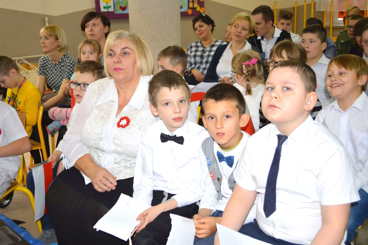 W dalszej kolejności uczniowie zaprezentowali montaż słowno- muzyczny pt. „Wdzięczni za dar Niepodległości” pod kierunkiem Pani Izabeli Szymańskiej i Pani Grażyny Kobylińskiej. Oprawę muzyczną przygotowali Pani Dorota Prokopczuk i Druh Grzegorz Nowotniak.