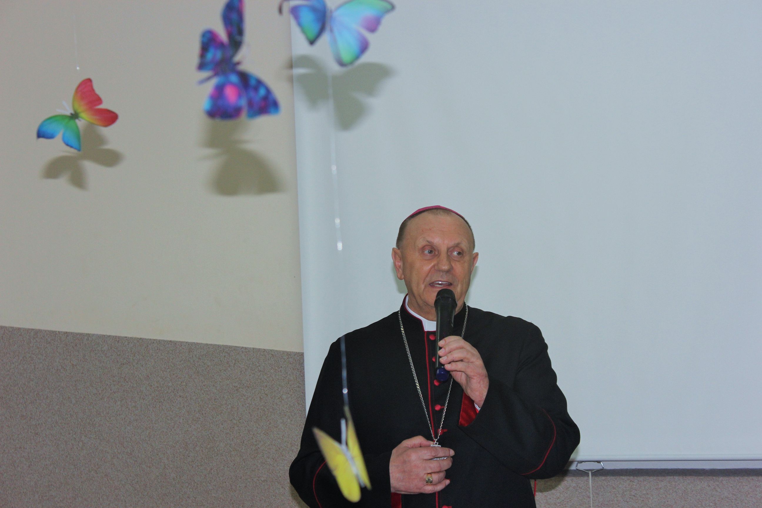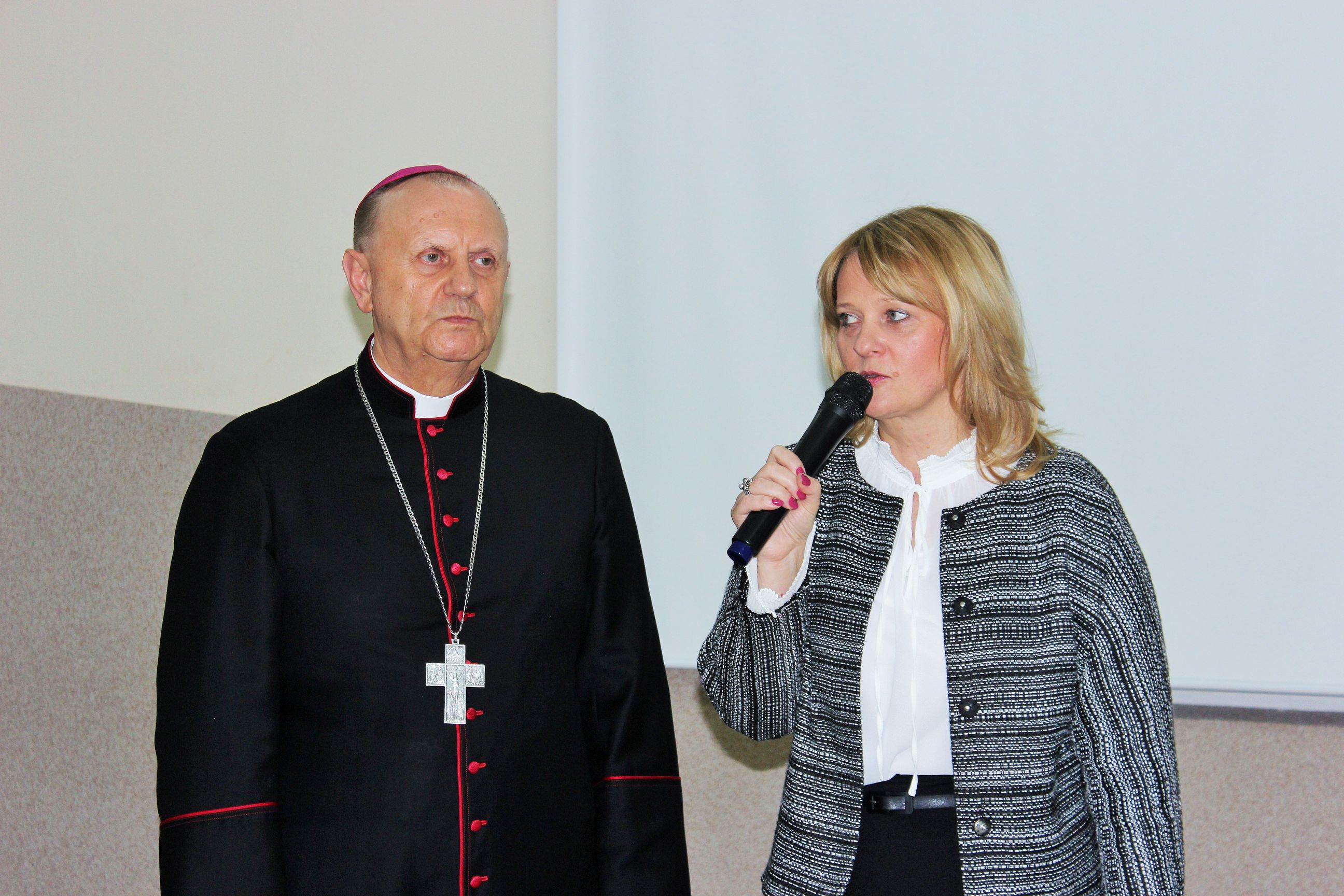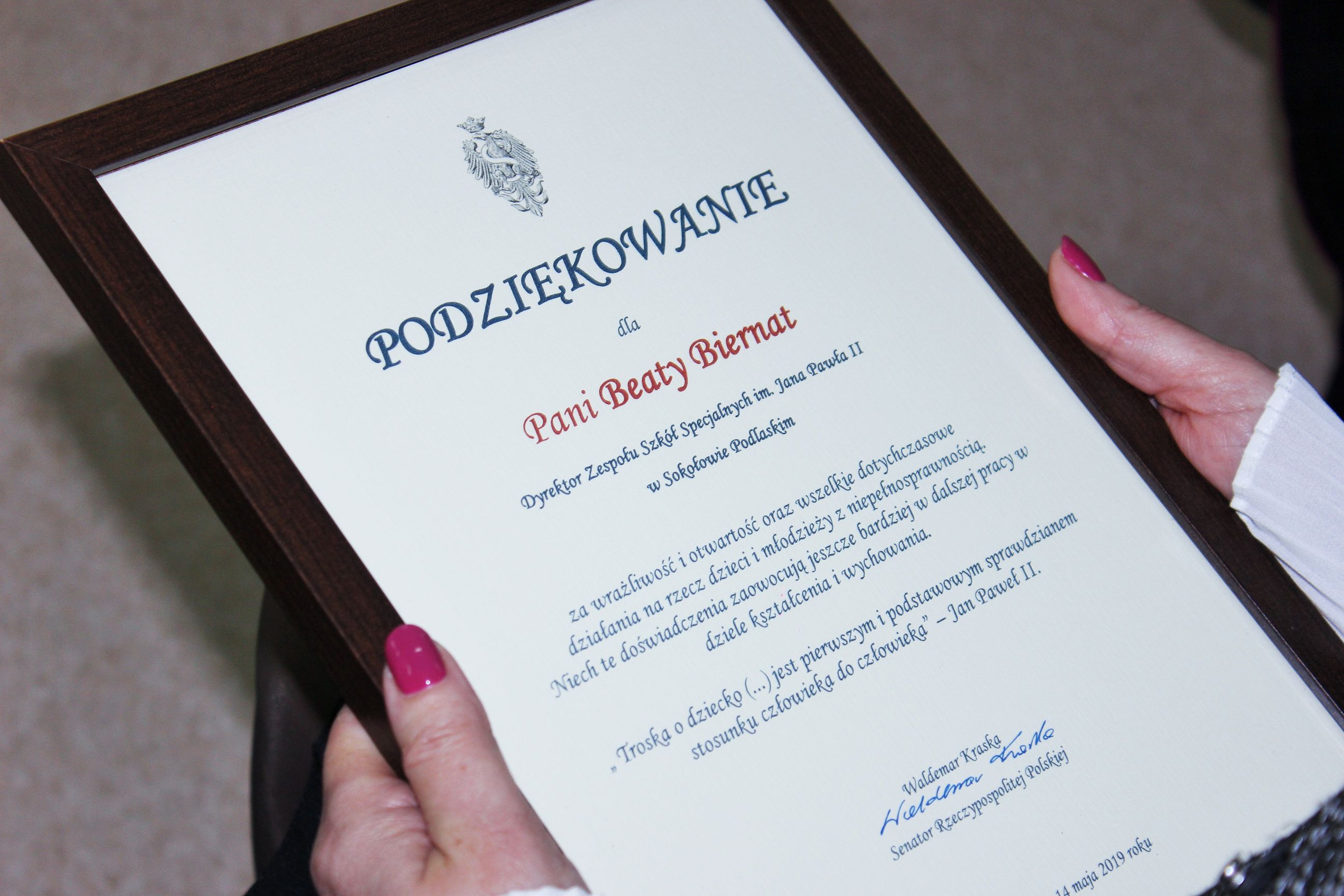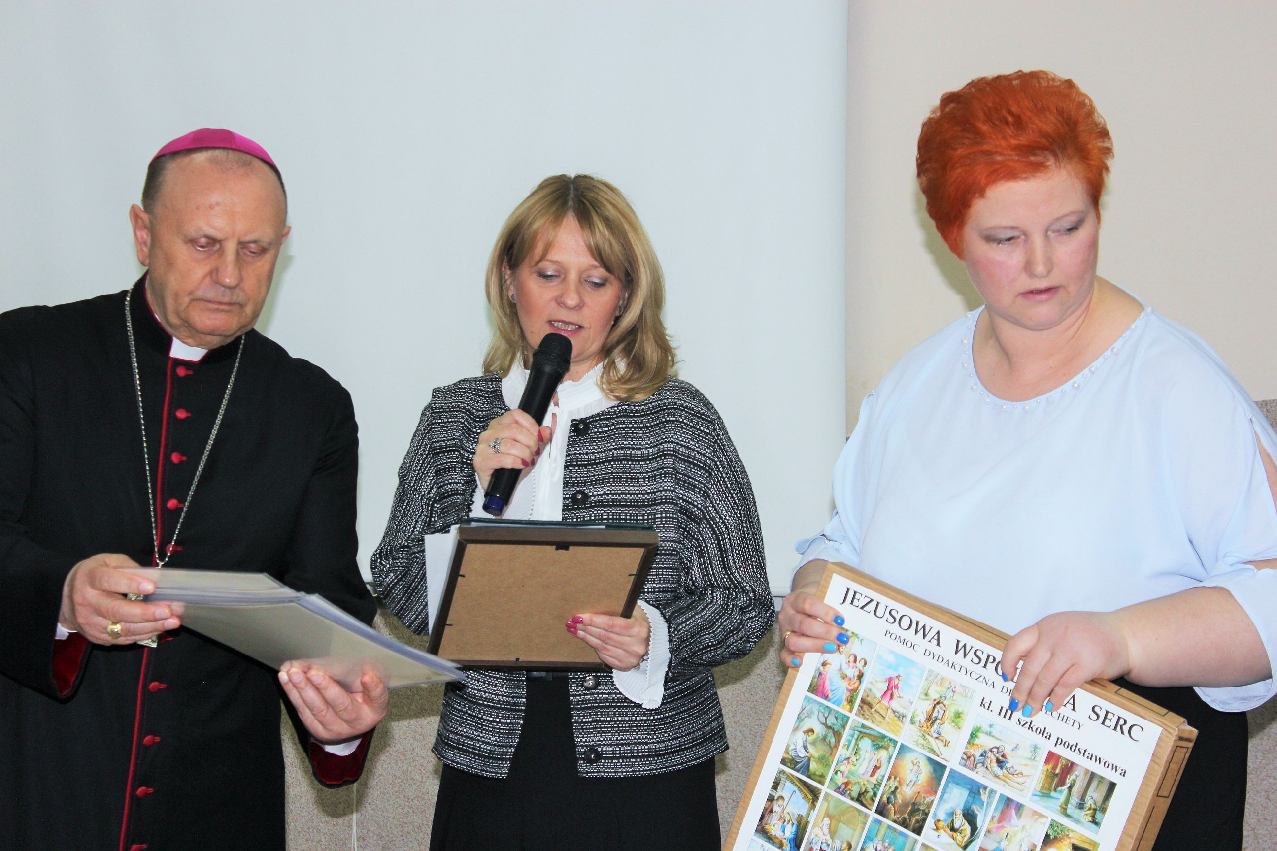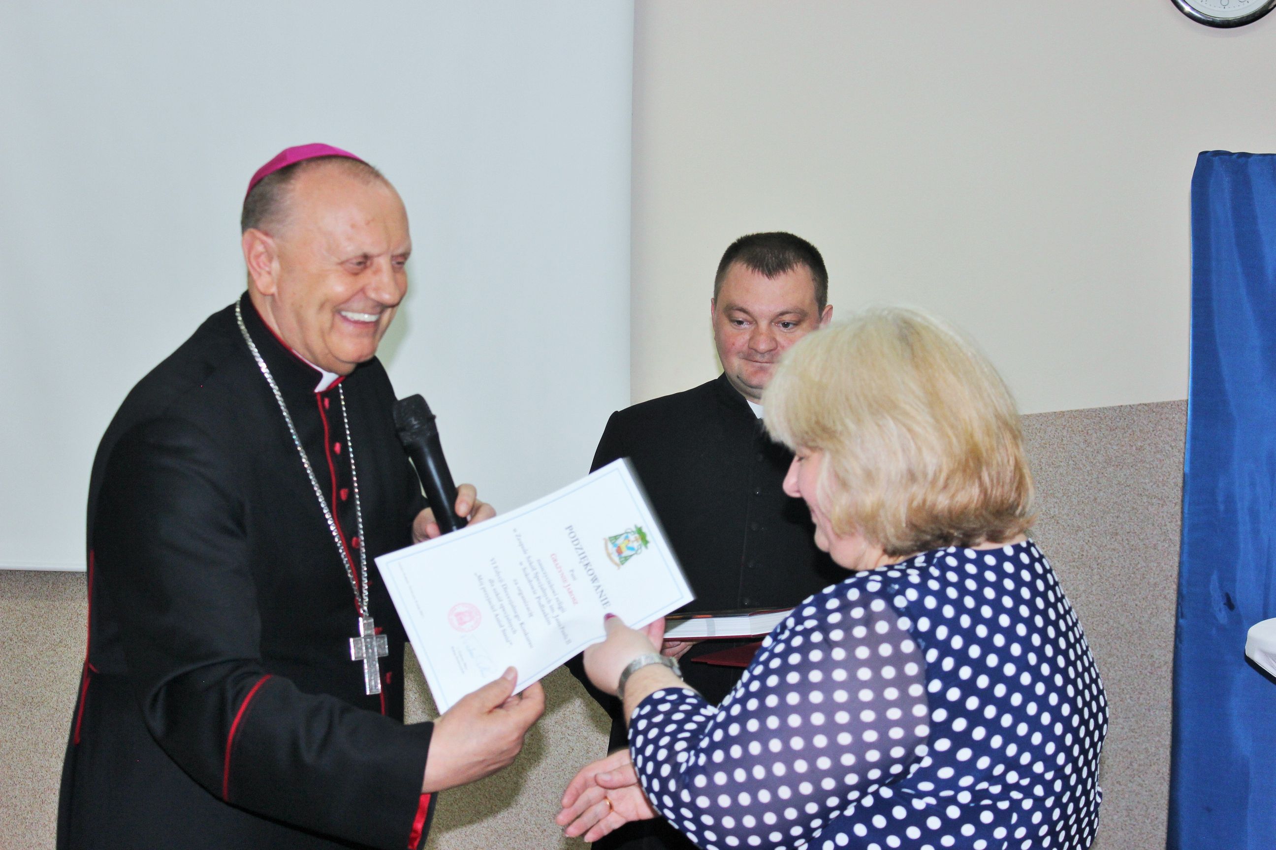 We wtorek, 14 maja 2019 r. w Zespole Szkół Specjalnych im. Jana Pawła II w Sokołowie Podlaskim odbyło się uroczyste rozstrzygnięcie i podsumowanie konkursu diecezjalnego „Mój przyjaciel Anioł Stróż„. To już VI edycja konkursów dla dzieci i młodzieży szkół specjalnych z terenu diecezji drohiczyńskiej. Rekordowa liczba nadesłanych prac z terenu trzech województw świadczy o rosnącym zainteresowaniu i popularności konkursu wśród placówek oświatowych i wychowawczych. Uroczystość poprowadzili Pani Dyrektor Beata Biernat i ks.kan dr Krzysztof Mielnicki jako przedstawiciele organizatorów konkursu – Zespołu Szkół Specjalnych im. Jana Pawła II w Sokołowie Podlaskim i Wydziału Katechezy i Szkolnictwa Katolickiego Diecezji Drohiczyńskiej. Podczas uroczystego wręczania nagród obecni byli : J.e. ks. prof. dr hab. Tadeusz Pikus Ordynariusz Diecezji Drohiczyńskiej, ks. kan. dr Krzysztof Mielnicki Dyrektor Wydziału Katechezy i Szkolnictwa Katolickiego, ks. Marcin Gołębiewski Dyrektor Centrum Informacji Diecezji Drohiczyńskiej, ks. Leszek Ruciński przedstawiciel Parafii Św. Jana Bosko w Sokołowie Podlaskim, Senator RP Waldemar Kraska, Pan Adam Skup Dyrektor Siedleckiej Delegatury Kuratorium Oświaty w Warszawie, Pan Jacek Odziemczyk Przewodniczący Rady Powiatu Sokołowskiego, Pani Joanna Malinowska Dyrektor Biura Senatora RP Waldemara Kraski oraz Pani Beata Biernat Dyrektor Zespołu Szkół Specjalnych im. Jana Pawła II w Sokołowie Podlaskim. Uroczystość uświetnił występ naszych uczniów -„artystów”, których przygotowali Pan Grzegorz Nowotniak, Pani Dorota Prokopczuk, Pani Aneta Nowotniak, Pani Renata Krasowska i Pani Małgorzata Dąbrowiecka. Osobami odpowiedzialnymi za przebieg konkursu były katechetki: Pani Urszula Krzymowska i Pani Grażyna Jarosz. Fotorelację przygotowała Pani Katarzyna Zalewska.