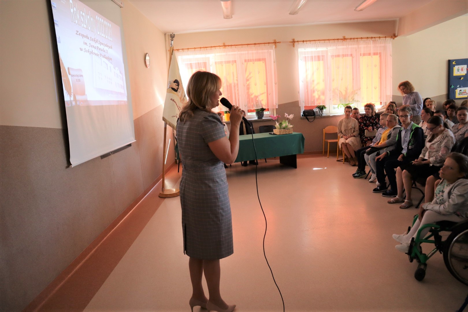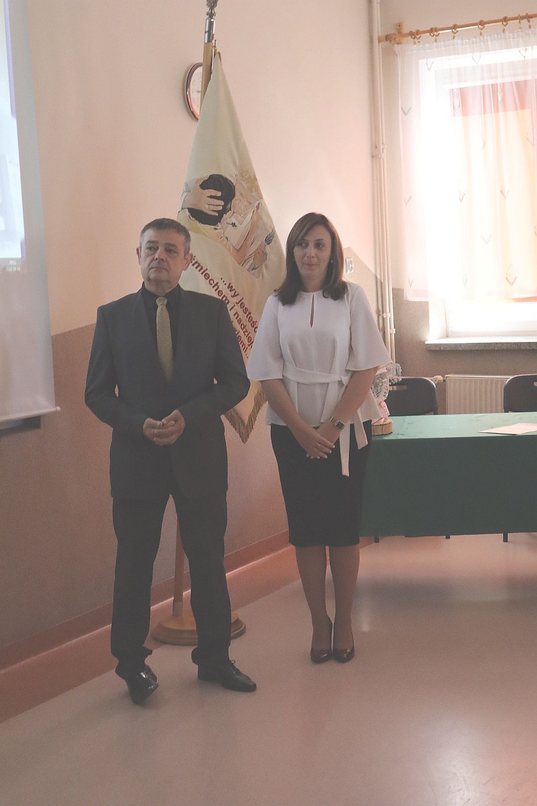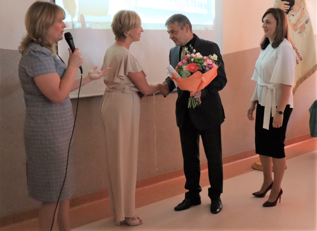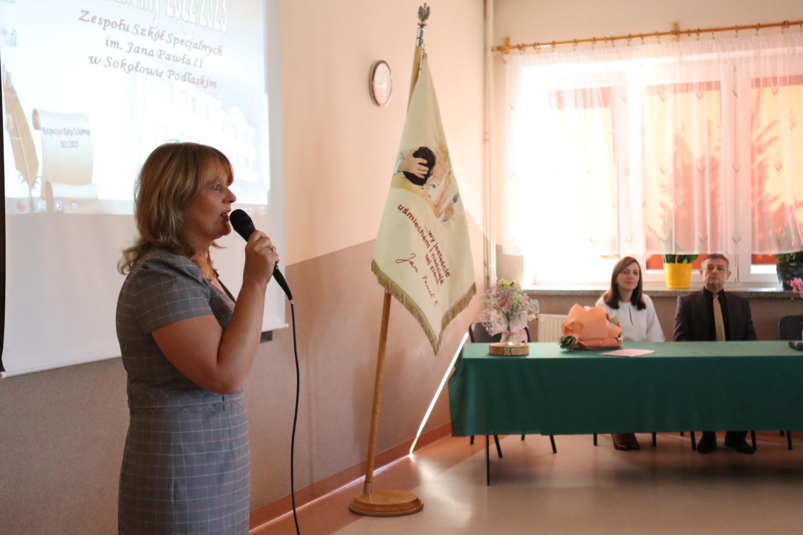 Przywitaliśmy wszystkich obecnych po przerwie wakacyjnej. Pani Dyrektor Beata Biernat zapoznała ze zmianami, które od tego roku nastąpiły. Nowymi uczniami zaopiekowali się wychowawcy. Wszystkim życzymy sukcesów i radości w nowym roku szkolnym 2022/2023, szczególnie Pani Basi Tokarskiej, która troszkę zmieniła charakter pracy. Będzie pracować tak samo dobrze jak dotychczas, tylko mniej, bo jako nauczyciel na zasłużonej emeryturze. Pani Basi podziękowała Dyrekcja, Grono, Dzieci i Rodzice – i Pani Basia podziękowała im wszystkim.