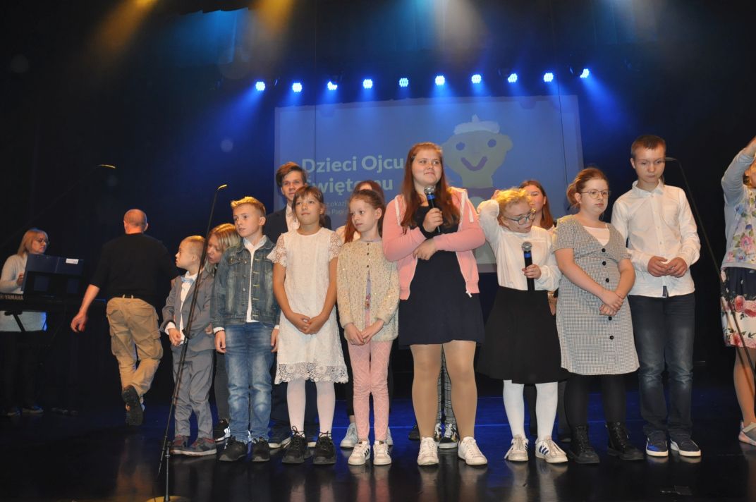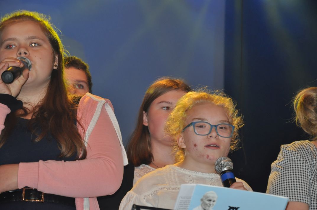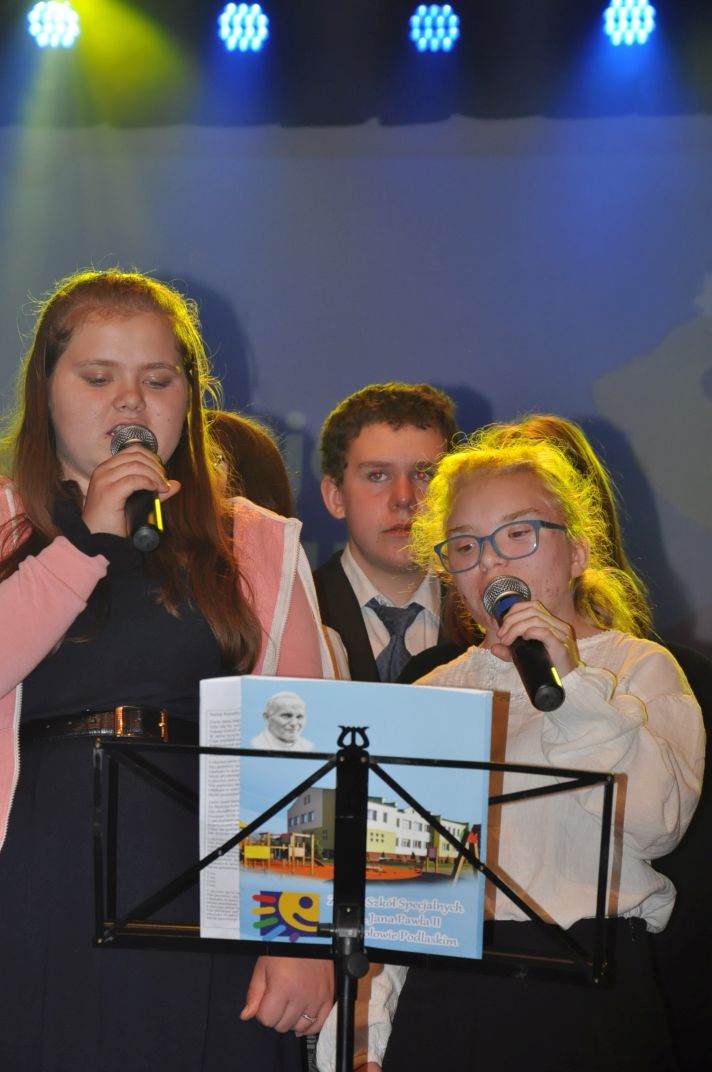 11 października w SOK odbył się koncert Dzieci Ojcu Świętemu z okazji obchodów XXII Dnia Papieskiego. W koncercie od 2004 roku biorą udział najmłodsi mieszkańcy miasta. Nasza Szkoła, nosząca imię Wielkiego Polaka i Świętego Jana Pawła II, zapraszana jest corocznie do udziału w tym artystycznym wydarzeniu. Tak i w tym roku piętnastoosobowa grupa artystów z naszej szkoły, pod kierunkiem p. Doroty Prokopczuk i p. Grzegorza Nowotniaka, uświetniła swym występem XXII Dzień Papieski. W opiece nad uczniami wspierały panie: Anita Rurarz-Olędzka i Barbara Zając. Artyści wykonali dwie piosenki: „Biały Pielgrzym” i „A co jeśli…”, które wybrzmiały w finale koncertu, bezcennie zamykając całe przedsięwzięcie.
