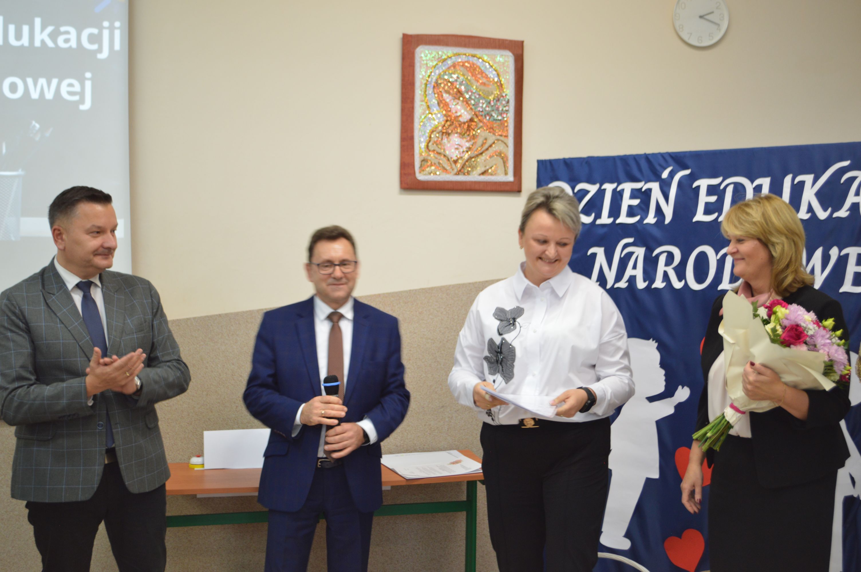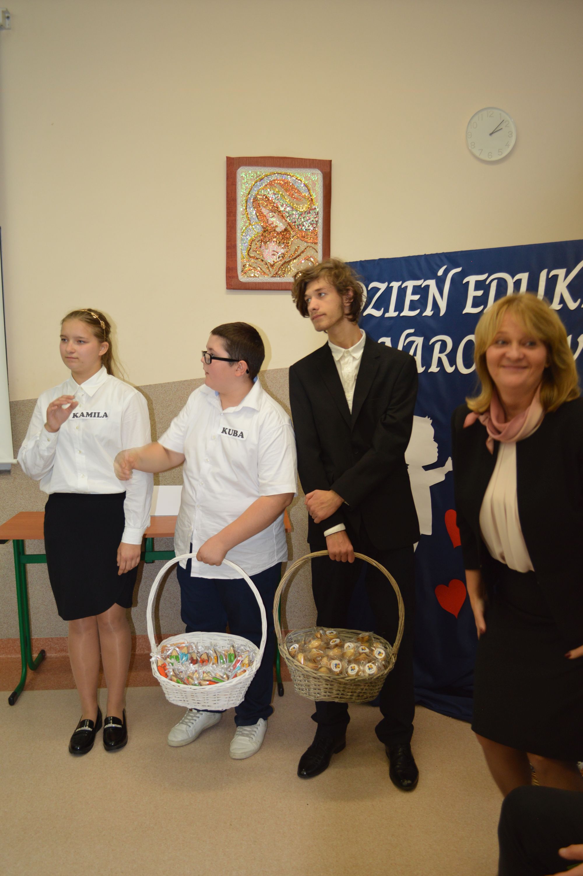 15 października obchodziliśmy Dzień Edukacji Narodowej. To wyjątkowe święto w polskim kalendarzu, poświęcone wszystkim pracownikom oświaty. Z tej okazji, uczniowie przygotowali piękne życzenia dla dyrekcji, nauczycieli, wychowawców oraz pozostałych pracowników szkoły. Uczniowie życzyli zdrowia, pomyślności oraz wielu sukcesów w pracy zawodowej i życiu prywatnym. Podkreślili, jak ważne są trud i zaangażowanie wkładane w codzienną pracę pedagogiczną, a także wyrazili wdzięczność za życzliwość oraz opiekę, jaką otrzymują od swoich nauczycieli. W ramach podziękowania uczniowie wręczyli symboliczne upominki, które miały na celu wywołać uśmiech i uprzyjemnić ten wyjątkowy dzień. Były to drobne gesty, ale pełne serdeczności i uznania. Całe wydarzenie miało bardzo ciepły i uroczysty charakter, podkreślający ważną rolę nauczycieli i pracowników szkoły w kształtowaniu młodych pokoleń.