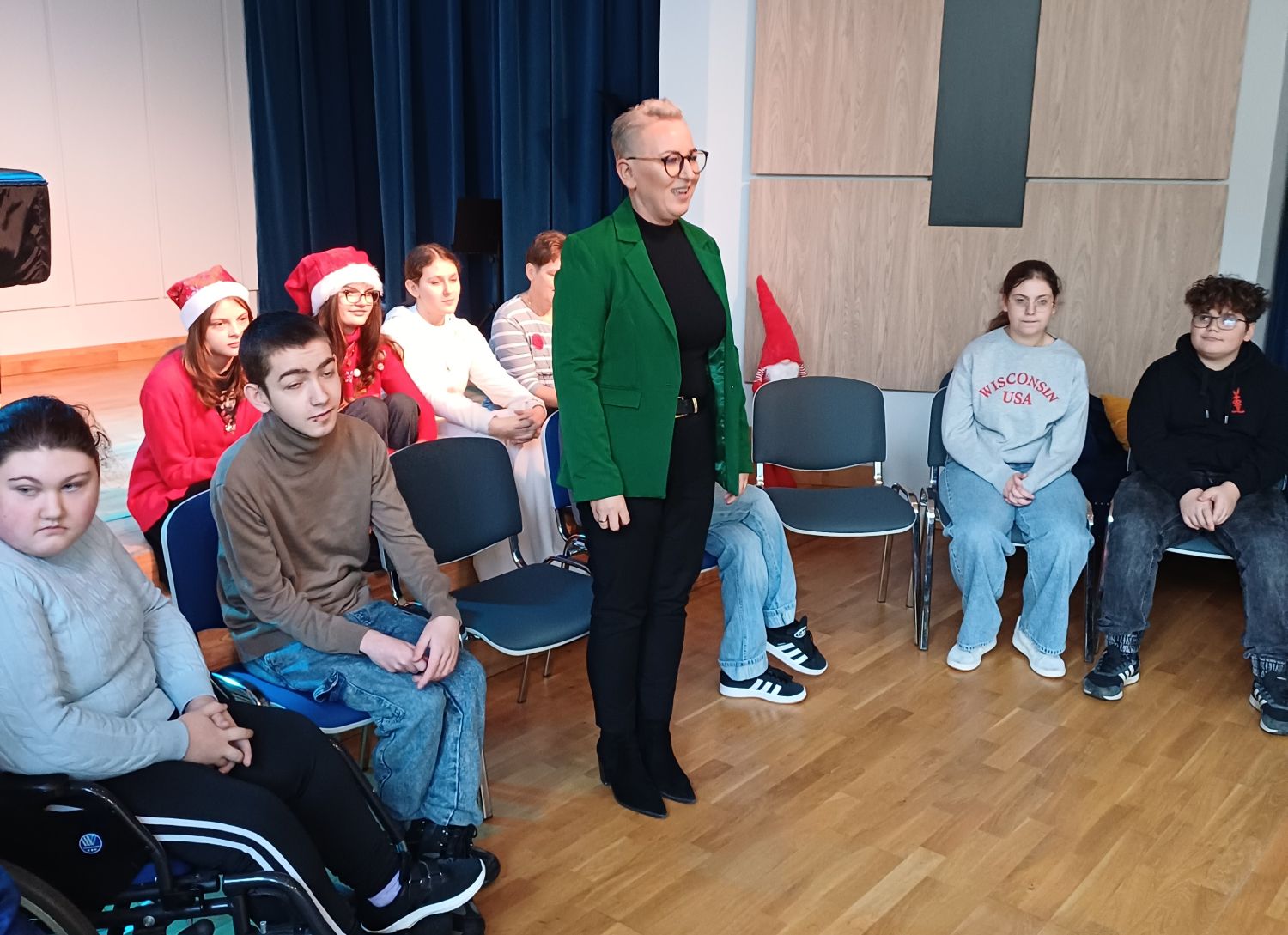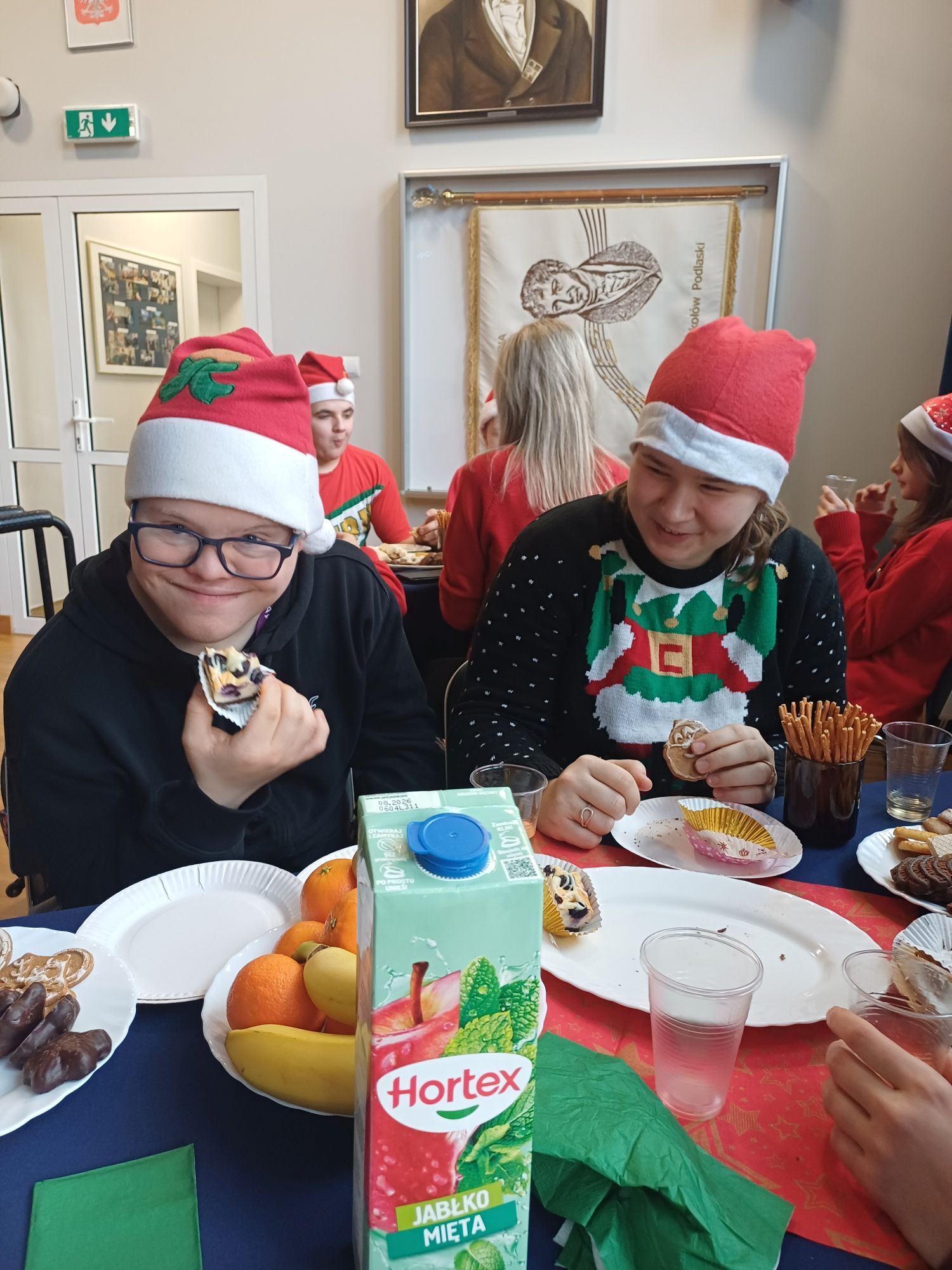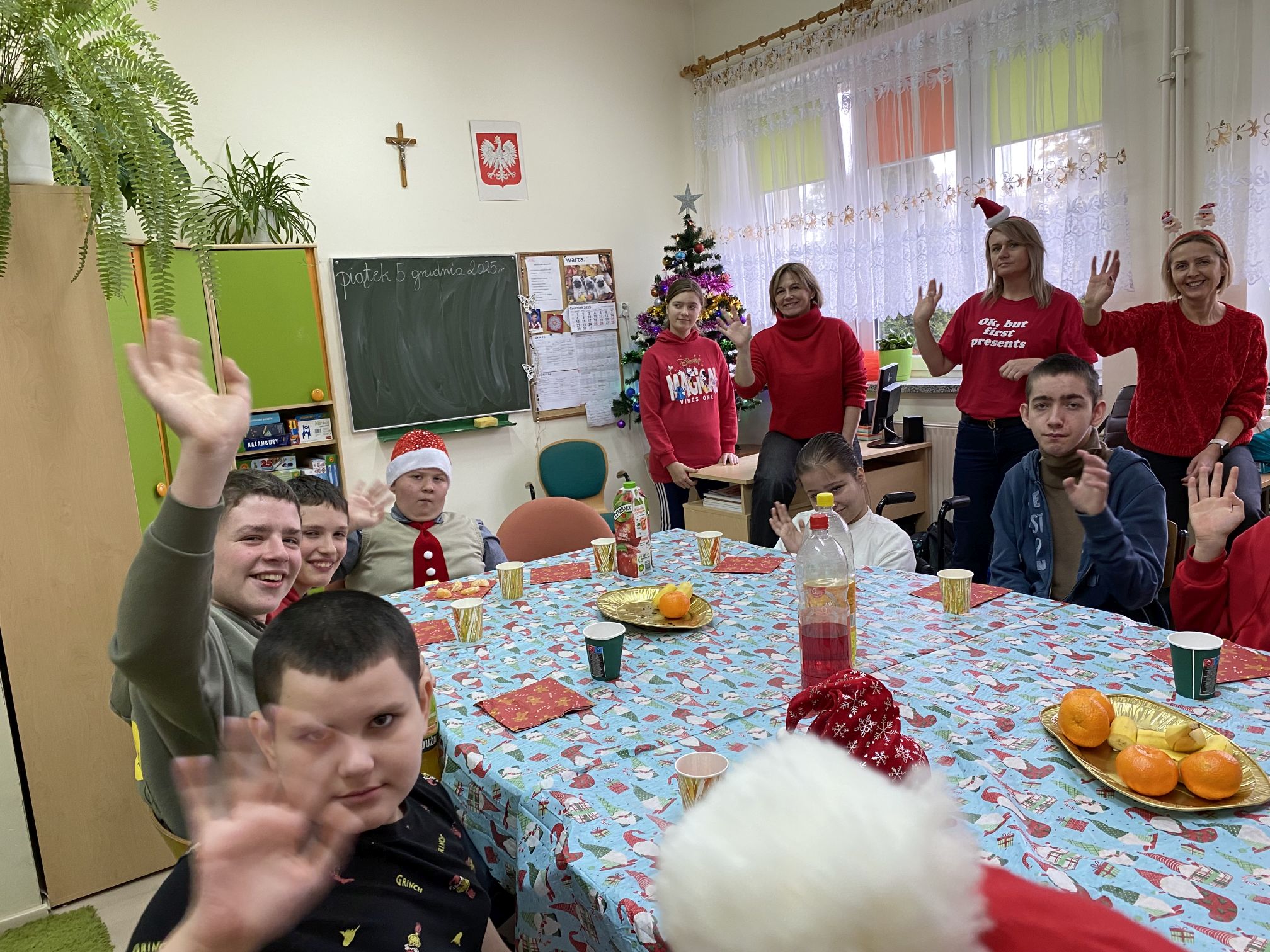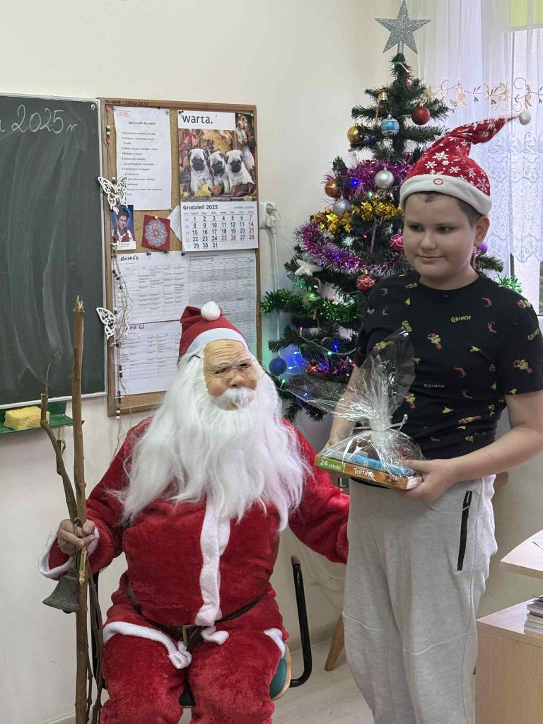 Był to wspaniały dzień pełen radości i ciepła! Wspólne zabawy, animacje przygotowane przez uczniów wprowadziły wyjątkową atmosferę. Podsumowaniem spotkania był Mikołaj, który wprowadził nas w czar magii Świąt. To był czas, który po raz kolejny pokazał, jak wiele daje nam empatia, zrozumienie i integracja. Poczuliśmy świąteczny klimat przy śpiewaniu wspólnych kolęd.