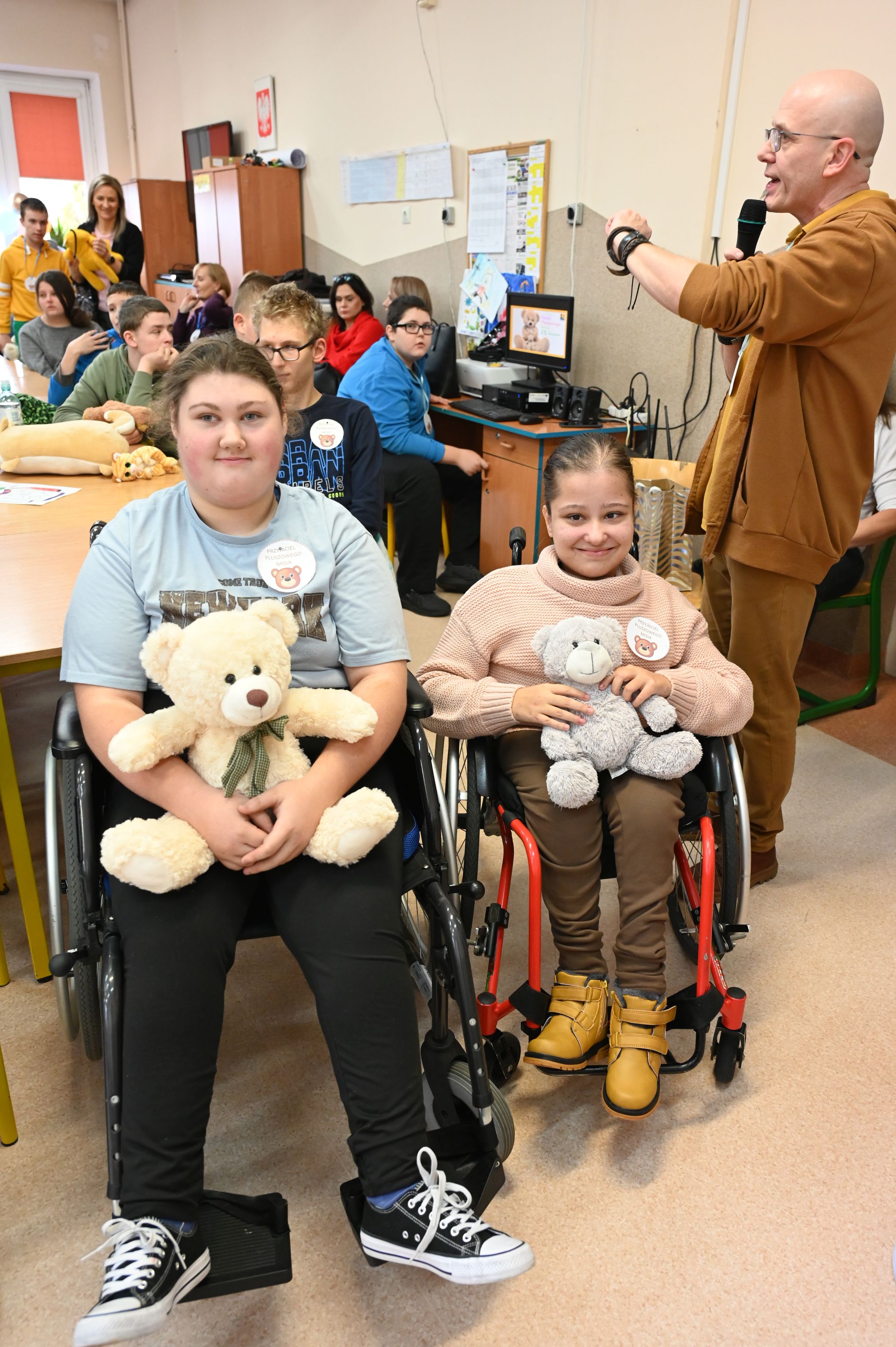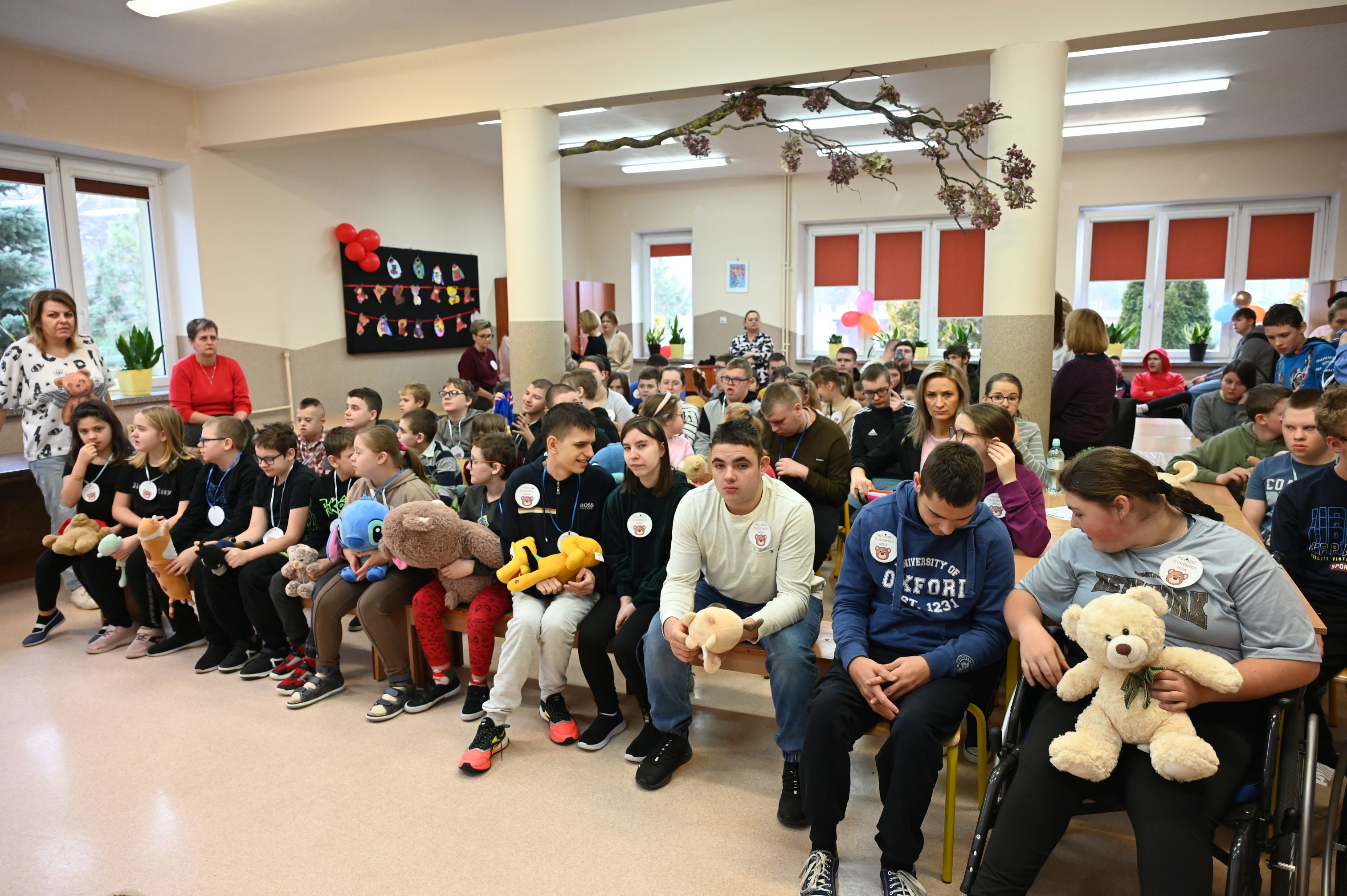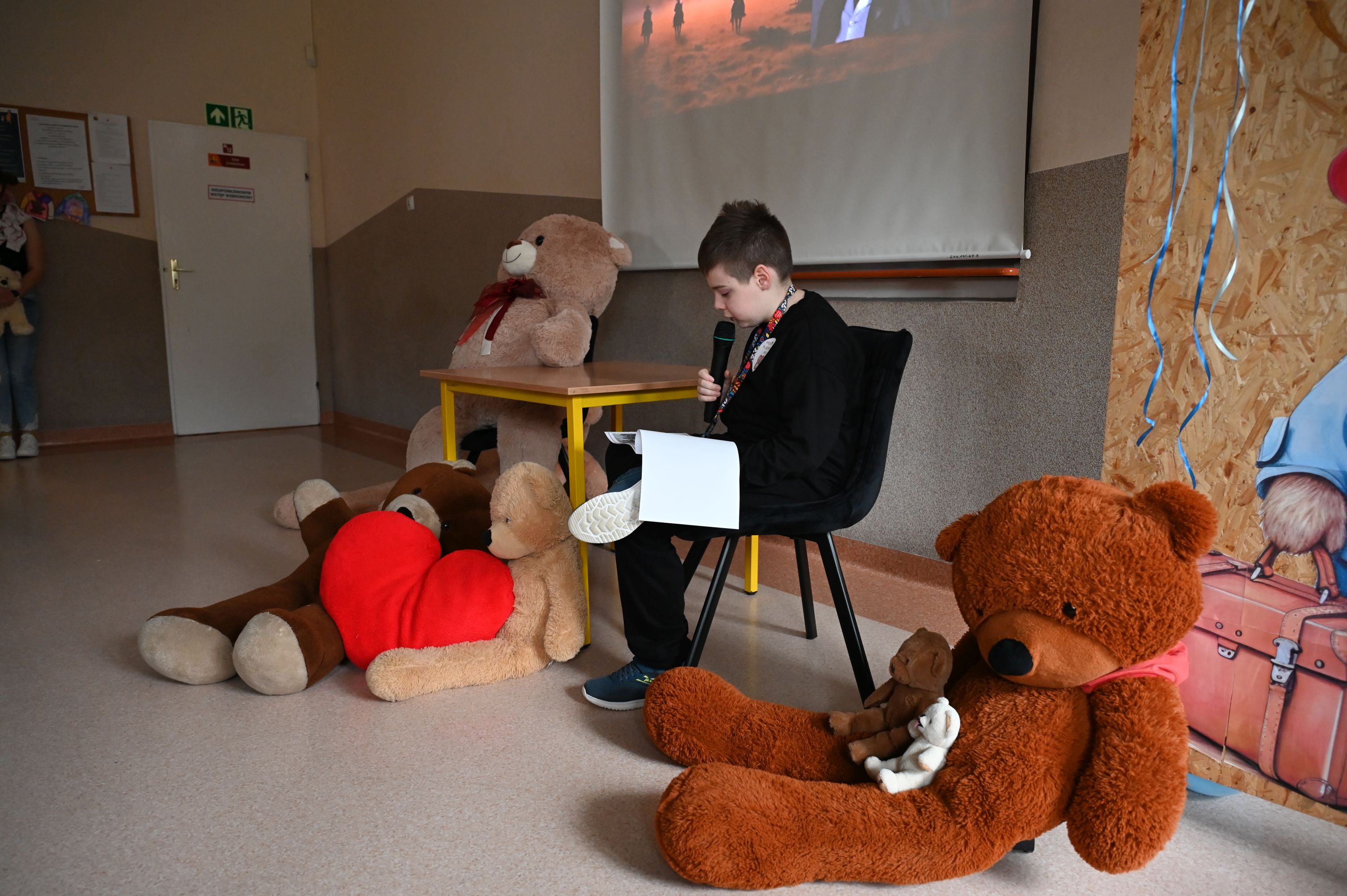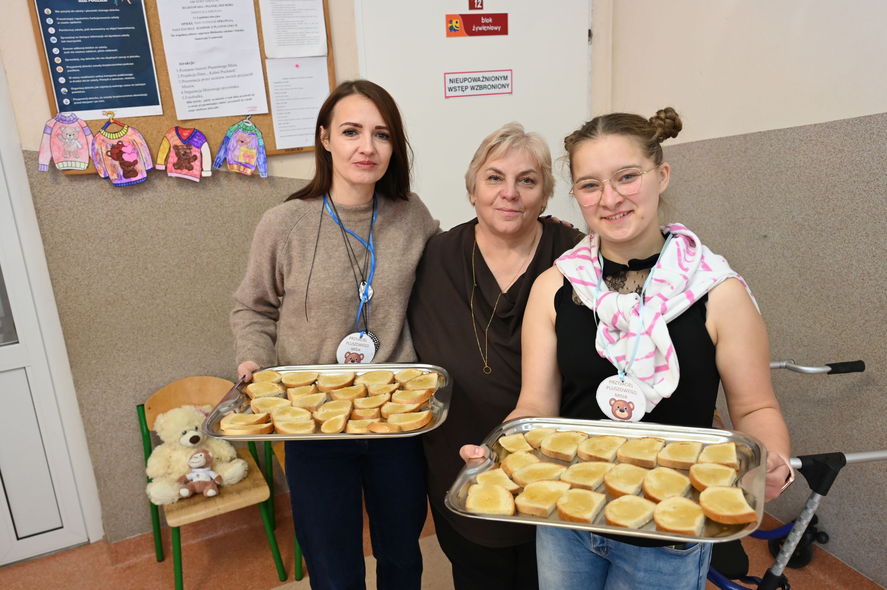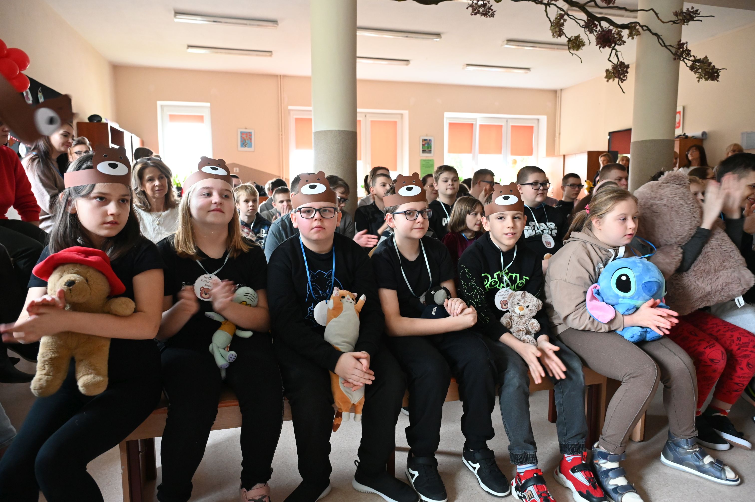 We wtorek, 25 listopada, świętowanie rozpoczęła Dyrekcja szkoły, serdecznie witając wszystkich na obchodach Międzynarodowego Dnia Pluszowego Misia. Janek przypomniał niezwykłą historię narodzin pluszowego misia, a potem zaprosiliśmy uczniów do filmowego świata Paddingtona, Colargola i Misia Uszatka. Odbył się także pokaz zdjęć z wcześniejszych obchodów Dnia Pluszowego Misia, dzięki czemu powróciły piękne i wzruszające wspomnienia. Wspólnie bawiliśmy się podczas taneczno-ruchowej zabawy „Jak obchodzić się z misiem”, która wszystkim dostarczyła mnóstwo radości. Ogromnym zainteresowaniem cieszyła się fotobudka, w której uczniowie i pracownicy szkoły mogli wykonać pamiątkowe zdjęcia ze swoimi pluszowymi przyjaciółmi. A na przyjęciu u misia oczywiście nie mogło zabraknąć chlebka z miodkiem – ulubionego przysmaku każdego misia! Każde dziecko otrzymało dziś pamiątkowy medal „Zostań przyjacielem pluszowego misia” oraz słodką niespodziankę – lizaka-misia. Na zakończenie dyrekcja podziękowała za przygotowanie tego wyjątkowego dnia bibliotece szkolnej, samorządowi uczniowskiemu oraz naszemu niezastąpionemu konferansjerowi, panu Grzegorzowi – nauczycielowi muzyki. To był wyjątkowy, magiczny dzień, który na długo pozostanie w naszej pamięci!