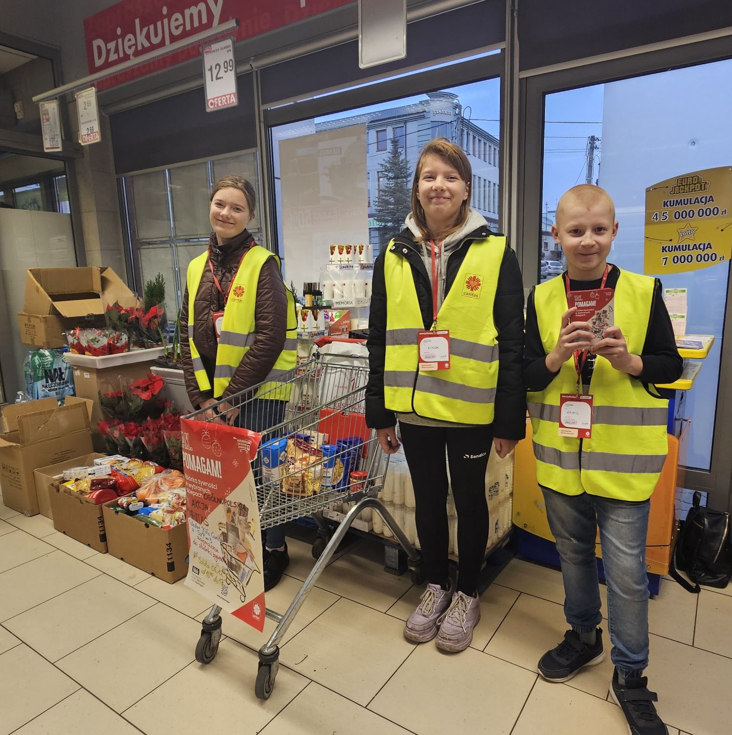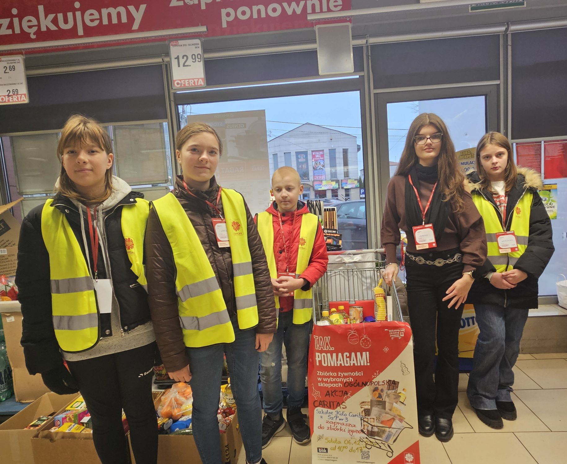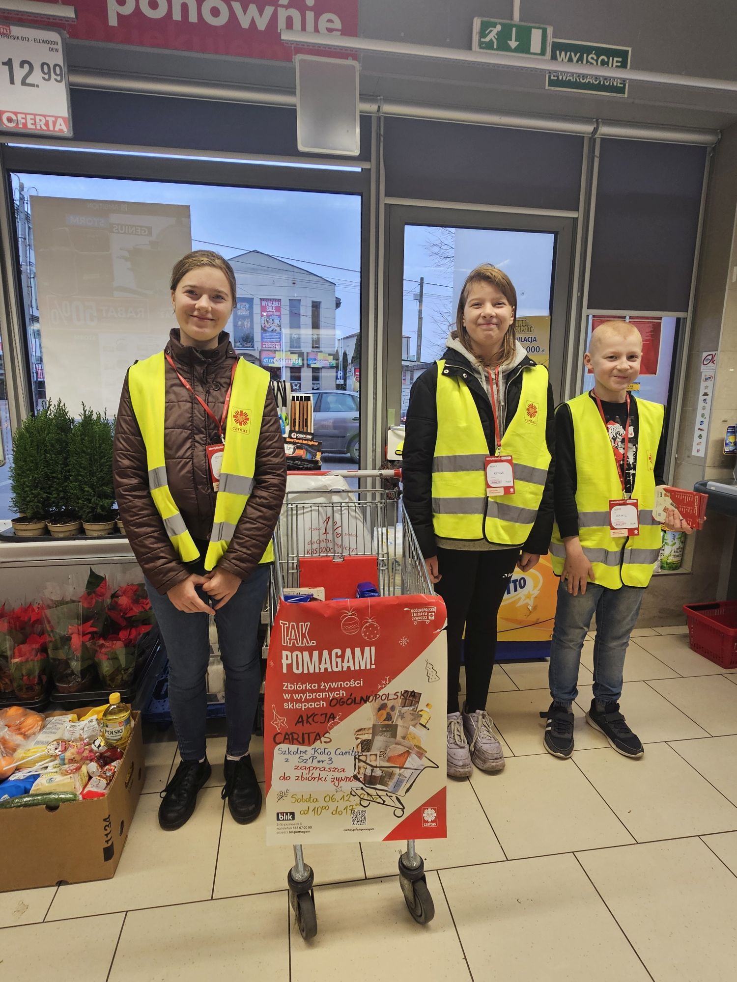 W sobotę 6 grudnia przedstawiciele naszego Samorządu Uczniowskiego we współpracy ze Szkolnym Kołem Caritas ze Szkoły Podstawowej nr 3 wzięli udział w Ogólnopolskiej Akcji „Tak. Pomagam!”. Świąteczna zbiórka żywności odbyła się w sklepach w całej Polsce. Zbierane były produkty żywnościowe o długim terminie przydatności do spożycia, które trafią do osób potrzebujących. Akcja Caritas to ogromne przedsięwzięcie, możliwe tylko dzięki zaangażowaniu wolontariuszy i hojności darczyńców. Wszystkim życzliwym osobom dziękujemy za wsparcie.