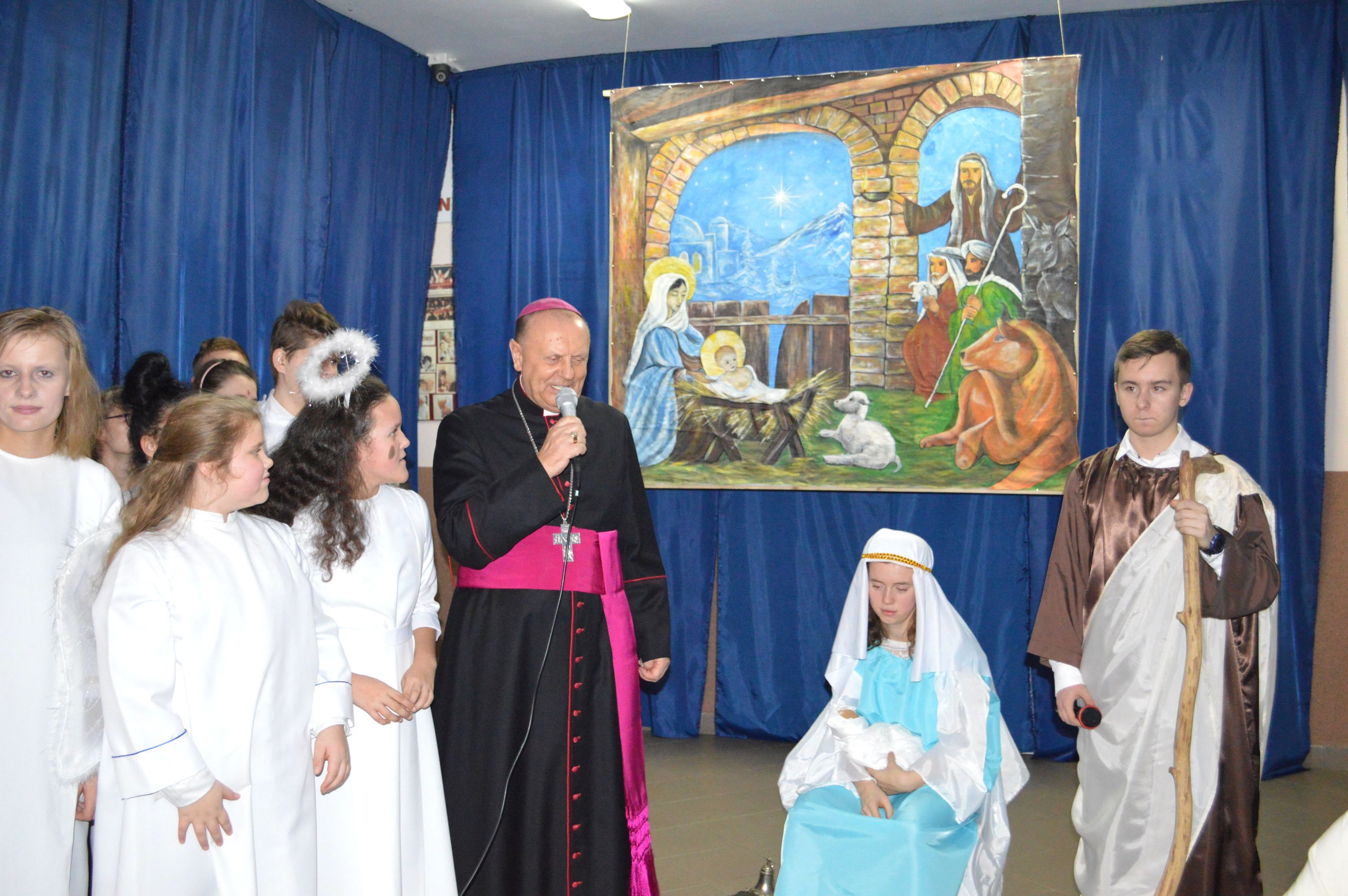 We wtorek, 18 grudnia 2018r., w naszej szkole odbyło się wspólne „spotkanie opłatkowe”. Wraz z zaproszonymi gośćmi – Ordynariuszem Diecezji Drohiczyńskiej, Biskupem Tadeuszem Pikusem, Księdzem Kanonikiem Stanisławem Boguszem, Starostą Powiatu Sokołowskiego Panią Elżbietą Sadowską, Wicestarostą Powiatu Sokołowskiego Panem Ryszardem Domańskim, Dyrektorem Publicznego Zakładu Opieki Zdrowotnej Panem Zbigniewem Deją, Radnymi Powiatu Sokołowskiego, Dyrektorami Szkół, Placówek i Instytucji z terenu Sokołowa Podlaskiego i Powiatu Sokołowskiego, wspólnie z naszymi Emerytami, obecnymi pracownikami szkoły: administracją, obsługą i nauczycielami, Rodzicami i Dziećmi słuchaliśmy kolęd, składaliśmy sobie życzenia Świąteczne i Noworoczne, a po „łamaniu się opłatkiem” zasiedliśmy do tradycyjnych „wigilijnych potraw” przygotowanych przez nasze Panie Kucharki. Dziękujemy za przybycie wszystkim zaproszonym gościom. Cała społeczność szkolna – Dzieci, Rodzice, Nauczyciele, Wychowawcy, wspólnie z Władzami Samorządowymi, Kierownikami jednostek, Władzami kościelnymi oraz Przyjaciółmi związanymi ze szkołą to przecież jedna, Wielka Rodzina.