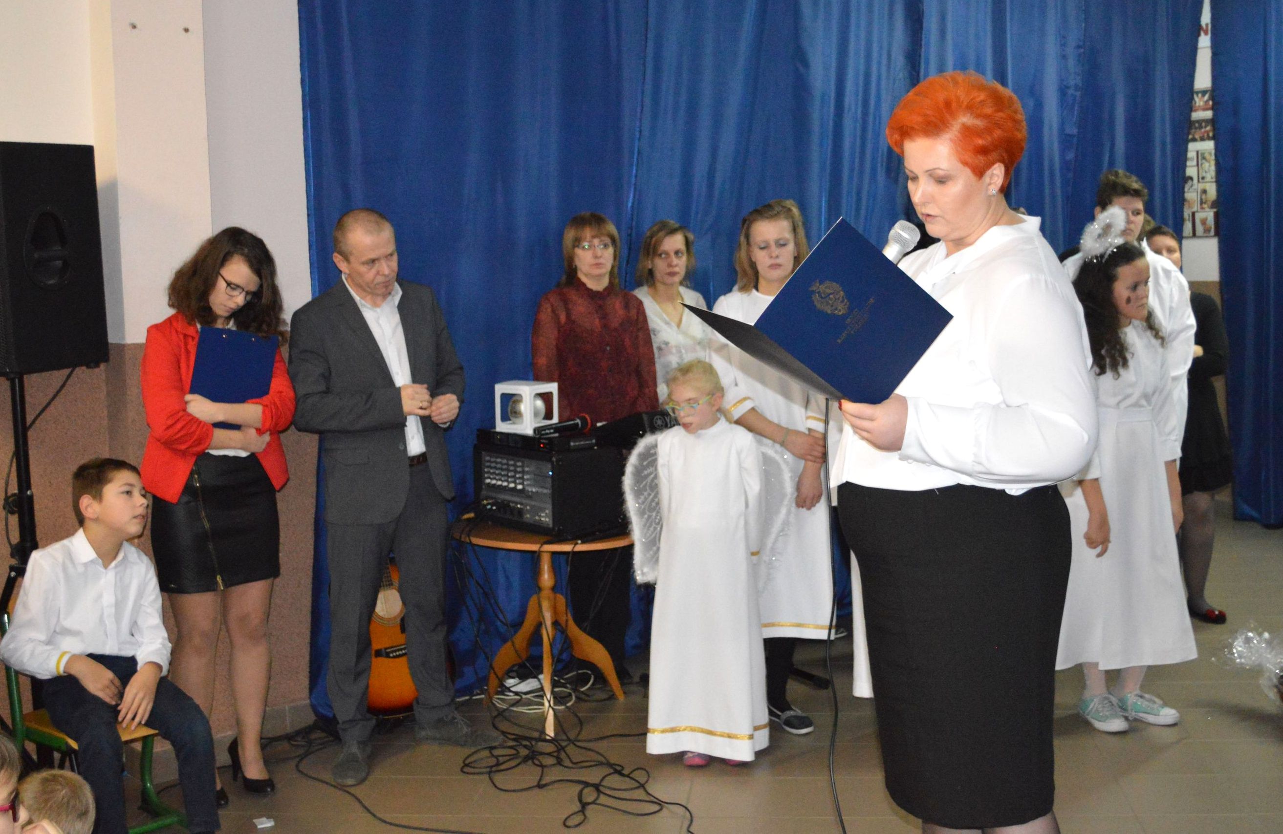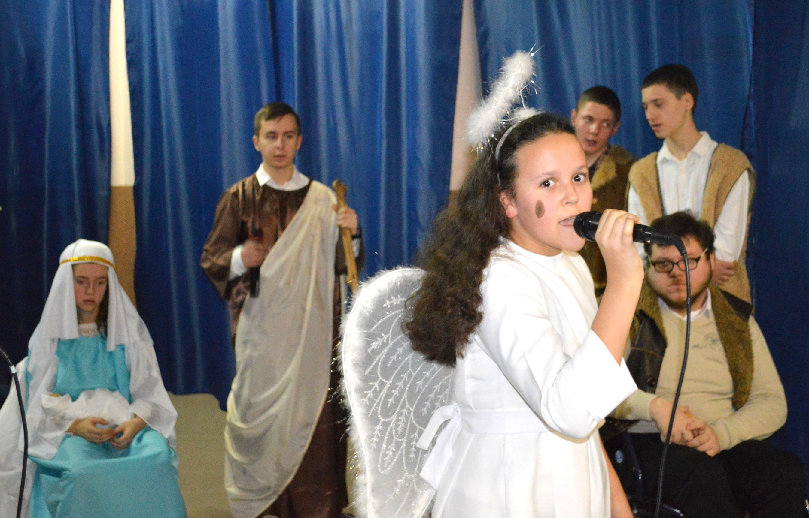 Mogliśmy podziwiać występ uczniów klasy V- „Pantomima świąteczna”. Wszystkich poruszyła gra uczennicy szkoły na akordeonie.