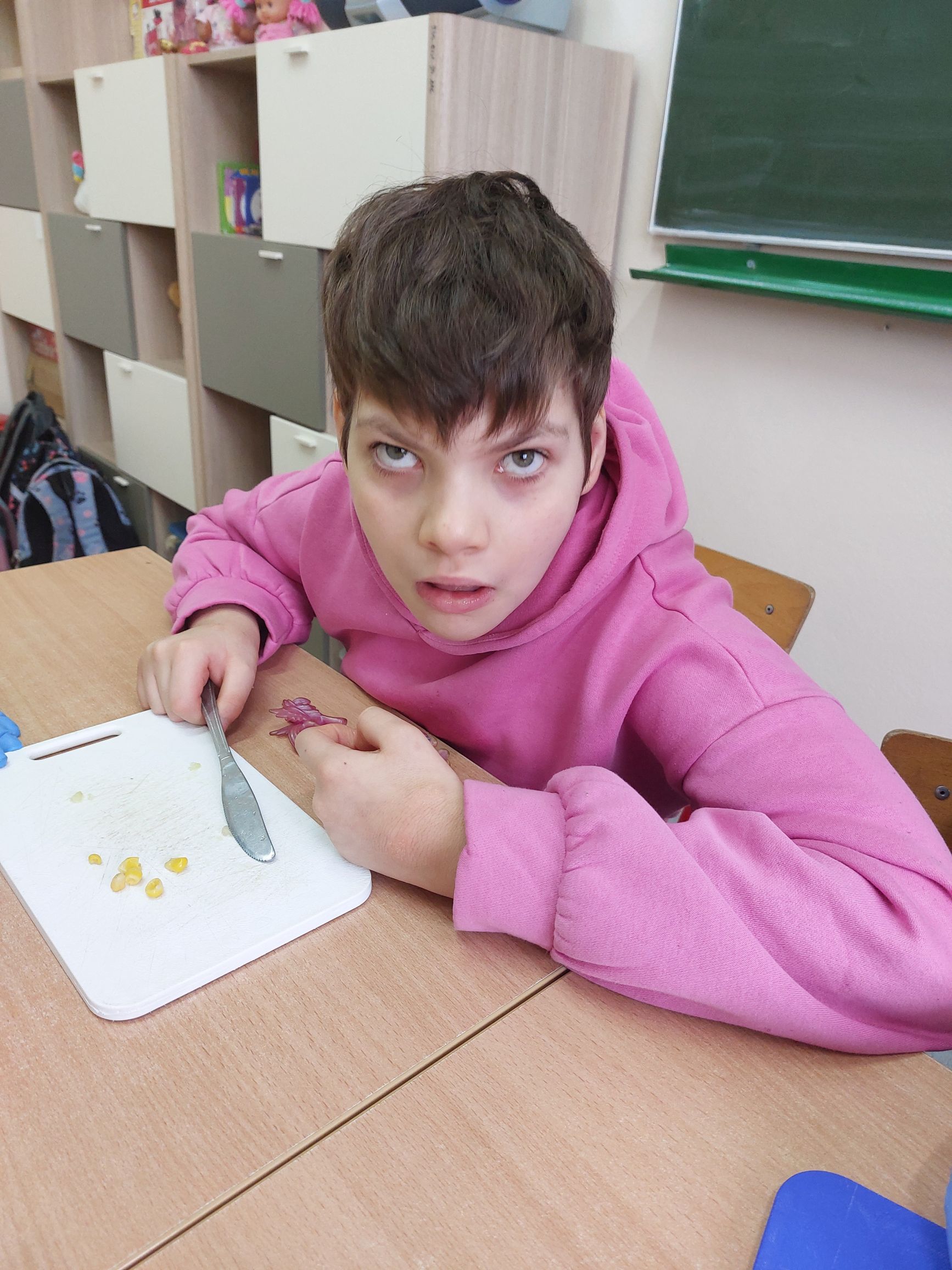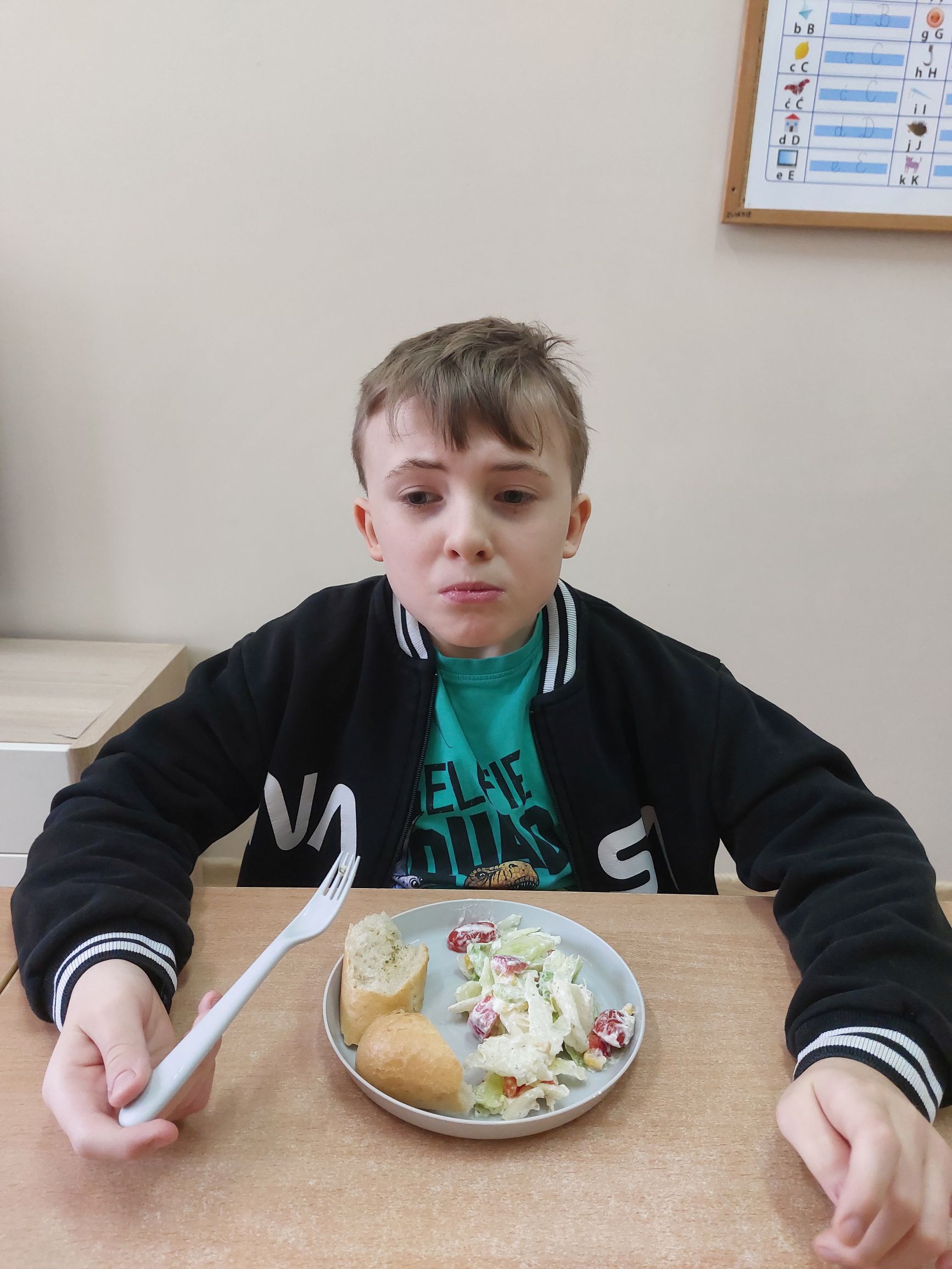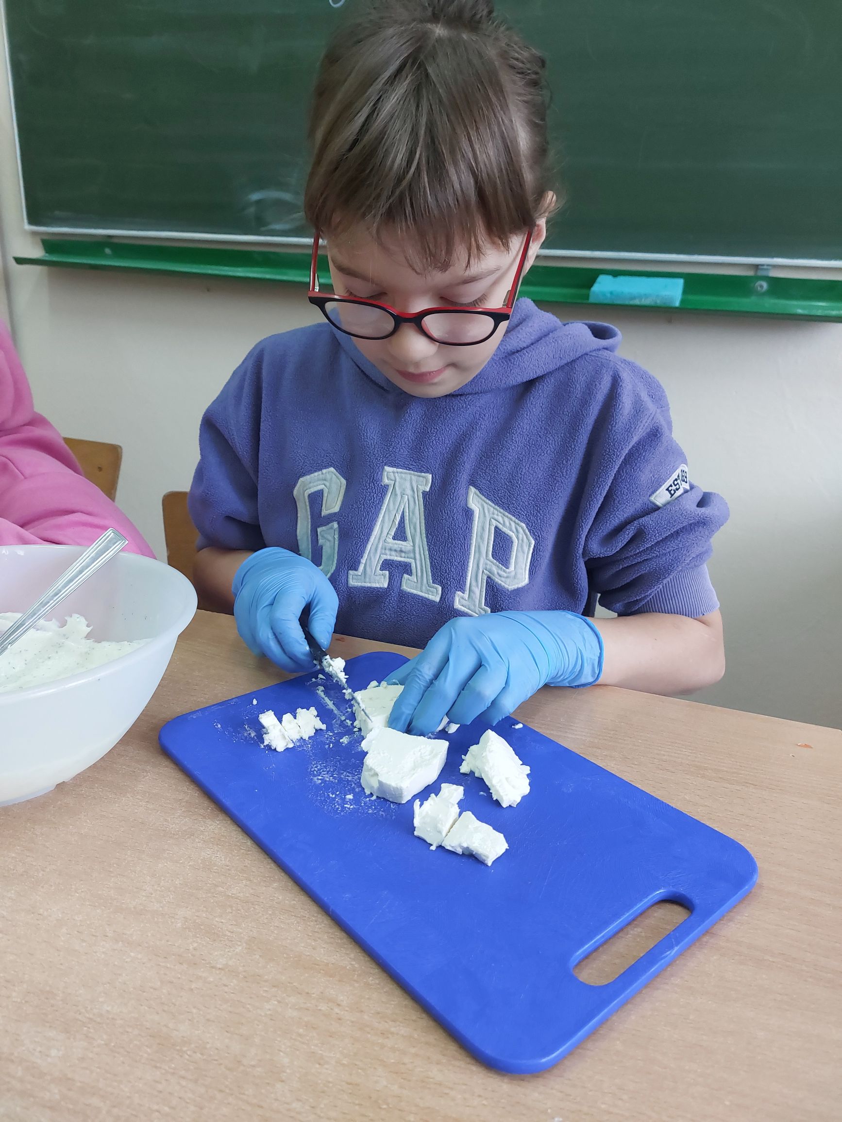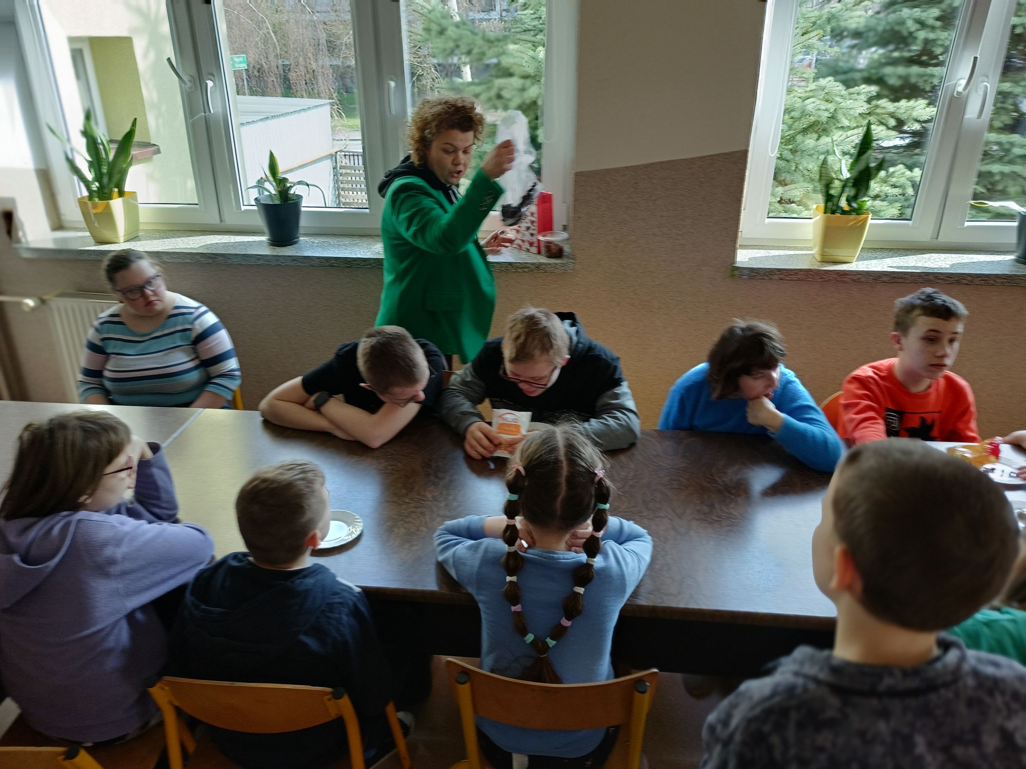 Uczniowie klasy IIIc postanowili przygotować sałatkę warzywną. Przygotowaliśmy potrzebne produkty, dostaliśmy deski oraz nożyki i tak przystąpiliśmy do krojenia. Samodzielnie kroiliśmy i przyrządzaliśmy sałatkę warzywną, przestrzegając zasad bezpieczeństwa i higieny. Wykazaliśmy się dużym zaangażowaniem i zapałem do pracy. Dało nam to dużo satysfakcji. Na koniec gotową sałatkę nałożyliśmy na talerze urządzając w sali prawdziwą ucztę! Było tak pysznie, że postanowiliśmy się tym podzielić z innymi.