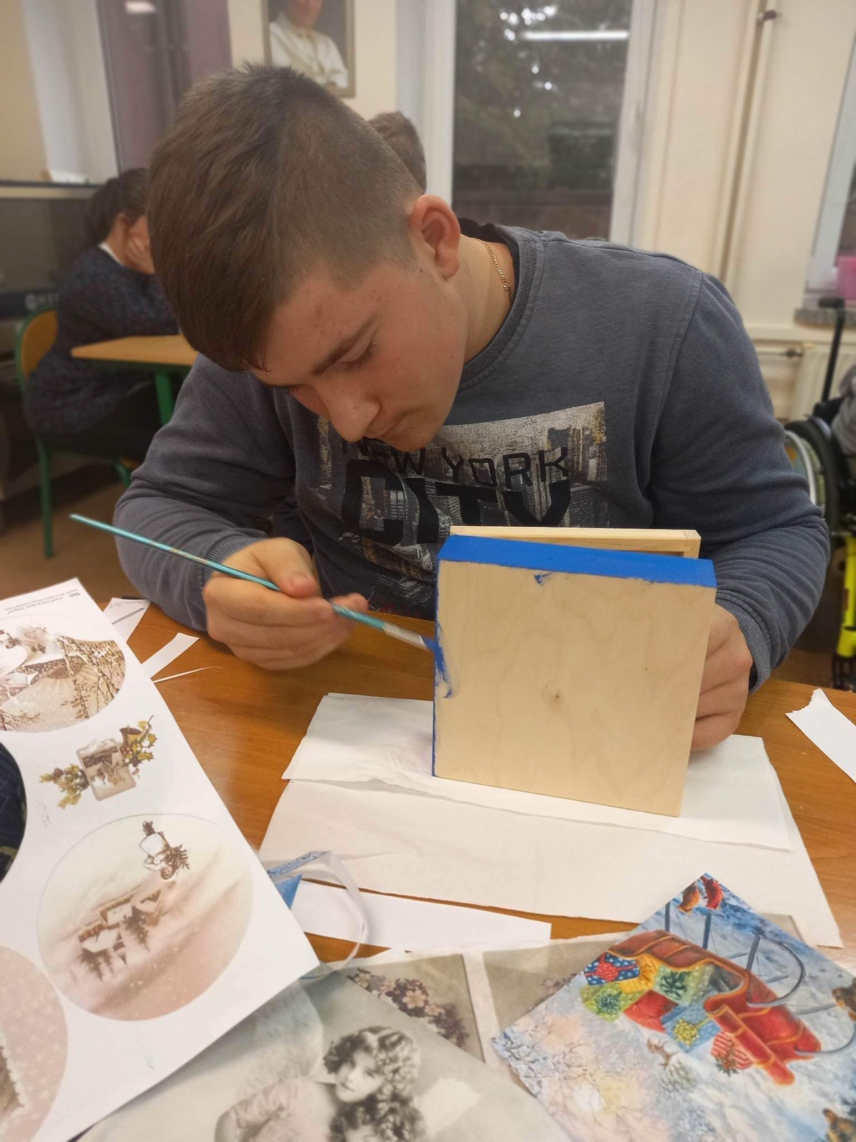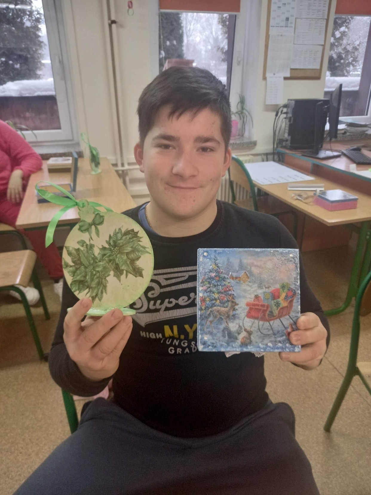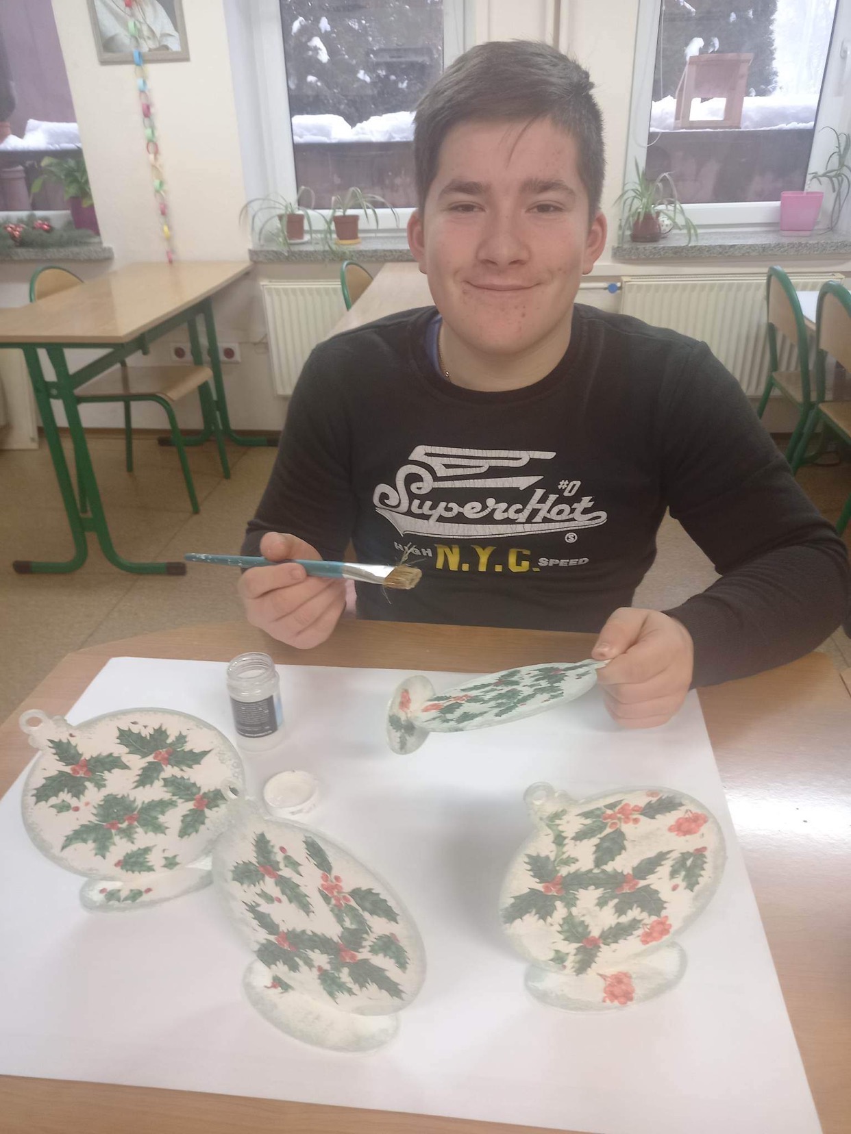 Okres przedświąteczny w naszej szkole upływa bardzo pracowicie Uczniom Szkoły Przysposabiającej do Pracy. Świąteczne kartki, drewniane pudełeczka oraz bombki zdobione techniką decoupage zostały wykonane przez młodzież w ramach zajęć z przysposobienia do pracy.Uczniowie chętnie zdobili drewniane przedmioty, ciesząc się, iż mogą one posłużyć jako prezent świąteczny dla bliskich.Uczniowie klasy IV – V c też rozpoczęli przygotowania do świąt. Wspólnie z wychowawczynią, Panią Beatą Stankiewicz, upiekli pierniczki. Wszystkim bardzo się spodobała współpraca, zwłaszcza dekorowanie pierniczków i degustacja.
