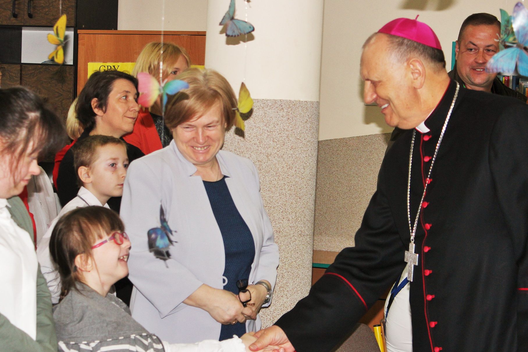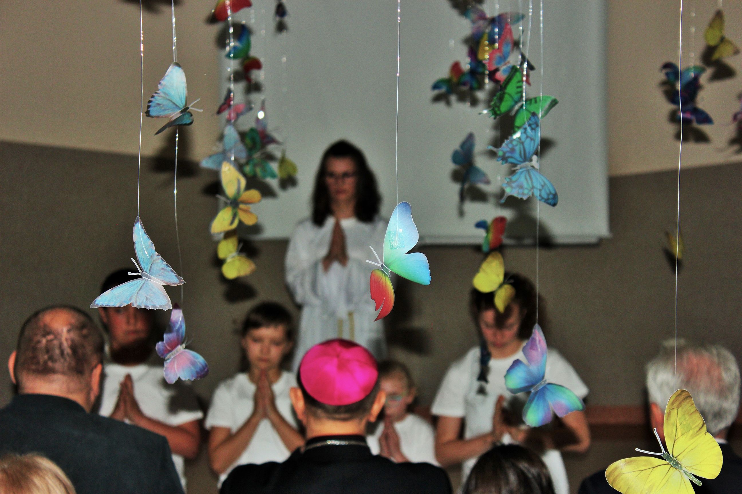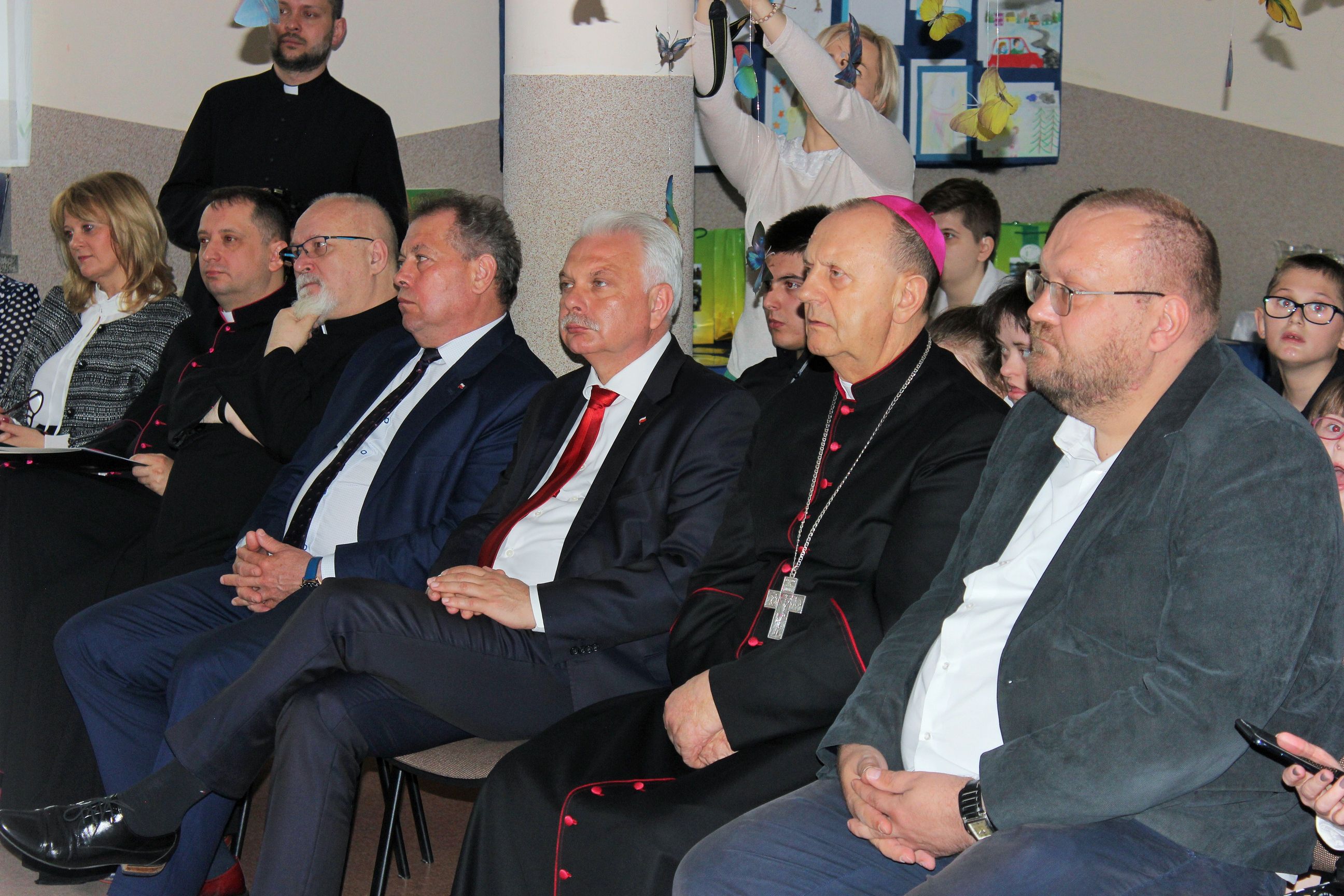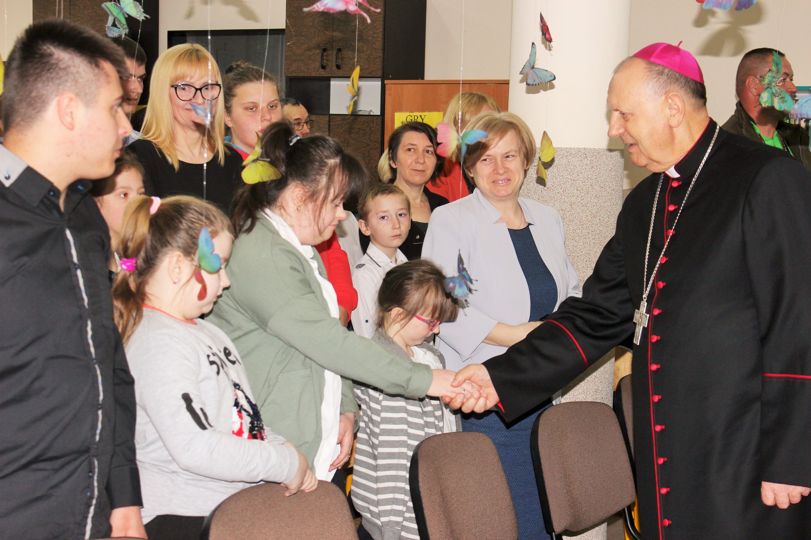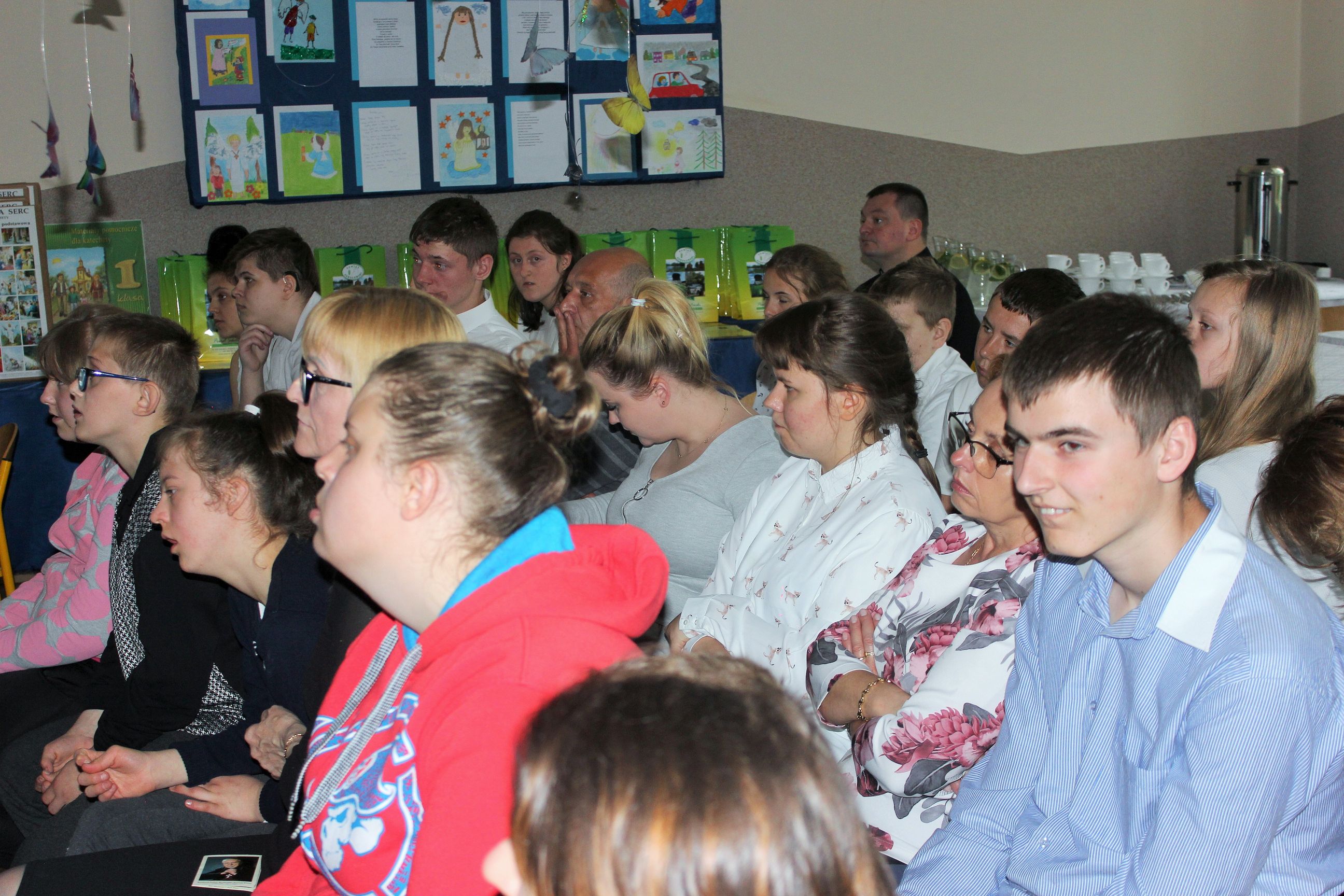 We wtorek, 14 maja 2019 r. w Zespole Szkół Specjalnych im. Jana Pawła II w Sokołowie Podlaskim odbyło się uroczyste rozstrzygnięcie i podsumowanie konkursu diecezjalnego „Mój przyjaciel Anioł Stróż„. To już VI edycja konkursów dla dzieci i młodzieży szkół specjalnych z terenu diecezji drohiczyńskiej. Rekordowa liczba nadesłanych prac z terenu trzech województw świadczy o rosnącym zainteresowaniu i popularności konkursu wśród placówek oświatowych i wychowawczych. Uroczystość poprowadzili Pani Dyrektor Beata Biernat i ks.kan dr Krzysztof Mielnicki jako przedstawiciele organizatorów konkursu – Zespołu Szkół Specjalnych im. Jana Pawła II w Sokołowie Podlaskim i Wydziału Katechezy i Szkolnictwa Katolickiego Diecezji Drohiczyńskiej. Podczas uroczystego wręczania nagród obecni byli : J.e. ks. prof. dr hab. Tadeusz Pikus Ordynariusz Diecezji Drohiczyńskiej, ks. kan. dr Krzysztof Mielnicki Dyrektor Wydziału Katechezy i Szkolnictwa Katolickiego, ks. Marcin Gołębiewski Dyrektor Centrum Informacji Diecezji Drohiczyńskiej, ks. Leszek Ruciński przedstawiciel Parafii Św. Jana Bosko w Sokołowie Podlaskim, Senator RP Waldemar Kraska, Pan Adam Skup Dyrektor Siedleckiej Delegatury Kuratorium Oświaty w Warszawie, Pan Jacek Odziemczyk Przewodniczący Rady Powiatu Sokołowskiego, Pani Joanna Malinowska Dyrektor Biura Senatora RP Waldemara Kraski oraz Pani Beata Biernat Dyrektor Zespołu Szkół Specjalnych im. Jana Pawła II w Sokołowie Podlaskim. Uroczystość uświetnił występ naszych uczniów -„artystów”, których przygotowali Pan Grzegorz Nowotniak, Pani Dorota Prokopczuk, Pani Aneta Nowotniak, Pani Renata Krasowska i Pani Małgorzata Dąbrowiecka. Osobami odpowiedzialnymi za przebieg konkursu były katechetki: Pani Urszula Krzymowska i Pani Grażyna Jarosz. Fotorelację przygotowała Pani Katarzyna Zalewska.