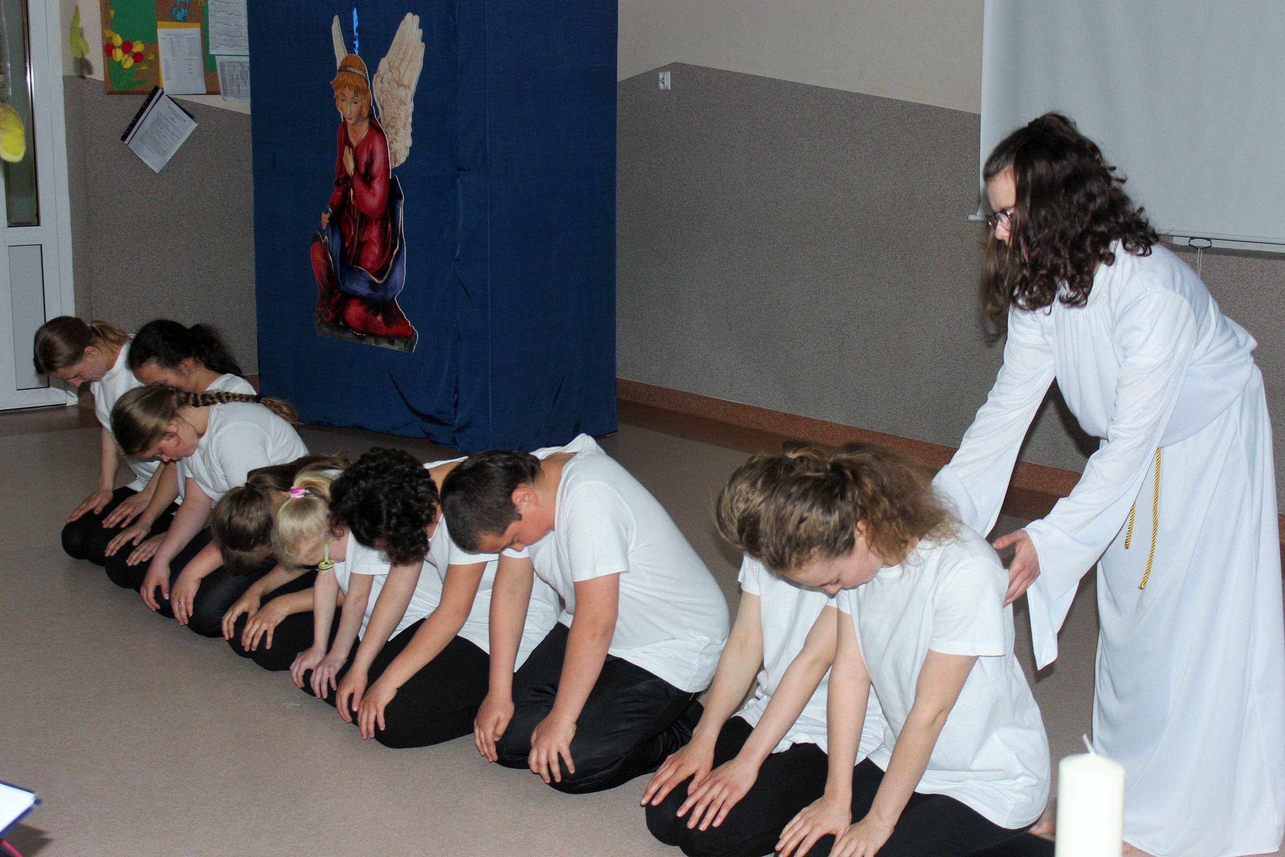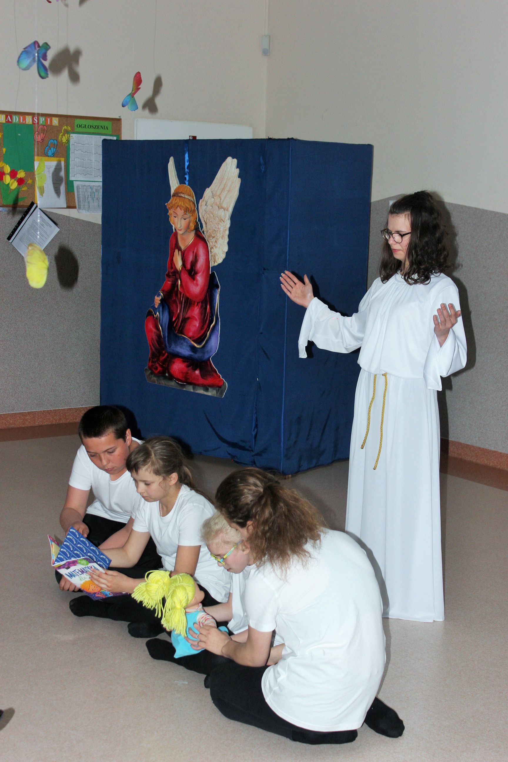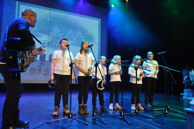Alan Wyszomirski-IIc, Piotr Maćkowiak-IIIa, Kamila Kazimierczuk-IIIa, Dominika Kutnik-Va, Angelika Salach-VIc, Natalia Ratyńska-IIIa. Wykonali oni dwie kolędy z akompaniamentem gitary i instrumentów perkusyjnych, na których samodzielnie grali.