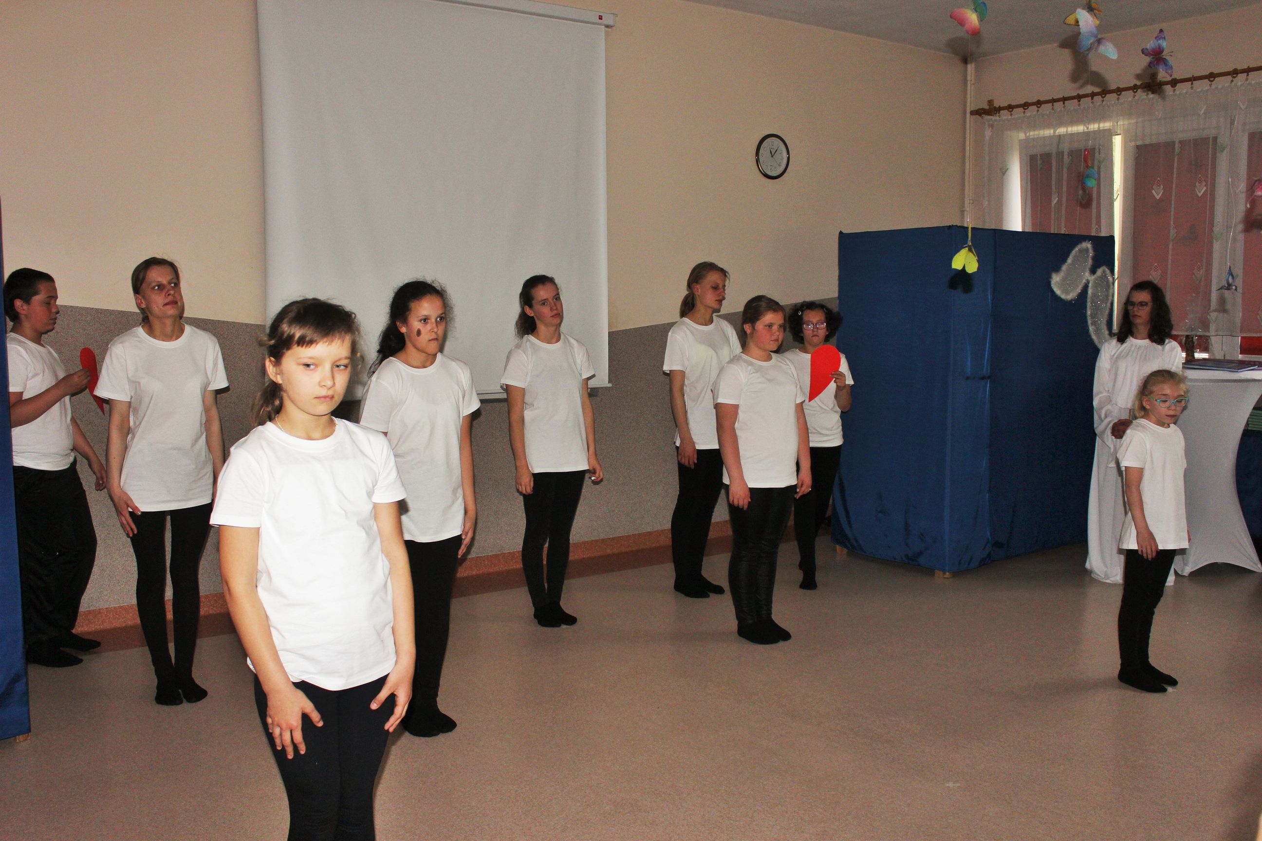 Nasza reprezentacja w składzie: Klaudia Ciosek, Angelika Salach, Ewa Szajko, Dominika Kutnik oraz Kuba Majchrzyk pod kierunkiem p.Doroty Prokopczuk i p.Grzegorza Nowotniaka wykonała dwie piosenki: „Moje serce śpi” z repertuaru zespołu „Arka Noego” oraz „Anioł Stróż” – Magdy Anioł. Występ naszych artystów wzbudził wielkie emocje wśród widowni i został nagrodzony owacjami. Szczególnie zachwycił publiczność pomysł pana Grzegorza, który zaproponował aby pokazać całemu światu, że nasze serca nigdy nie śpią i zawsze są otwarte na drugiego człowieka a na dowód tego poprosił aby wszyscy przytulili się do osoby siedzącej obok. Nie ominęło to także zaproszonych gości i łosickich władz. Po występach wszyscy udali się do internatu SOSW gdzie czekał gorący obiad i słodka niespodzianka- urodzinowy tort. Udział w tego typu przedsięwzięciach daje naszym uczniom możliwość prezentowania swoich umiejętności, rozwijania ich i doskonalenia. Pozwala na zawieranie nowych znajomości i uczy postaw społecznych. Wszystko to wpływa na podniesienie poczucia własnej wartości i wzrost samooceny co jest niezbędne w procesie edukacyjno-wychowawczym. I co ważne, młodzi artyści reprezentują naszą szkołę promując ją i przynosząc dobre imię. Z czego jesteśmy niezwykle dumni.