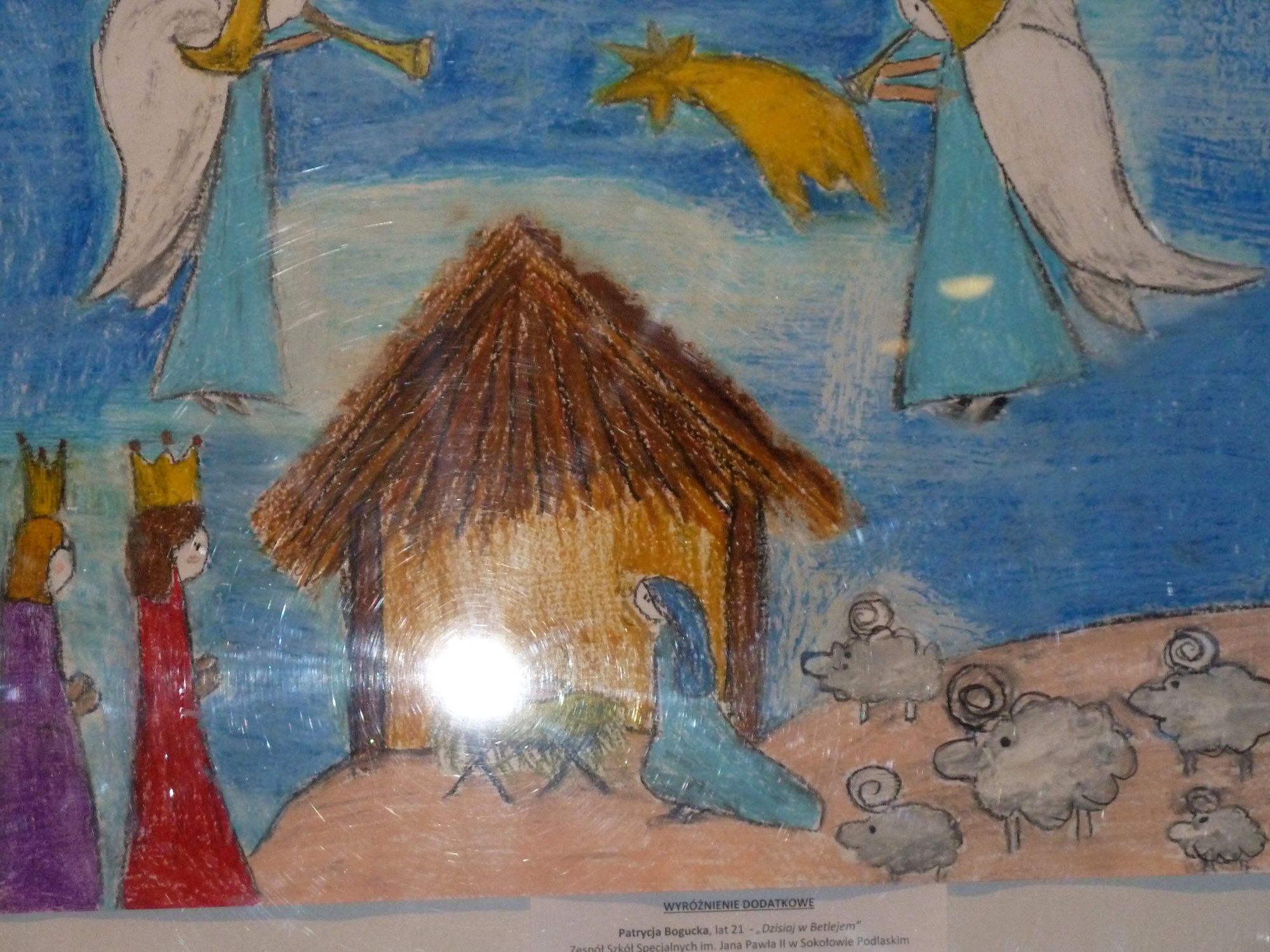 W grudniu nasza szkoła wzięła udział w konkursie plastycznym zorganizowanym przez Sokołowski Ośrodek Kultury. Ideą konkursu było zmierzenie się z próbą przeniesienia treści i znaczenia Bożonarodzeniowej Kolędy lub jej fragmentu, na język sztuk plastycznych. Przedstawienie symboliki Świąt Bożego Narodzenia ukrytej w wersach kolęd.