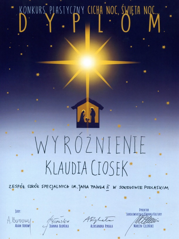 Wyróżnienia:Julia Piekarska – Specjalny Ośrodek Szkolno- Wychowawczy w Międzyrzecu Podlaskim