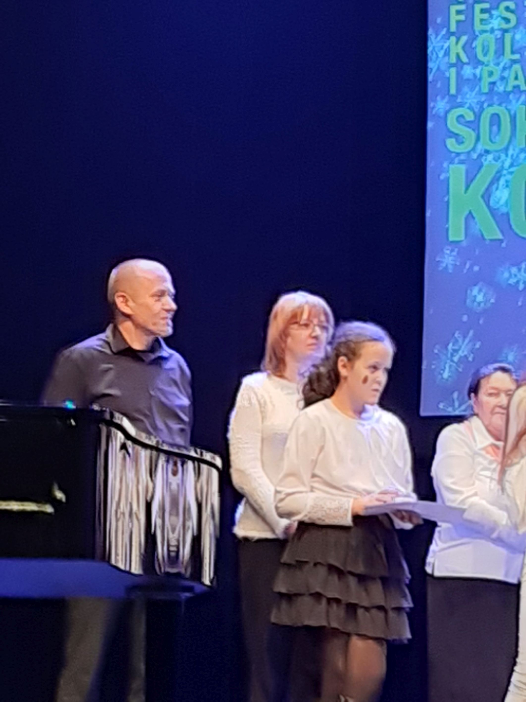 Wszyscy odnieśli sukces – Klaudia zajęła I Miejsce, Grześ – III a Ewa została wyróżniona. To oczywiście sukces nie tylko uczniów ale i ich opiekunów, którzy przygotowali artystów i byli z nimi na scenie podczas występów – Pani Dorota Prokopczuk akompaniowała na fortepianie a Pan Grzegorz Nowotniak grał na gitarze. Była to dla nich wielka niespodzianka gdyż konkurencja była silna a poziom występów bardzo wysoki. Tym bardziej jesteśmy z nich dumni.