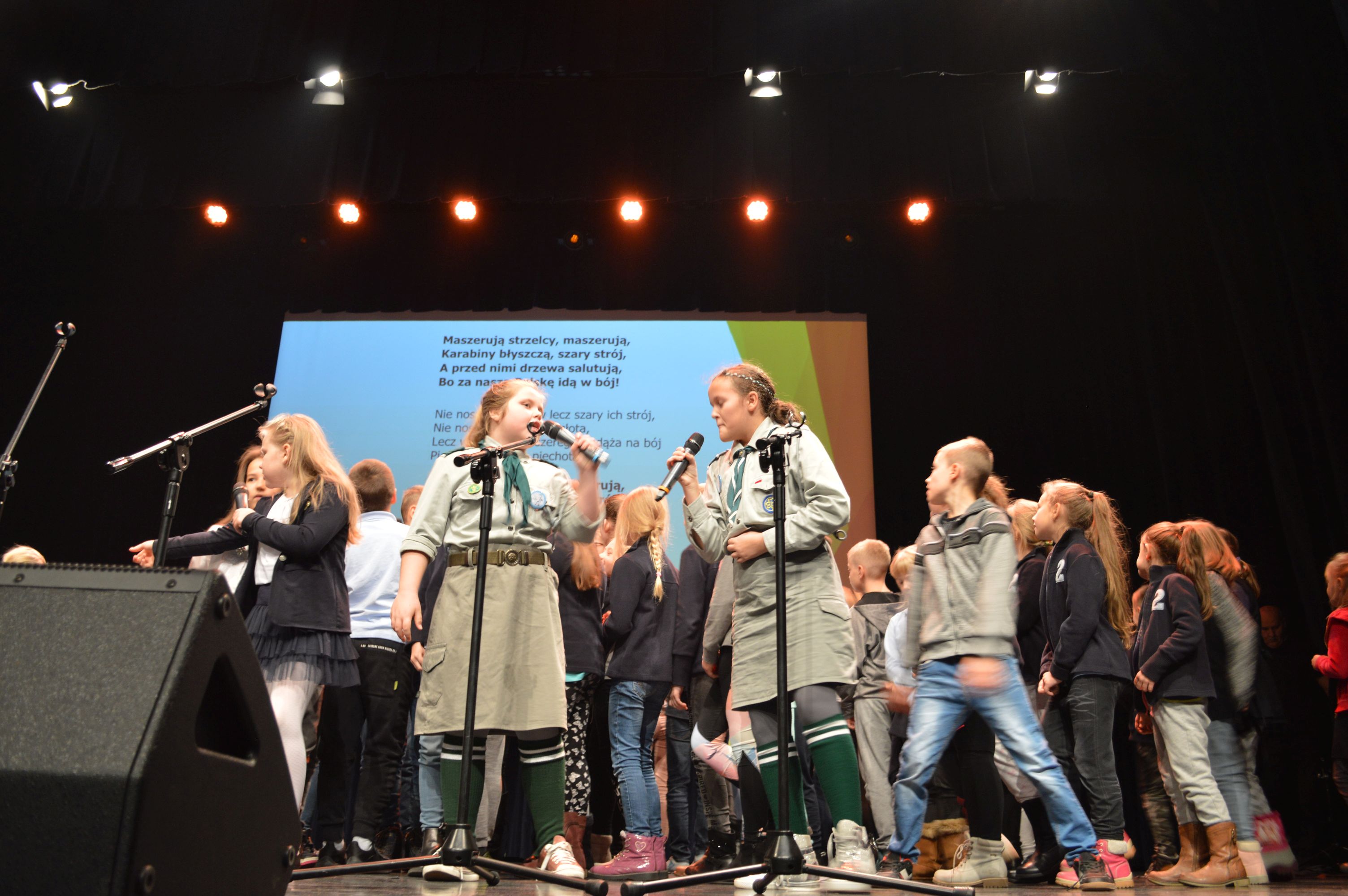 Reprezentantami naszej Szkoły byli harcerze należący do szkolnych drużyn: 92 ŻSDH NS „Duchy Lasu” im. Janusza Korczaka oraz 93 MSDH NS „ Duchy Lasu”. A byli to: Klaudia Ciosek kl. IV w piosence „Biały Krzyż” Czerwonych Gitar, Ewa Szajko kl. VII w piosence „Szara Piechota” oraz Grzegorz Boruta kl. II Gimnazjum w piosence „Marsz I Brygady”.