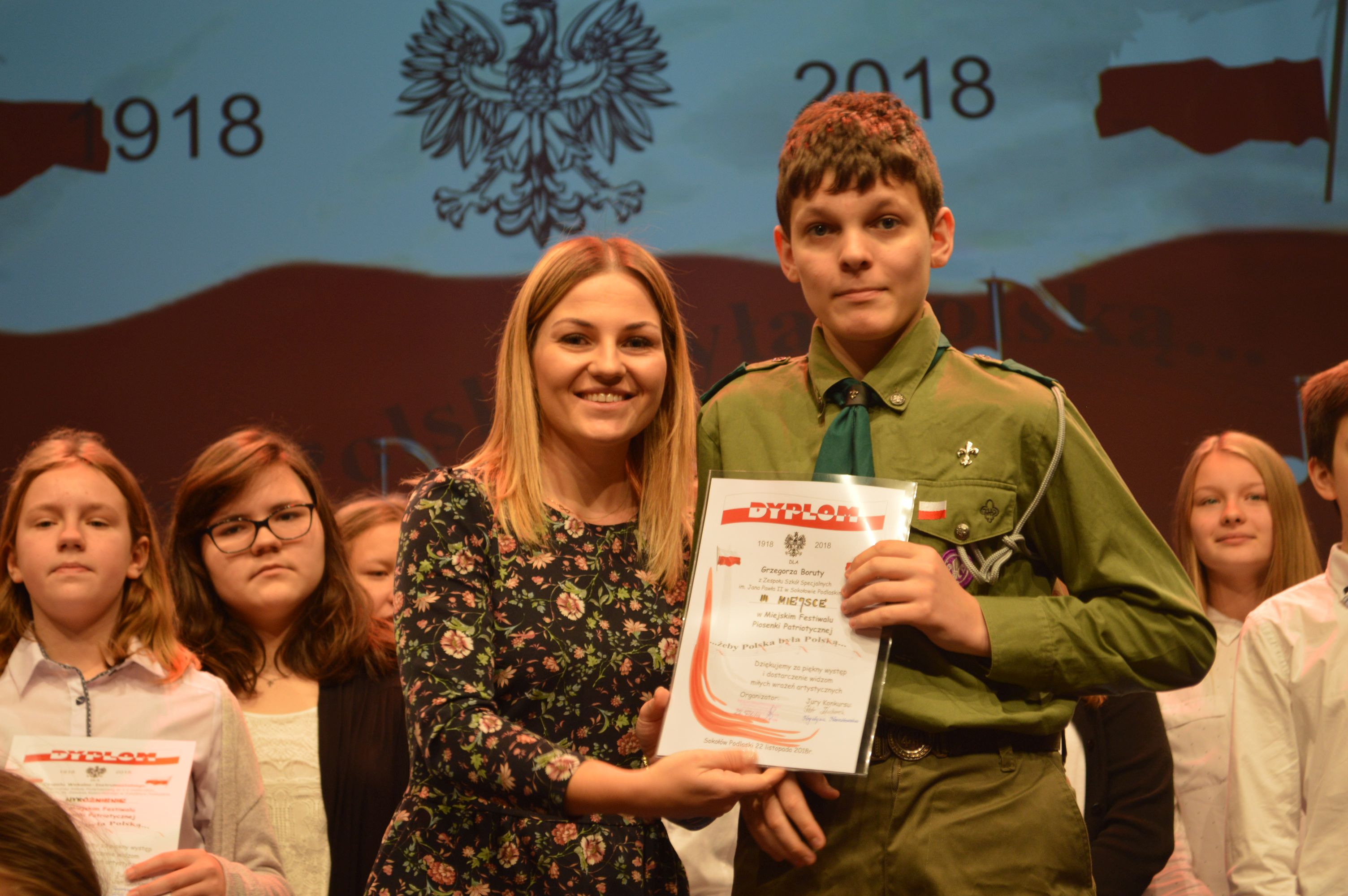 22 listopada 2018 roku w Sokołowskim Ośrodku Kultury miało miejsce niecodzienne wydarzenie. Po raz pierwszy w naszym mieście odbył się Miejski Festiwal Piosenki Patriotycznej. Organizatorem tego szczytnego przedsięwzięcia była Szkoła Podstawowa nr1 im. J.Kusocińskiego w Sokołowie Podlaskim a uczestnikami Festiwalu byli właśnie uczniowie szkół podstawowych z naszego miasta.