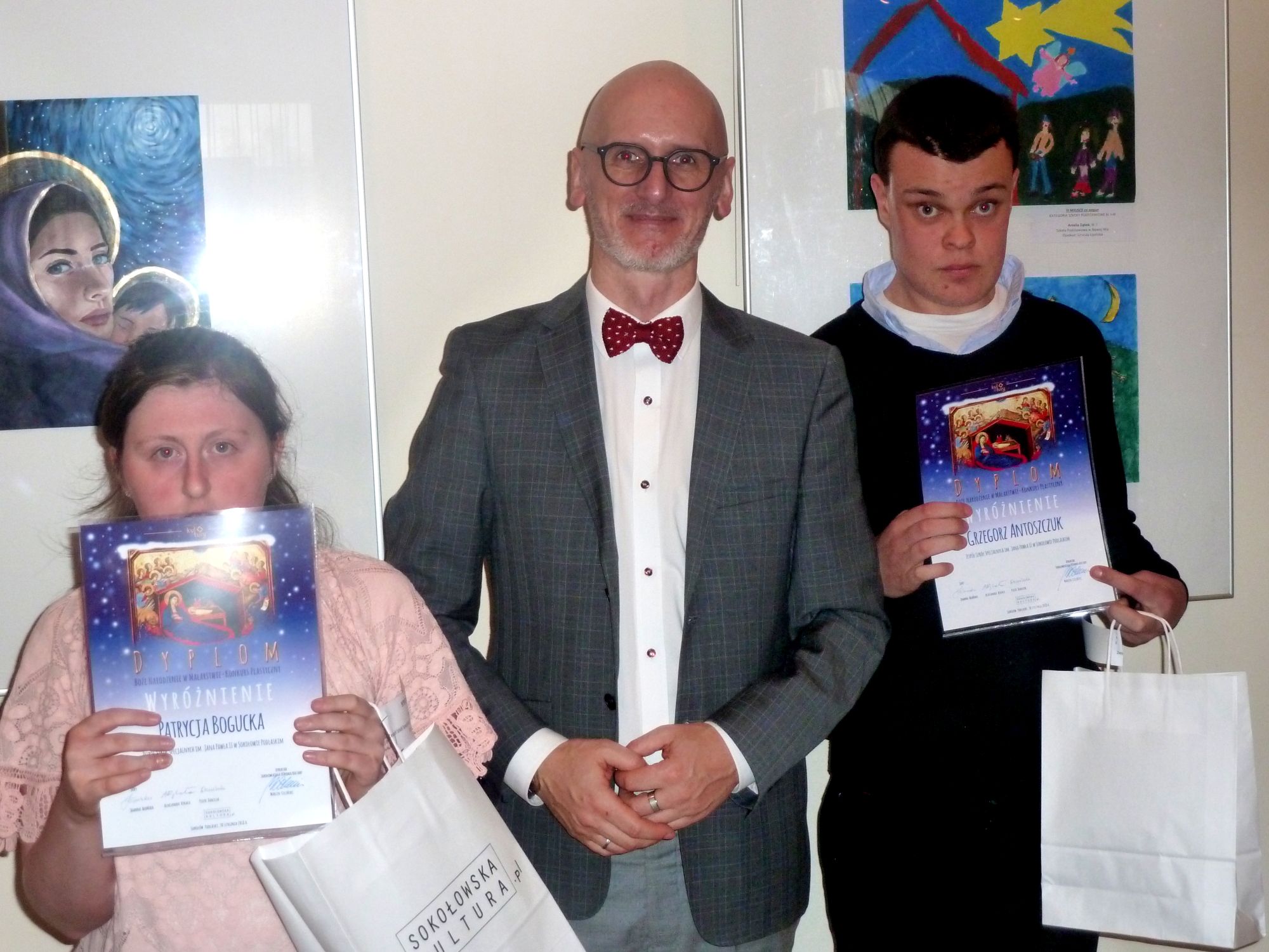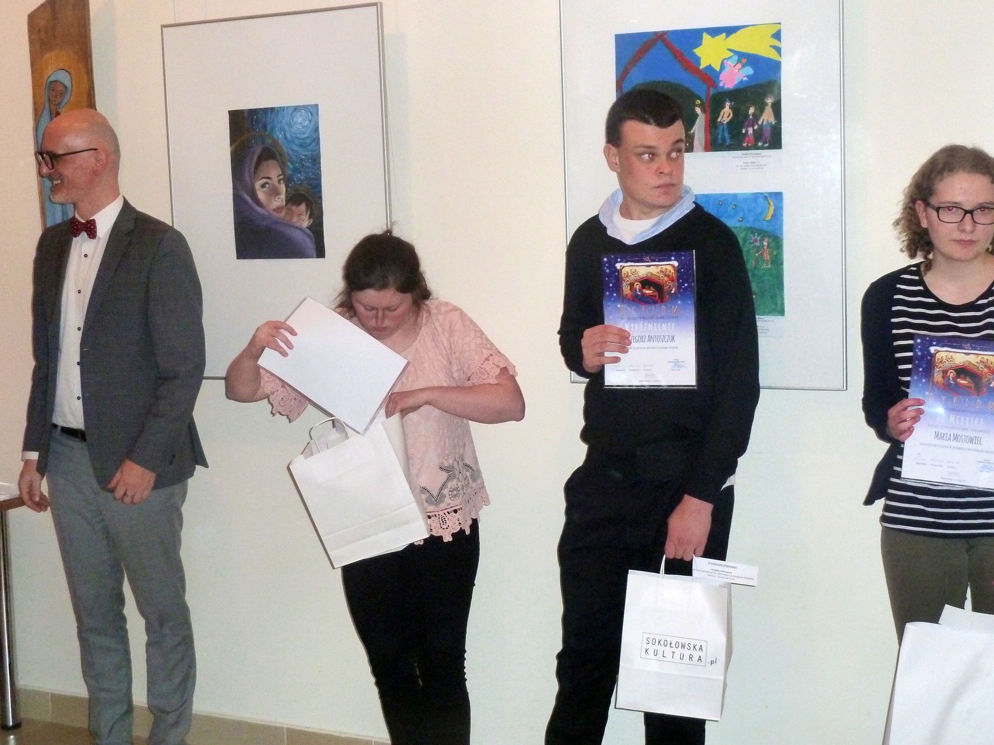 W grudniu 2017r. uczniowei naszej szkoły wzięli udział w konkursie plastycznym „Boże Narodzenie w malarstwie” zorganizowanym przez Sokołowski Ośrodek Kultury. We wtorek 30 stycznia 2018r. odbyło się uroczyste podsumowanie konkursu, w którym nasi uczniowie: Patrycja Bogucka i Grzegorz Antoszczuk zdobyli wyróżnienia.