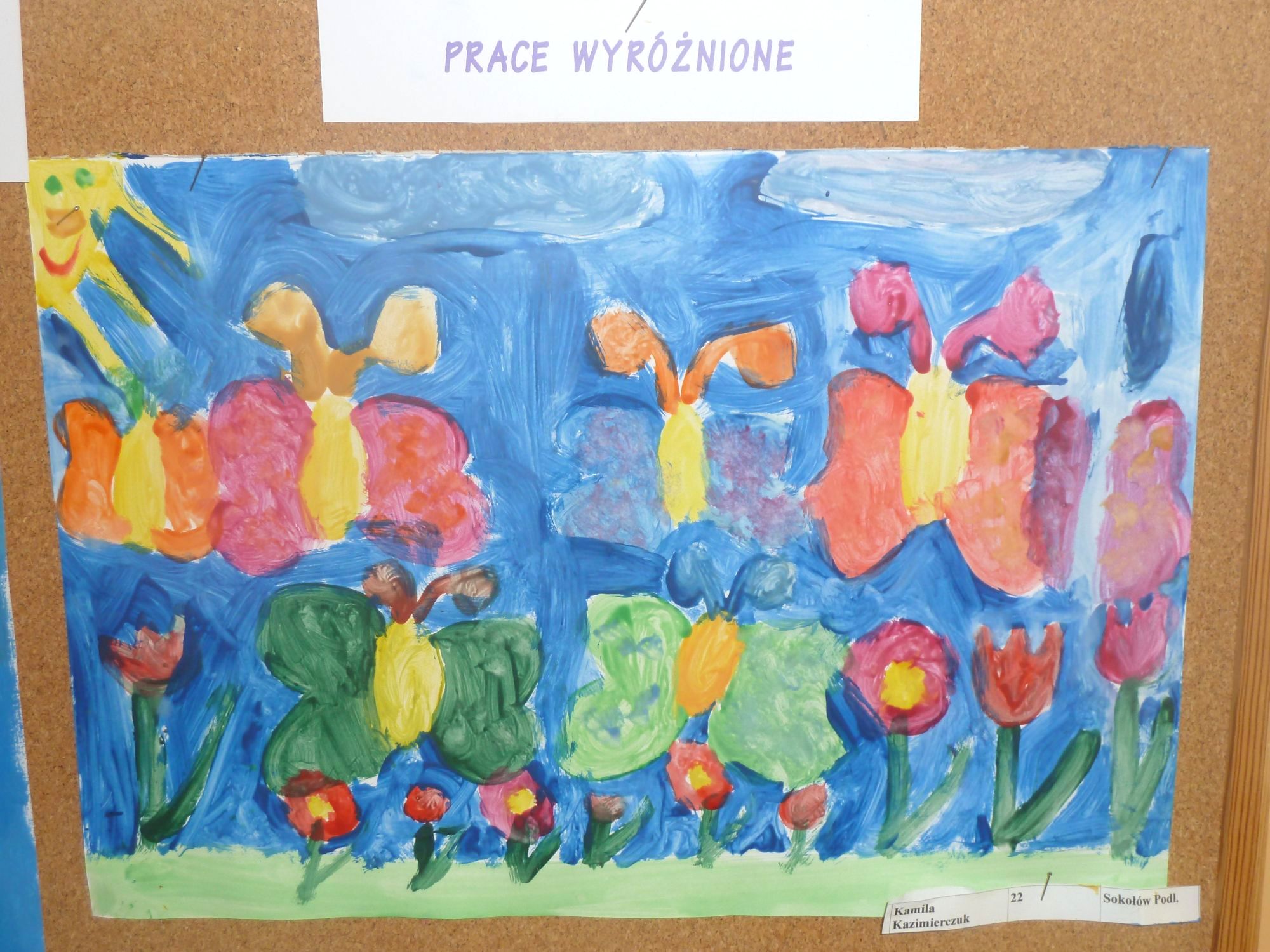 Uczniowie wykonywali prace podczas konkursu związane z majówką w szerokim pojęciu tego słowa, gdzie tematem przewodnim był motyl.