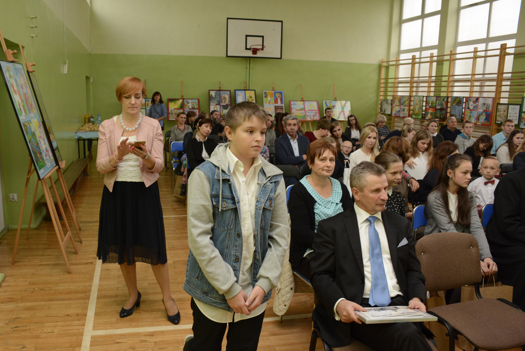 Społeczność szkolna przygotowała krótką część artystyczną, po której wręczono biorącym udział dyplomy, upominki i nagrody.