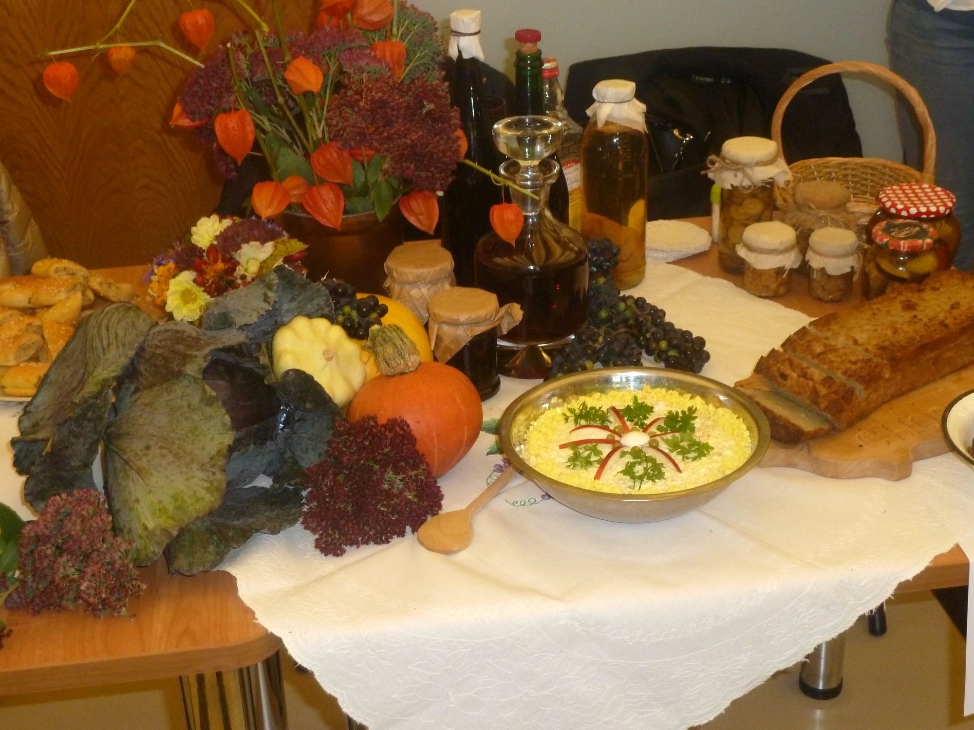 Na naszym stoisku zostały zaprezentowane potrawy jesienne – pierogi z ziemniakami i boczkiem, sałatka jarzynowa, grzybki marynowane, paszteciki z kapustą i grzybami, blaszak z ziemniaków oraz ciasto drożdżowe. Nasze smaki cieszyły się ogromnym zainteresowaniem wśród zgromadzonej społeczności. Jedna z potraw, pierogi z ziemniakami i boczkiem, została wyeksponowana i nagrodzona.