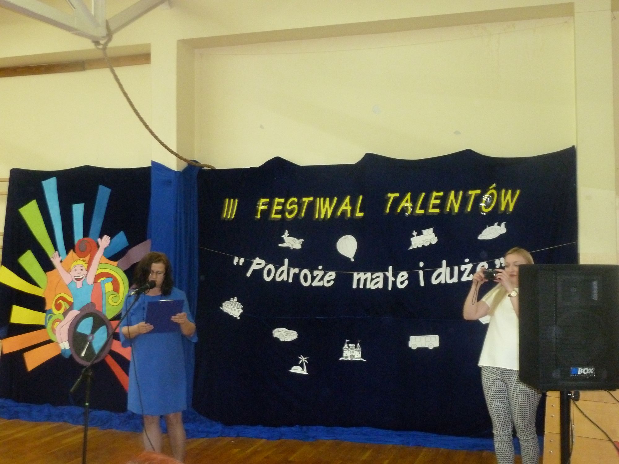 Dnia 11 maja 2017 r. uczniowie naszej szkoły wzięli udział w III edycji FESTIWALU TALENTÓW zorganizowanym przez Specjalny Ośrodek Szkolno- Wychowawczy w Międzyrzecu Podlaskim. Prace plastyczne pod hasłem „Podróże małe i duże” były wykonywane na miejscu farbami plakatowymi.