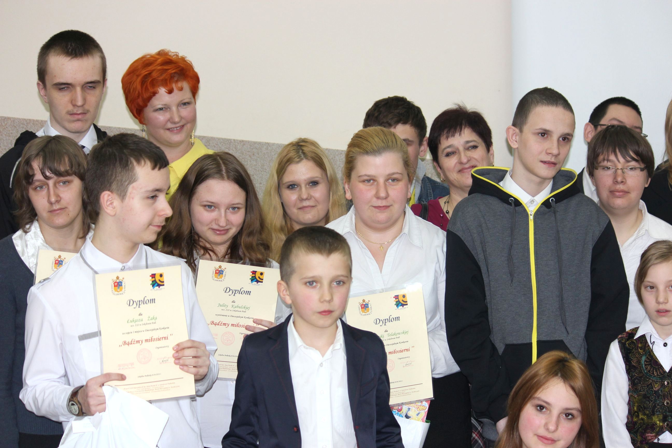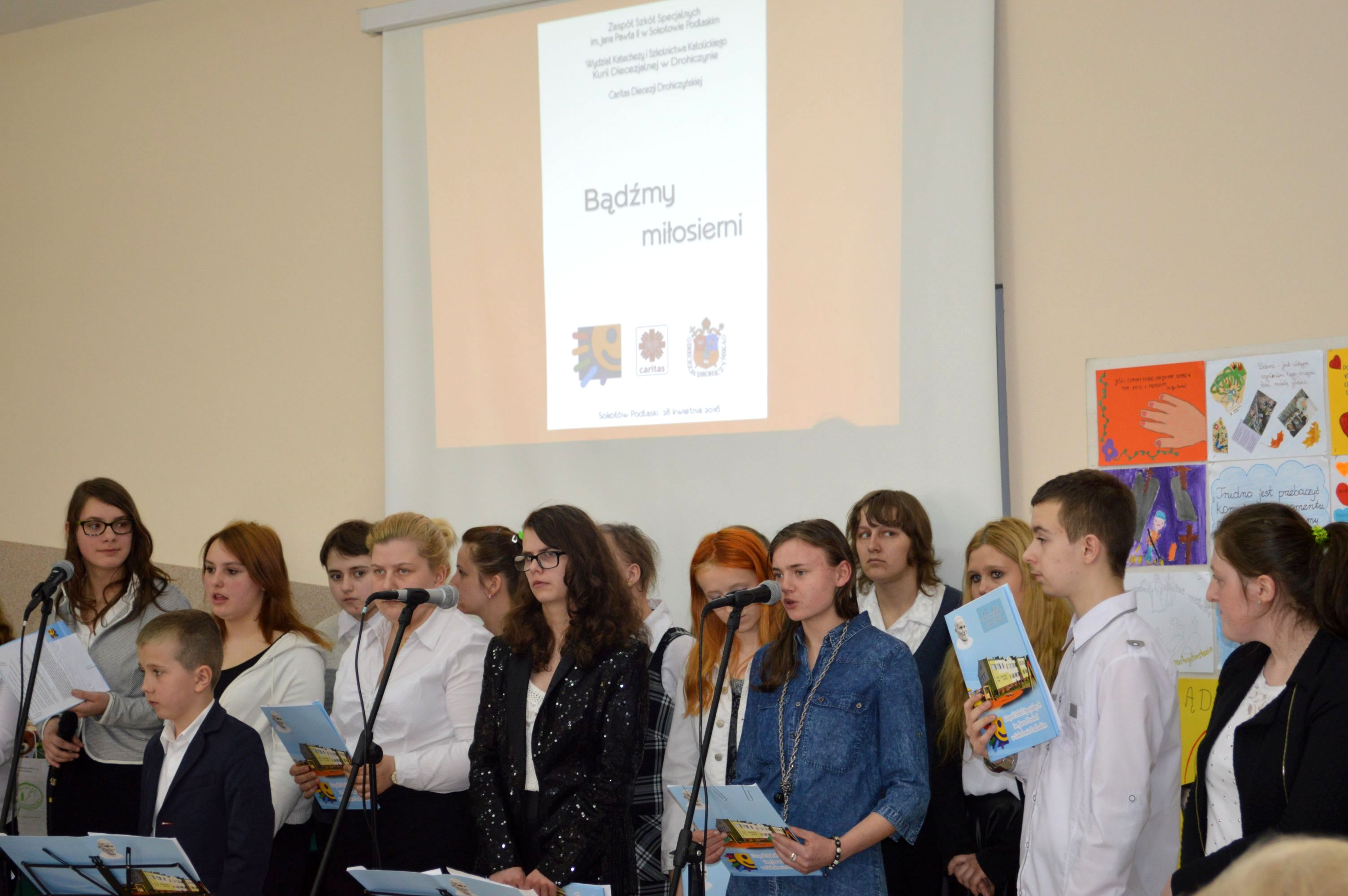 28 kwietnia w Zespole Szkół Specjalnych im. Jana Pawła II w Sokołowie Podlaskim odbyło się podsumowanie III edycji diecezjalnego konkursu dla szkół i ośrodków specjalnych z diecezji drohiczyńskiej województwa mazowieckiego, podlaskiego i lubelskiego pt. „Bądźmy miłosierni”. Honorowy patronat nad konkursem objął J.E. Ks. Biskup Tadeusz Pikus, Senator RP Waldemar Kraska, Starosta Powiatu Sokołowskiego Leszek Iwaniuk, Mazowiecki i Podlaski Kurator Oświaty, Instytut Teologii Pastoralnej i Katechetyki Katolickiego Uniwersytetu Lubelskiego im. Jana Pawła II, Parafia Św. Jana Bosko. Organizatorami konkursu byli: Zespół Szkół Specjalnych im. Jana Pawła II, Wydział Katechezy i Szkolnictwa Katolickiego Kurii Diecezjalnej w Drohiczynie, Caritas Diecezji Drohiczyńskiej. W konkursie wzięło udział 89 uczniów z 10 placówek. Celem konkursu było kształtowanie wśród uczniów postawy miłosierdzia okazywanego drugiemu człowiekowi, uwrażliwienie na troskę o drugiego człowieka oraz integracja rodzin wychowujących dzieci niepełnosprawne. Spośród uczestników, którzy nadesłali prace, wyłoniono 32 laureatów w trzech kategoriach. Szkoła przygotowała dla laureatów krótką część artystyczną, po której wręczono dyplomy za udział, upominki i nagrody.