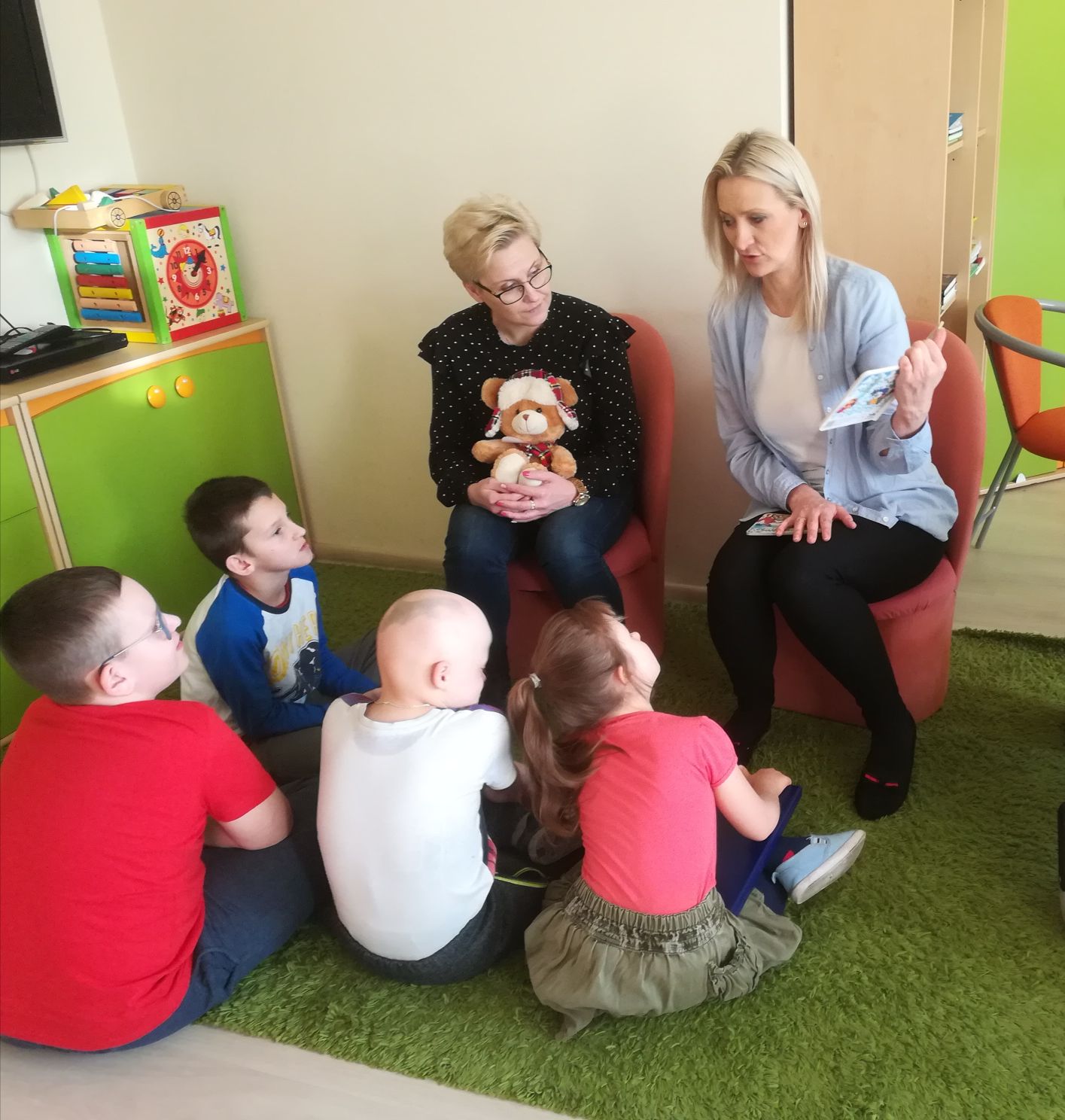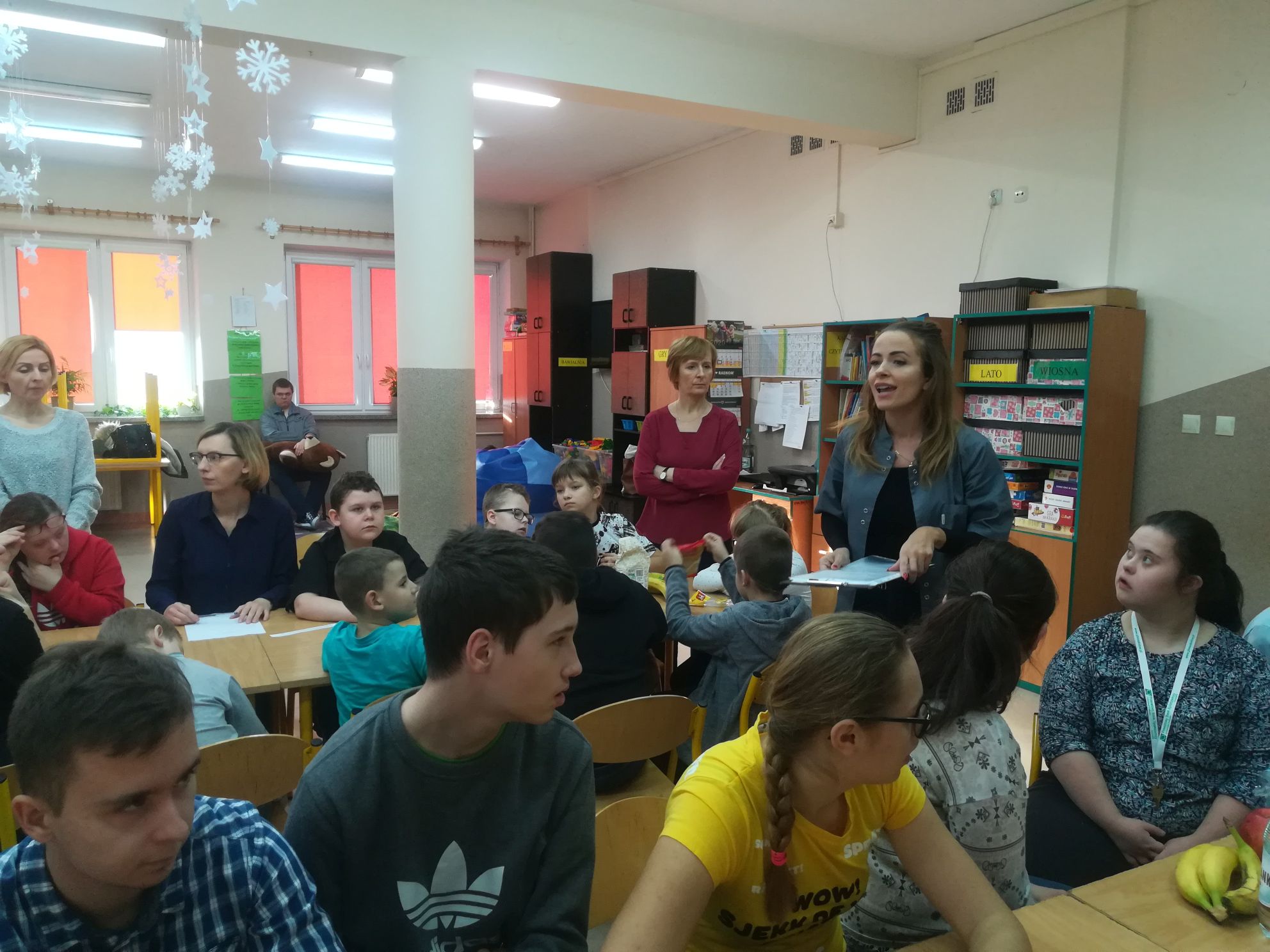 Na świetlicy, artystów powitała Dyrektor Szkoły , Pani Beata Biernat, nawiązując do wieloletniej współpracy i bezcennej integracji obu placówek.