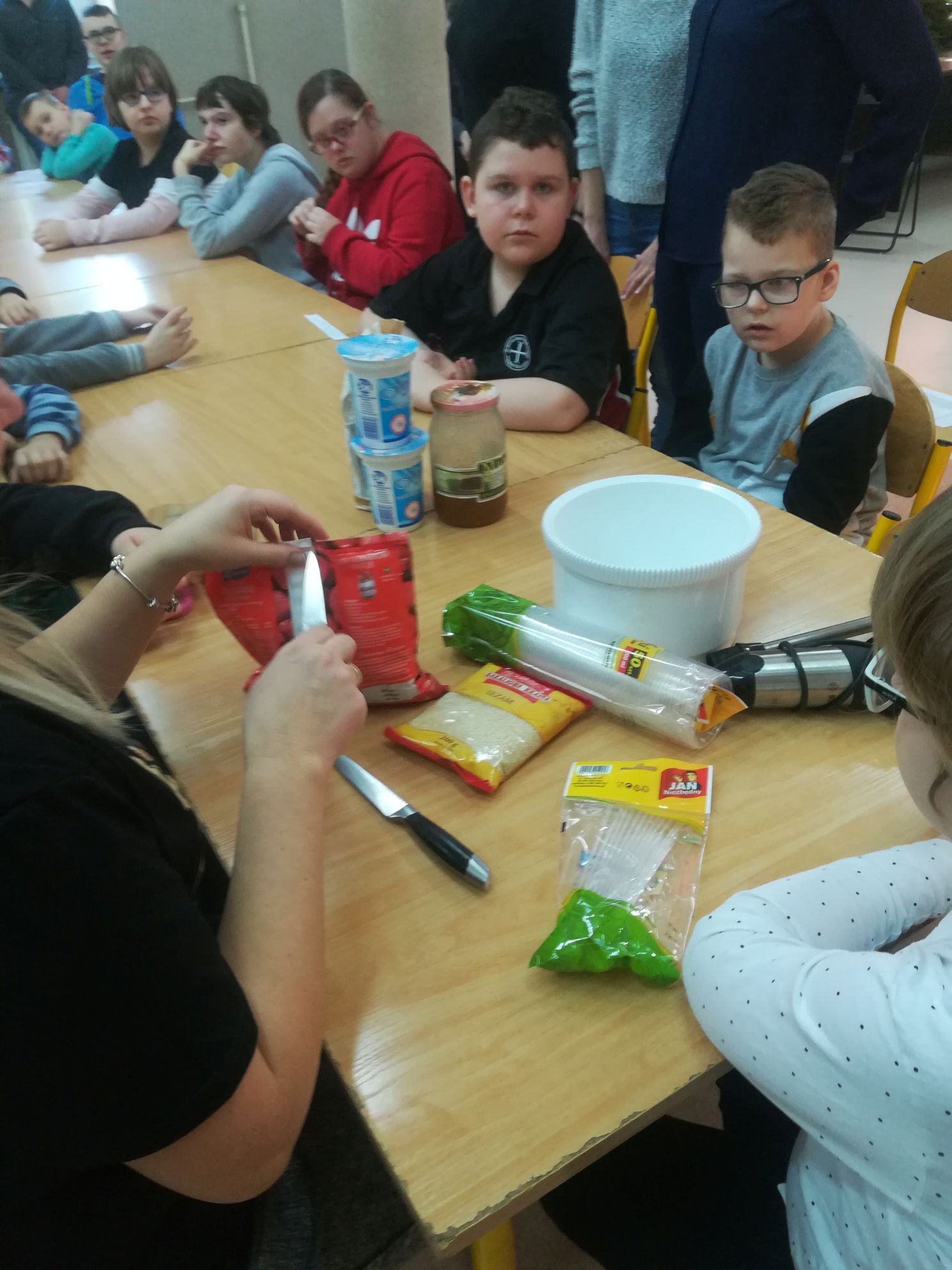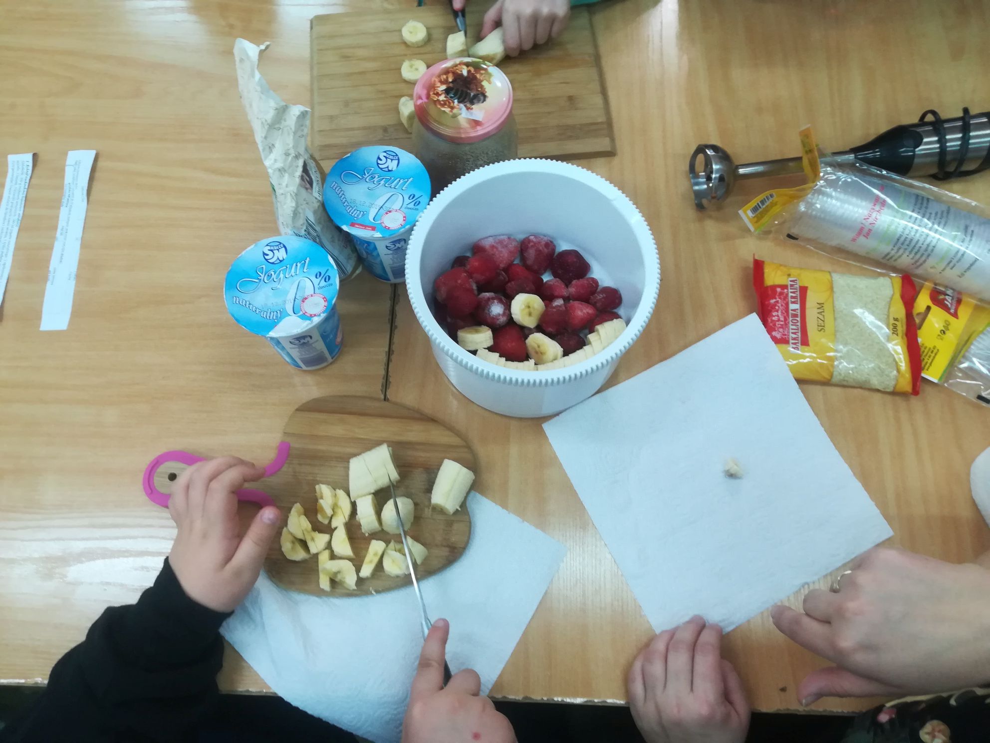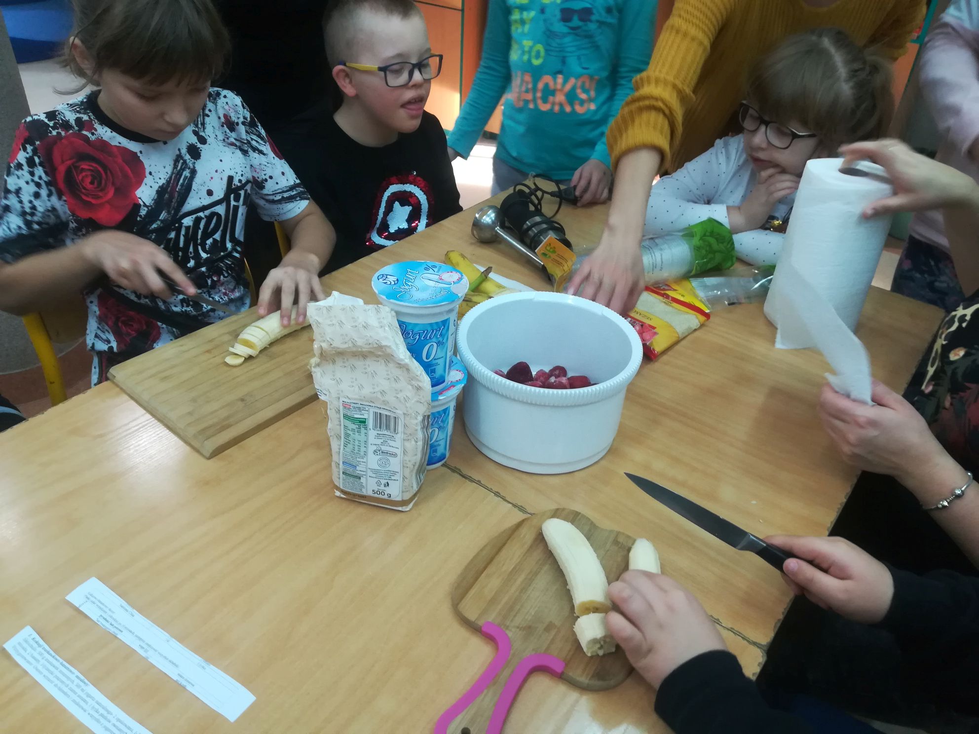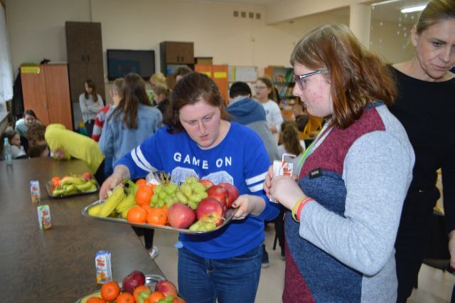 17 grudnia 2019 r. w naszej szkole odbyło się spotkanie z dietetykiem, Panią Pauliną Wałachowską – Steć. Pani dietetyk rozpoczęła spotkanie od zapoznania uczniów z zagadnieniami zdrowego odżywiania. Następnie odbyły się zajęcia warsztatowe, na których uczniowie, pod czujnym okiem Pani dietetyk oraz nauczycieli, przygotowywali dwa rodzaje koktajli. Smaczne i zdrowe napoje powstawały z owoców, warzyw i nasion. Oczekiwanym efektem spotkania była wspólna degustacja kolorowych koktajli, które wszystkim bardzo smakowały. Jesteśmy przekonani, że wiedza i umiejętności nabyte podczas spotkania będą wykorzystywane do samodzielnego przygotowywania zdrowych i smacznych koktajli w domu i szkole.
