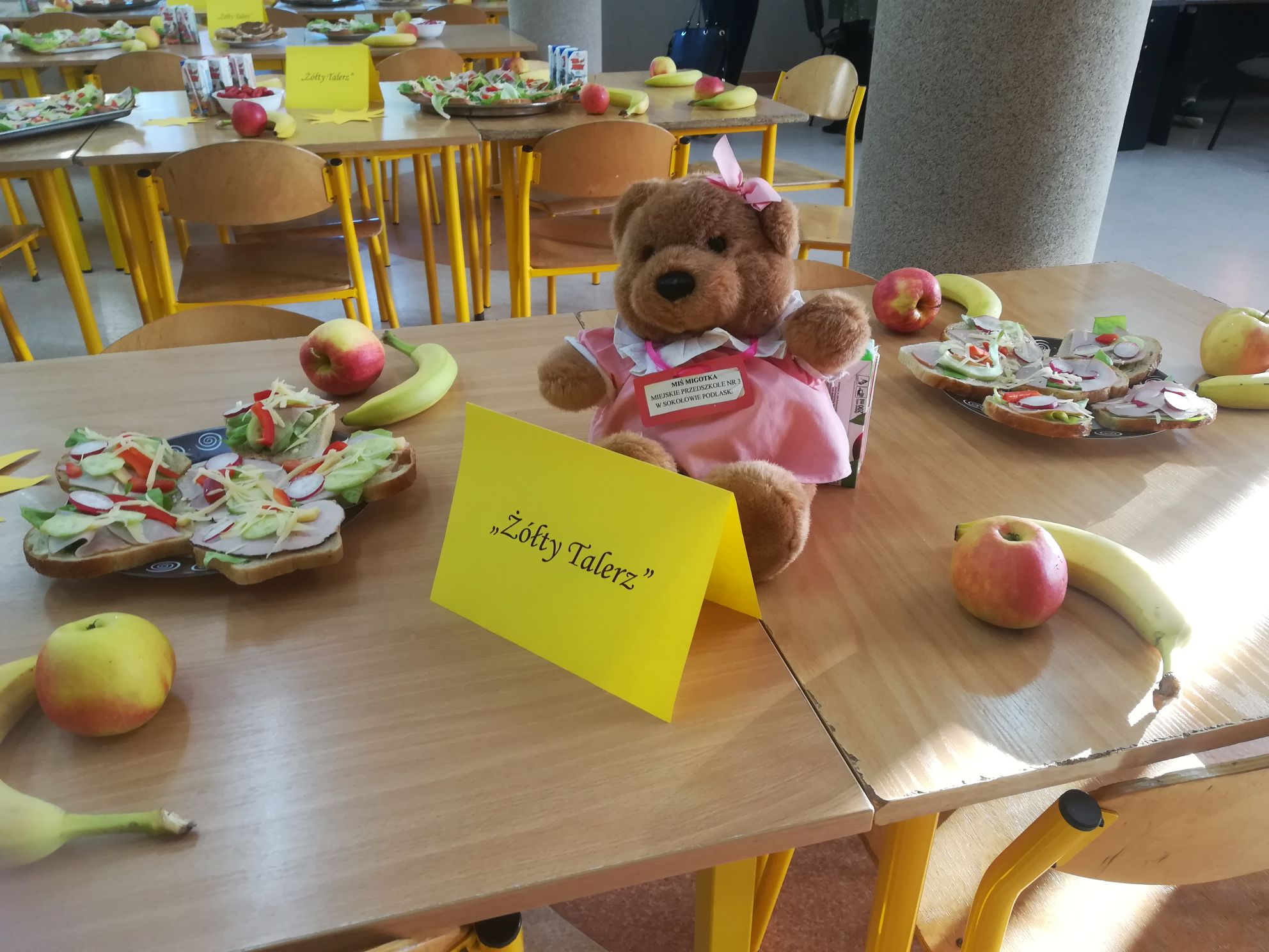 W piątek, 8 listopada, w naszej szkole odbył się spektakl promujący zdrowe śniadanie. Uczniowie Zespołu Szkół Nr 1 im. K.K. Baczyńskiego w swoim występie zwrócili uwagę na ważną rolę zdrowego odżywiania i na aktywność fizyczną w życiu młodych ludzi. Podsumowaniem spotkania było otrzymanie przez wszystkich uczniów naszej szkoły zdrowych, pełnowartościowych produktów, które powinny znaleźć się w codziennym jadłospisie. Produkty do zdrowego śniadania zostały zakupione z Programu „Żółty Talerz”. Promocję zdrowego odżywiania przygotowała Pani pielęgniarka szkolna Eliza Specjalska oraz Pani Małgorzata Dąbrowiecka.