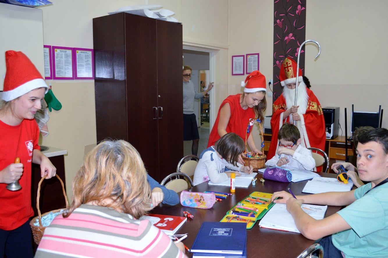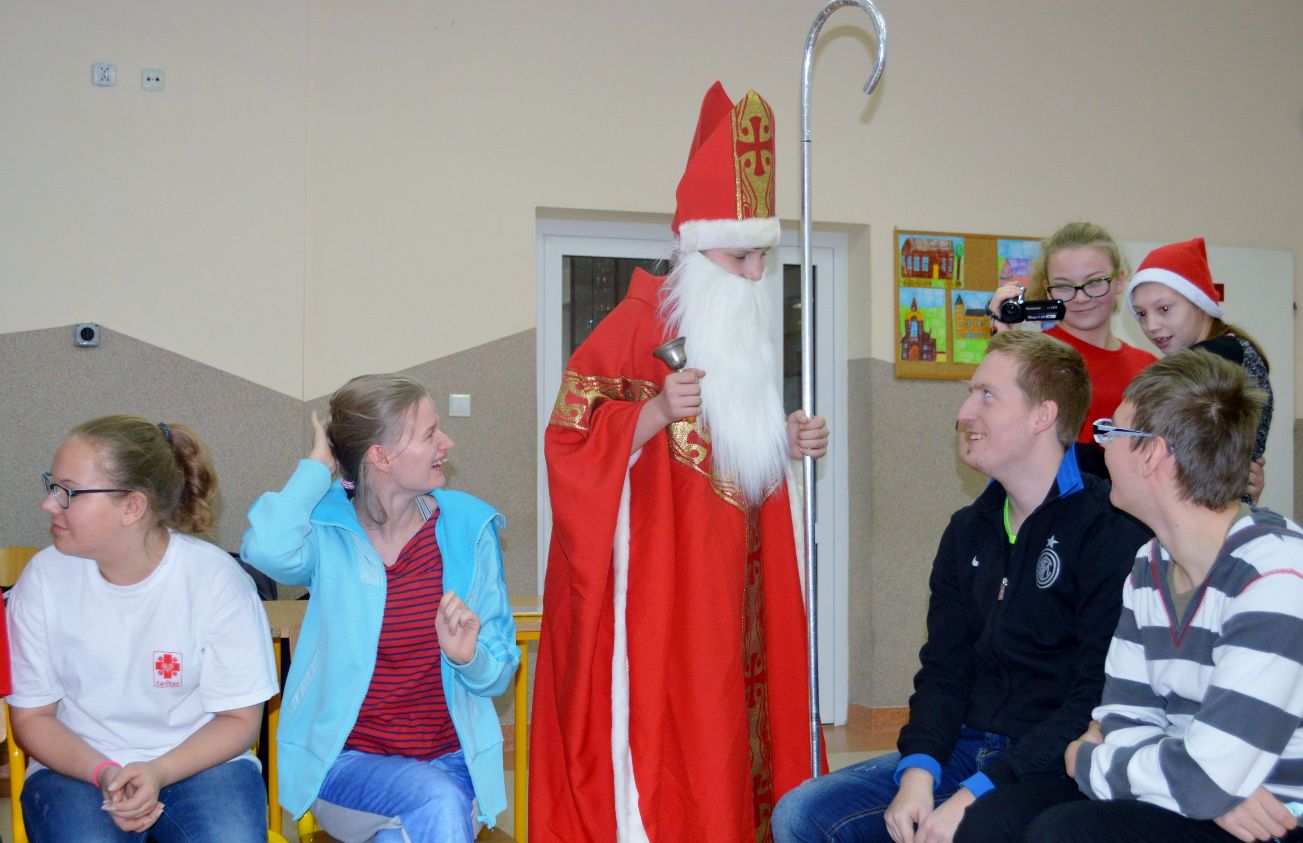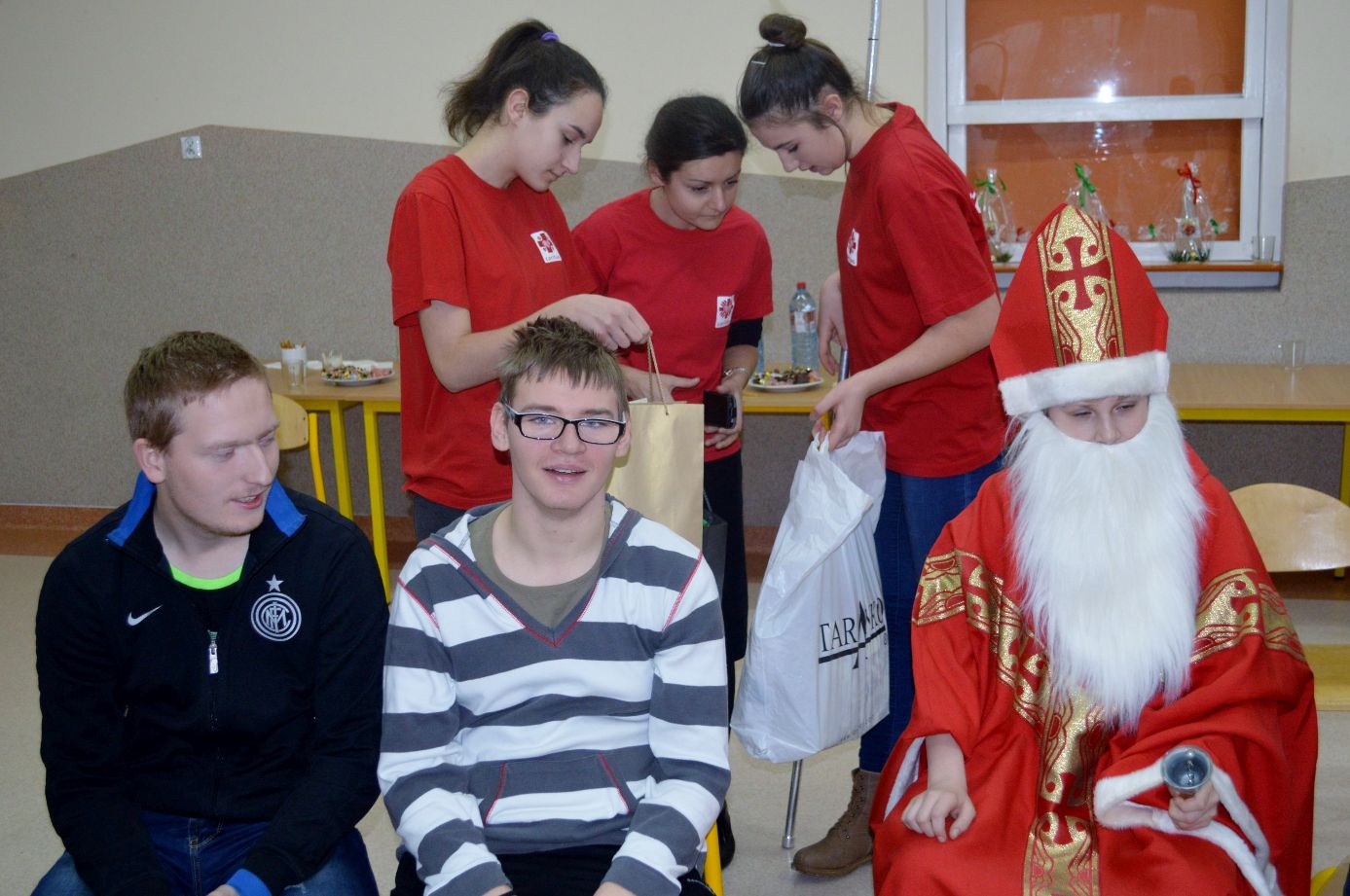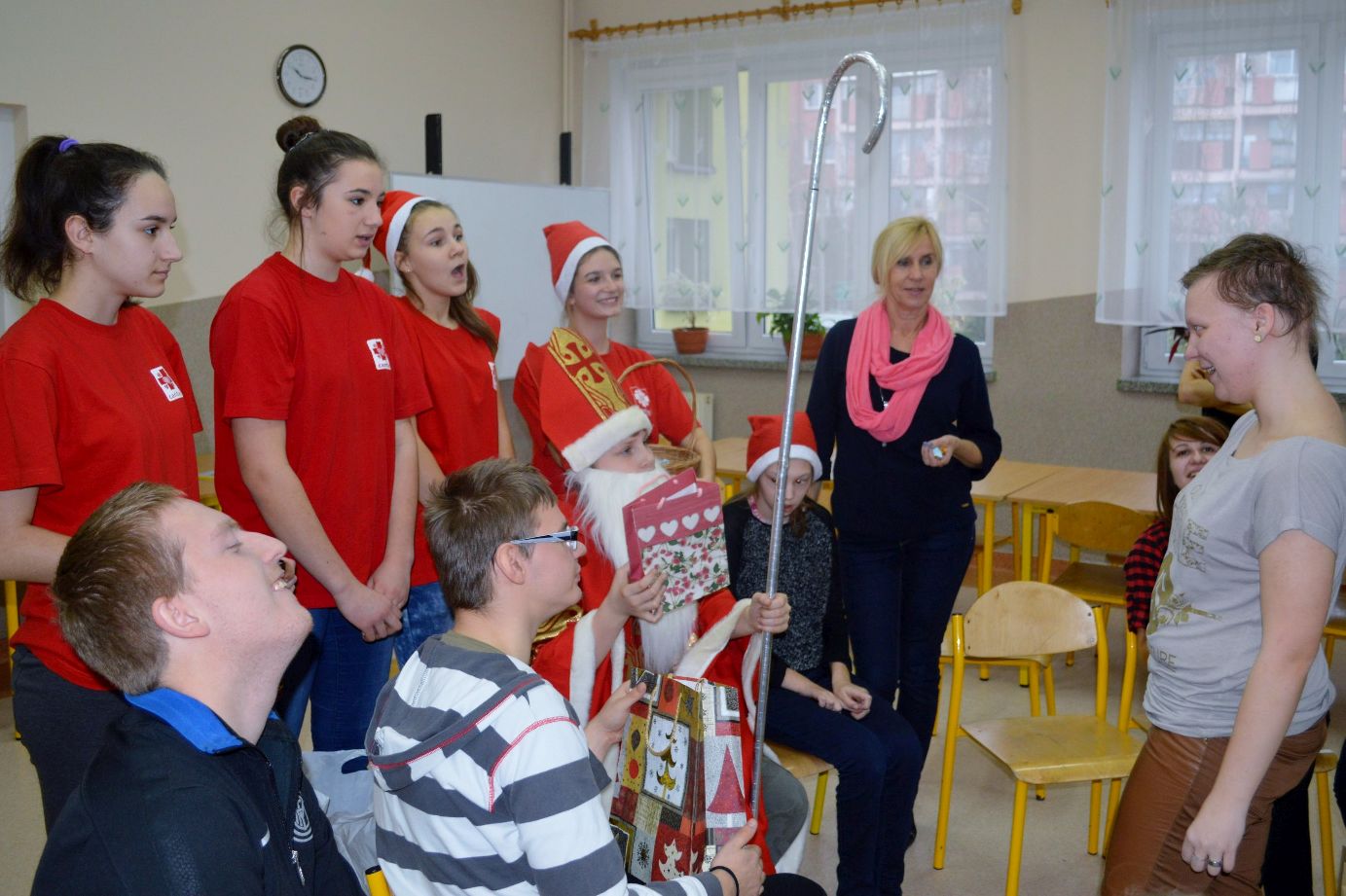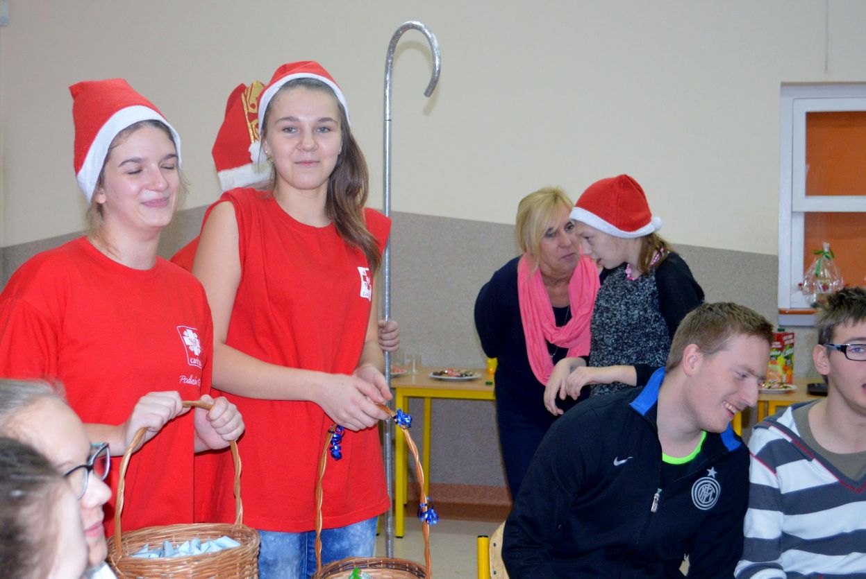 W środę, 9 grudnia 2015r., w naszej szkole odbyło się mikołajkowe spotkanie integracyjne. Uczniowie koła „Caritas” działającego w Gimnazjum Nr 2 przygotowali dla uczniów naszej szkoły mikołajkowe niespodzianki. Wszyscy spędzili miło czas na zabawach integracyjnych i śpiewaniu kolęd. Wychowankowie oraz opiekunowie z obu szkół zadeklarowali dalszą współpracę. Dziękujemy naszym Przyjaciołom z koła „Caritas” z Gimnazjum Nr 2 w Sokołowie Podlaskim oraz opiekunom Pani Urszuli Sarneckiej i Pani Barbarze Tokarskiej za przygotowanie spotkania.