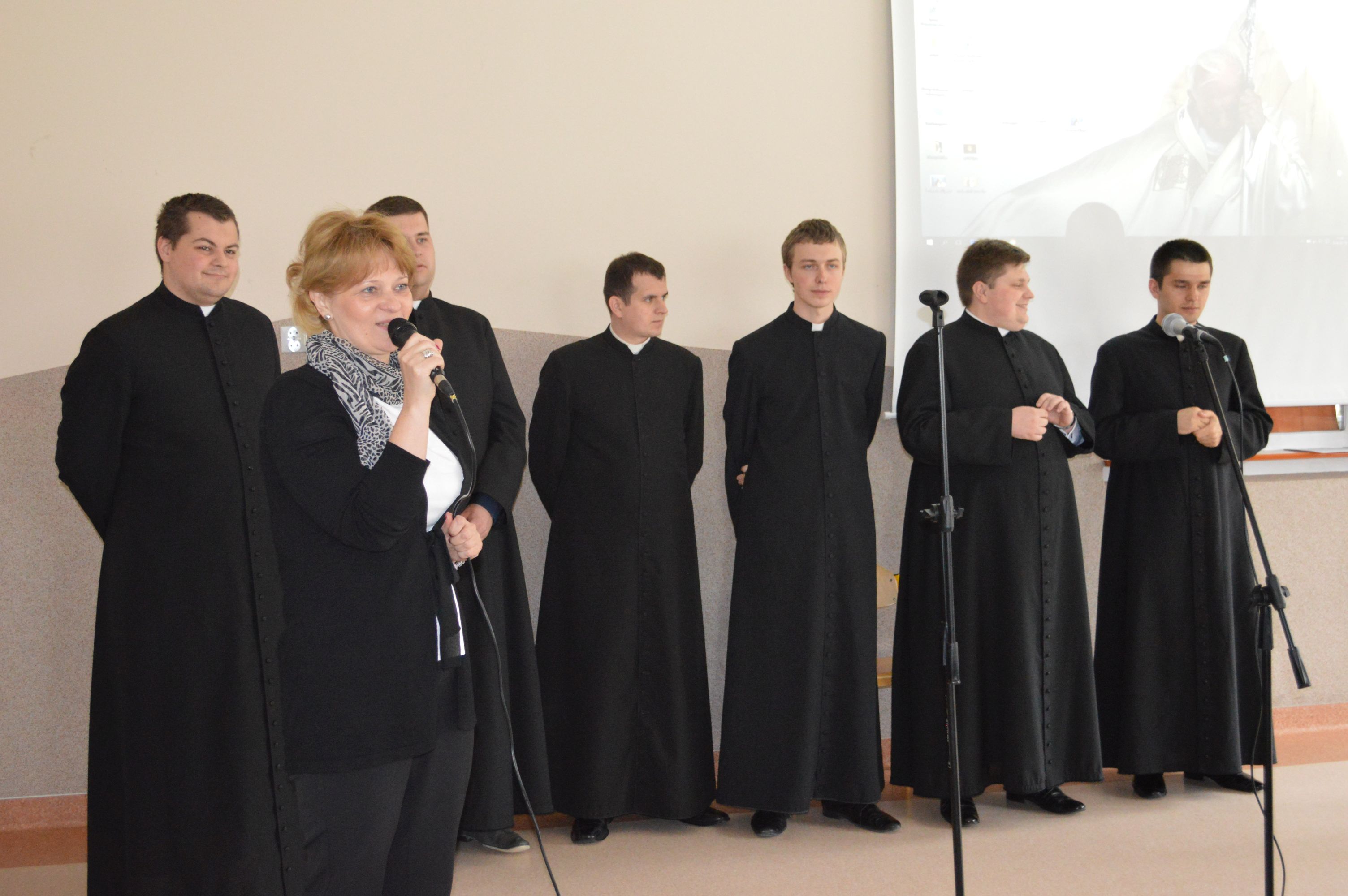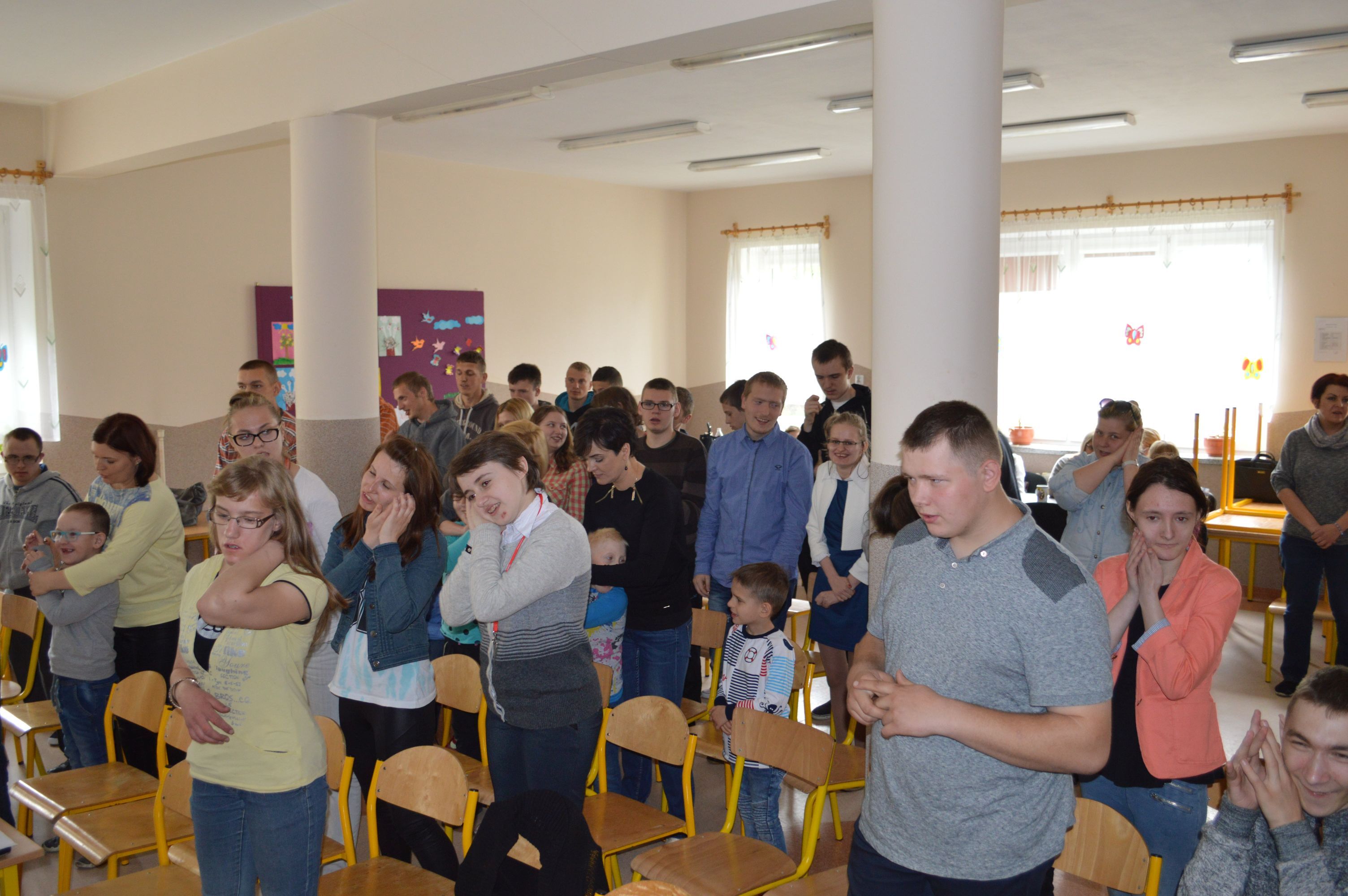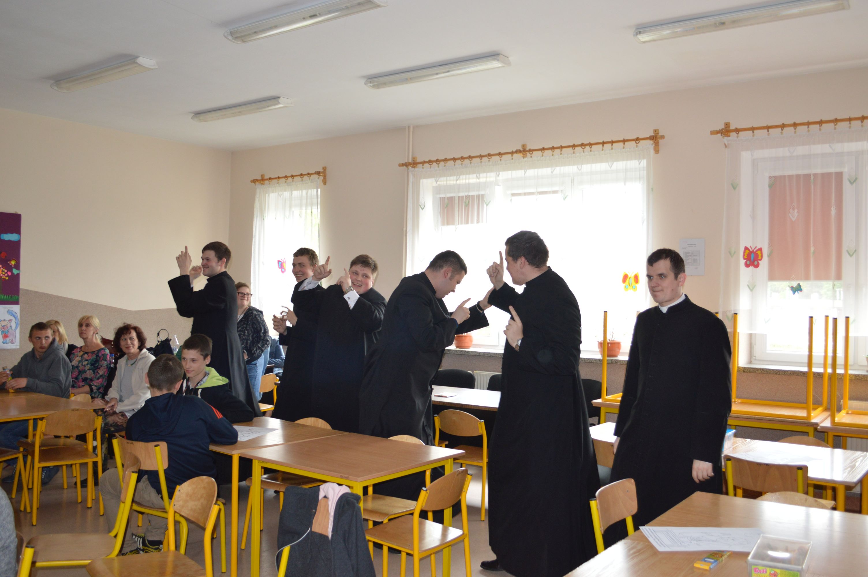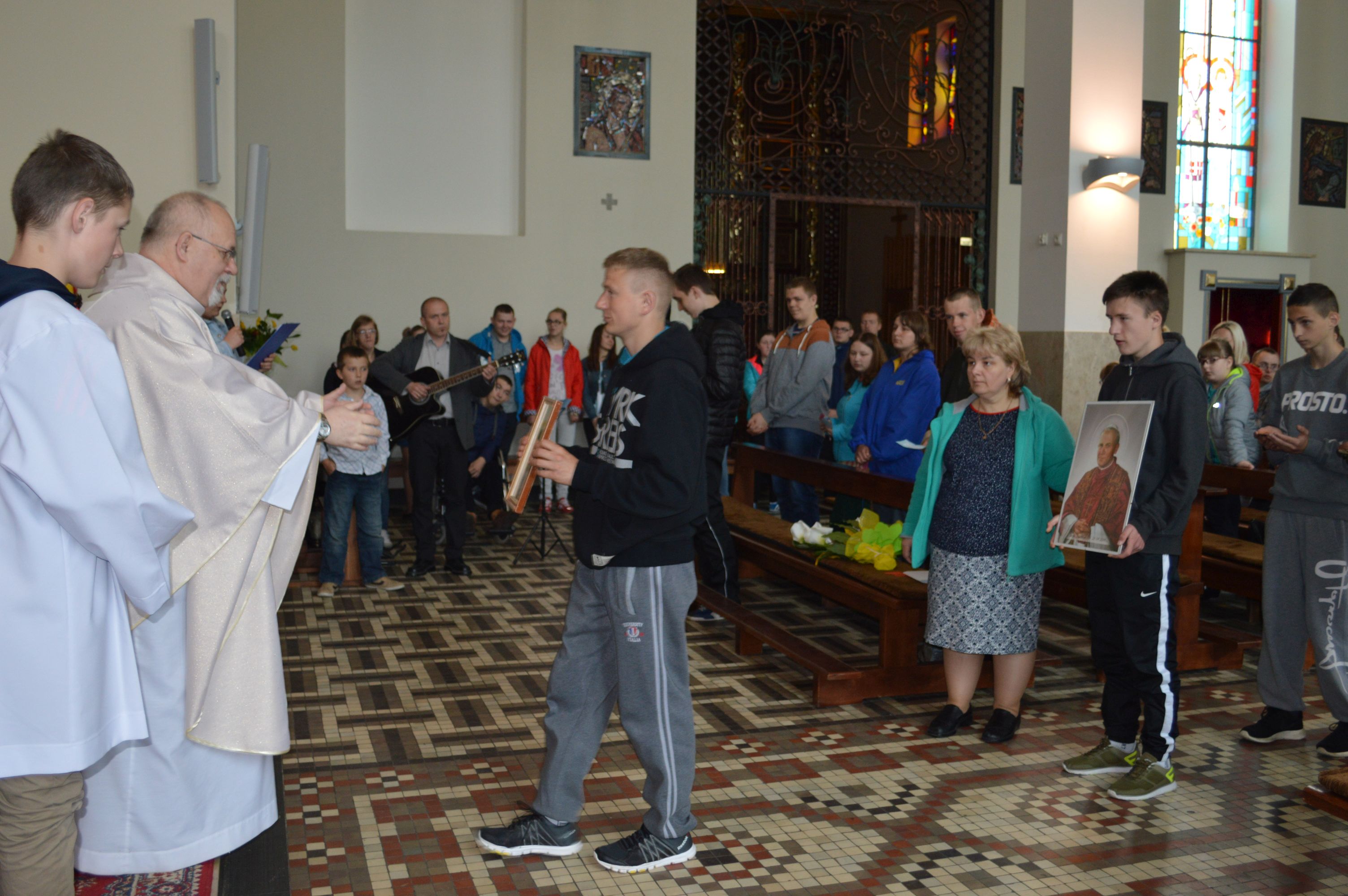 W środę, 18 maja obchodziliśmy uroczyście „Dzień Patrona Szkoły”. W dniu tym cała społeczność szkolna wzięła udział we Mszy Świętej, po której złożyliśmy kwiaty pod pomnikiem Św. Jana Pawła II. Po powrocie do szkoły pozostała część dnia poświęcona była Janowi Pawłowi II, jego życiu, jego naukom i przesłaniu, które nam pozostawił. Gościliśmy siedmiu kleryków z Wyższego Seminarium Duchownego w Drohiczynie. Dziękujemy za przygotowanie i przeprowadzenie pogadanek, konkursów tematycznych związanych z sylwetką naszego patrona.