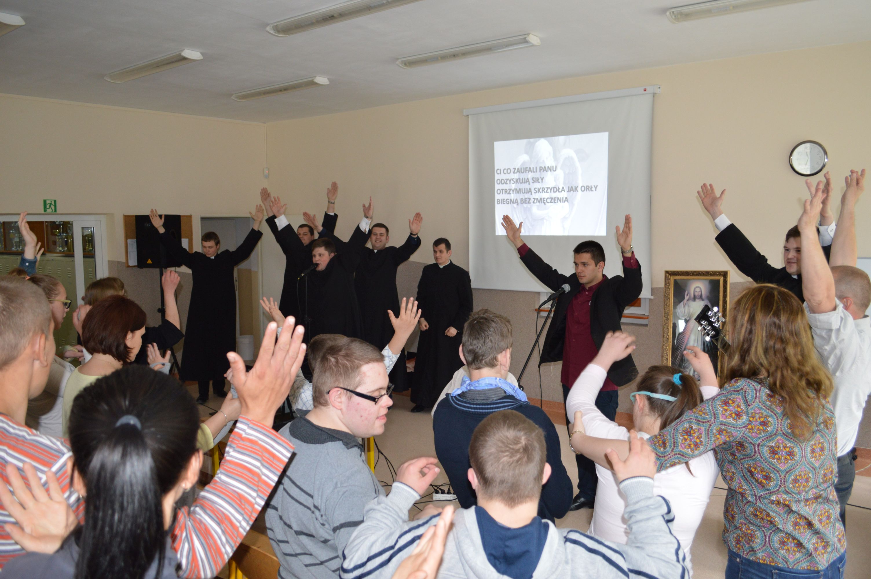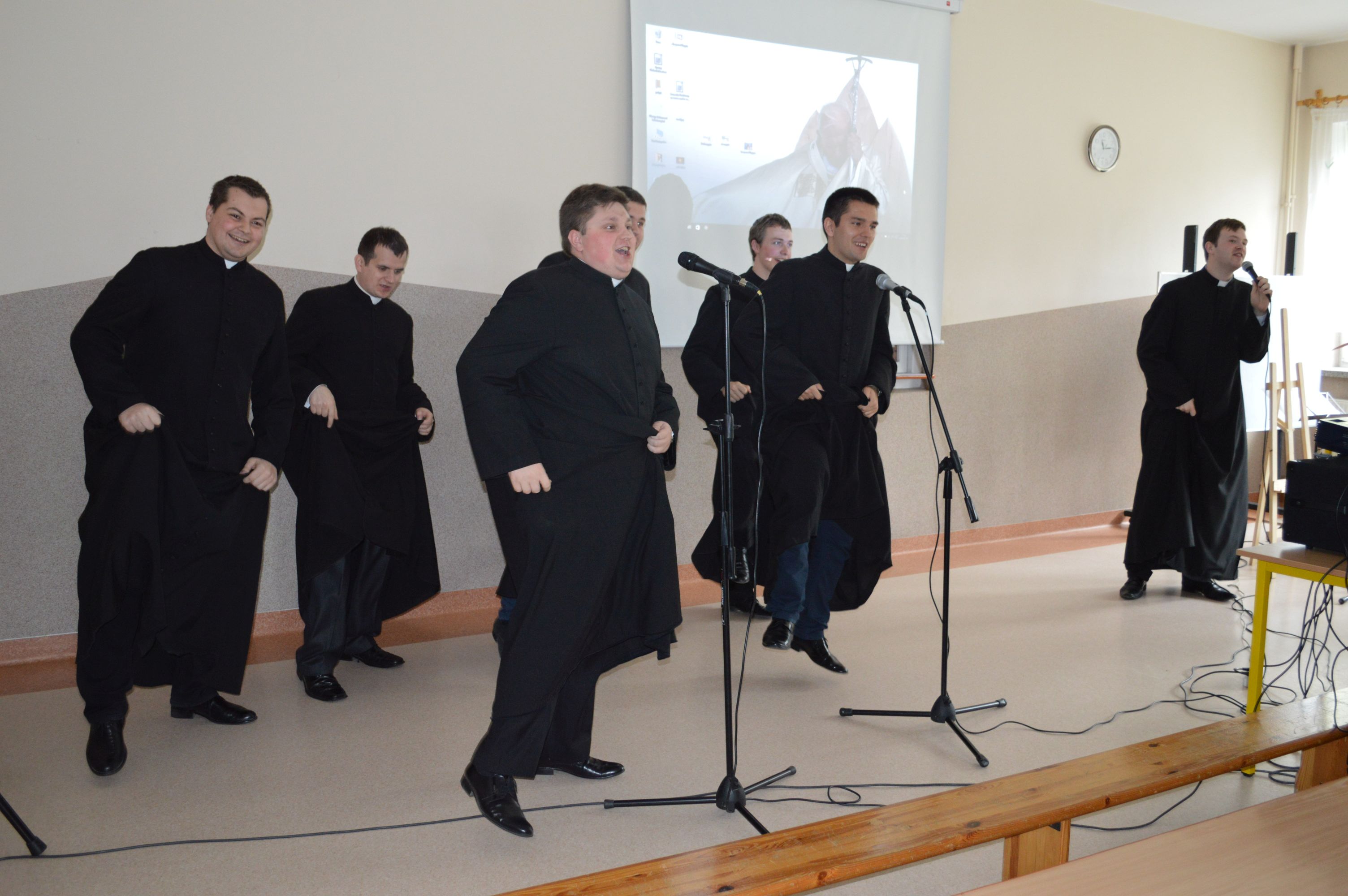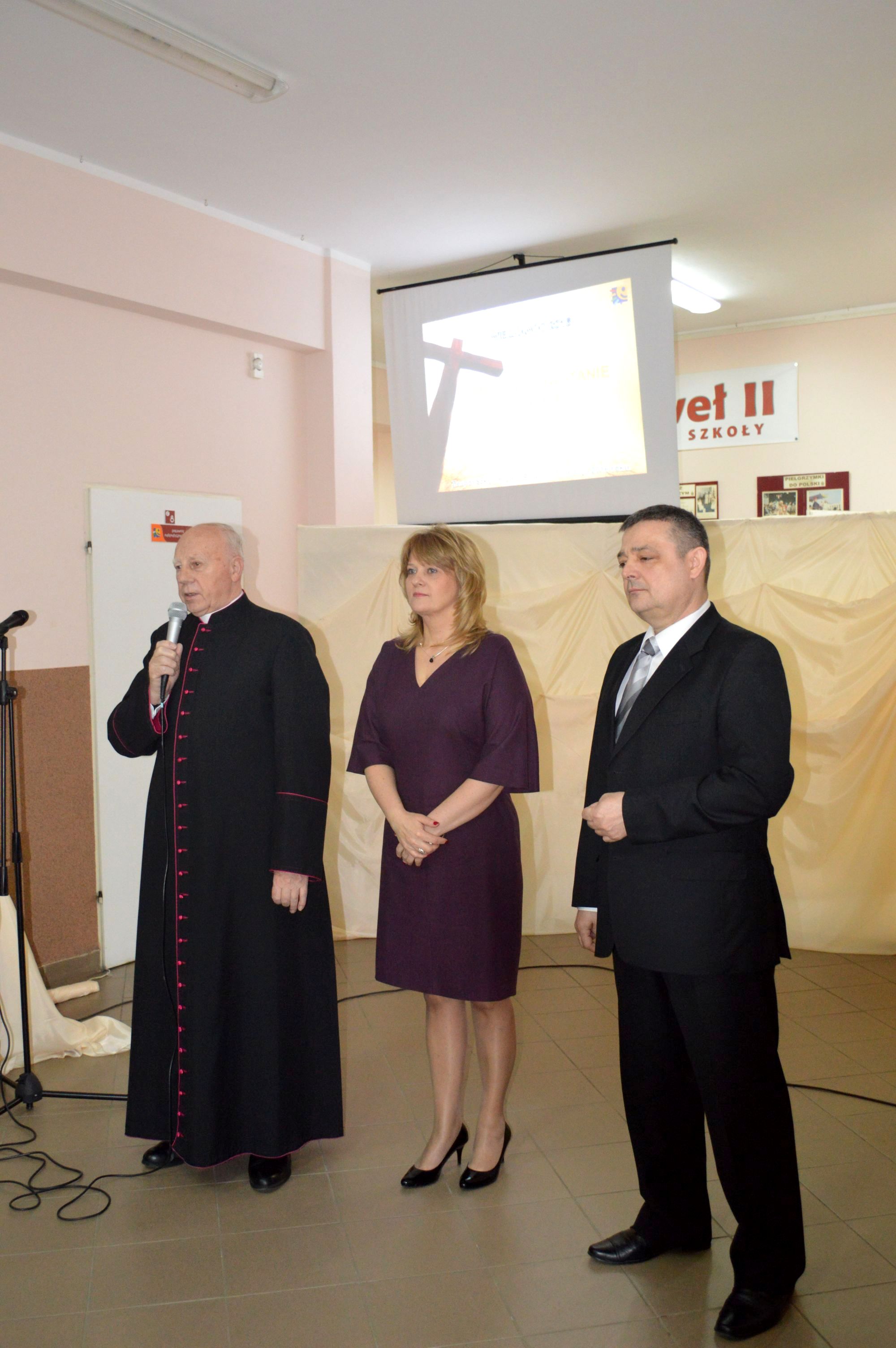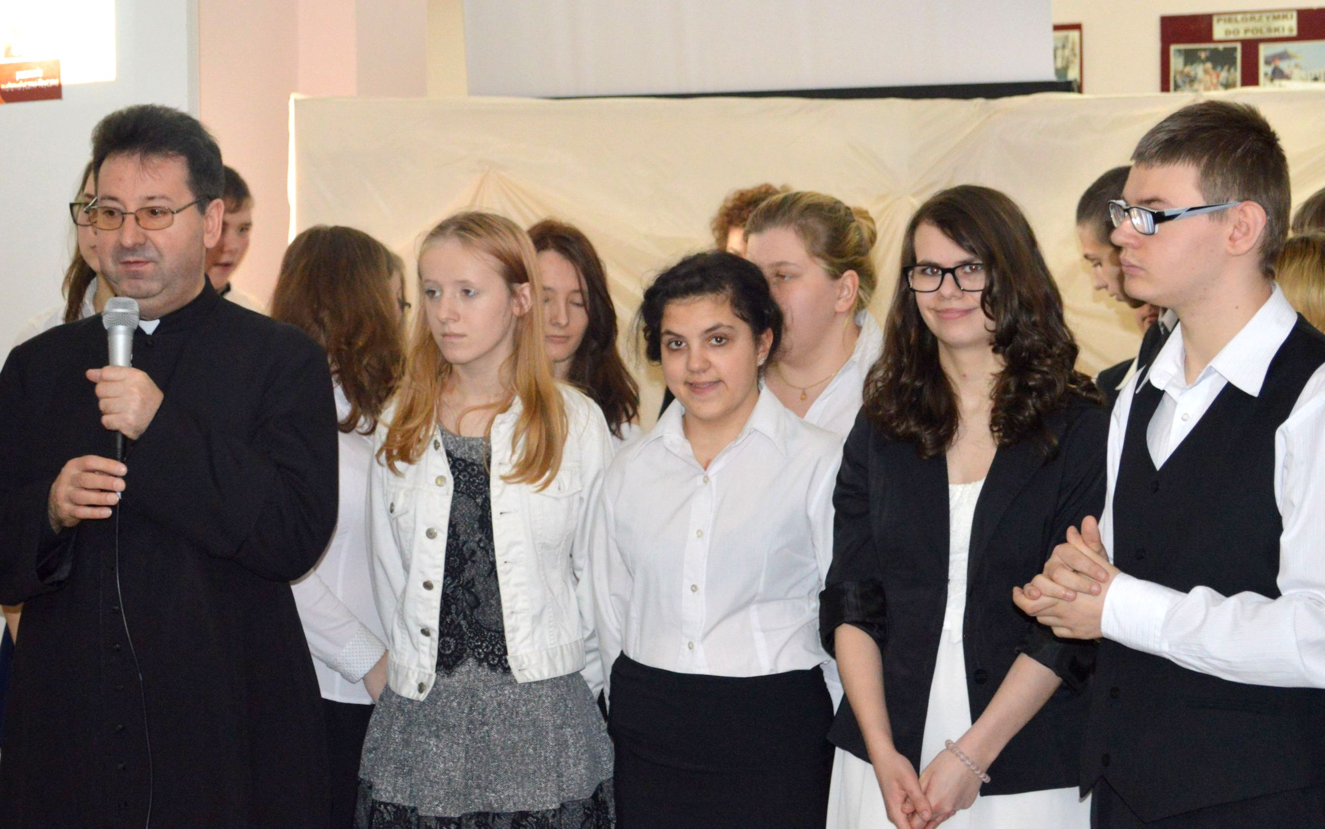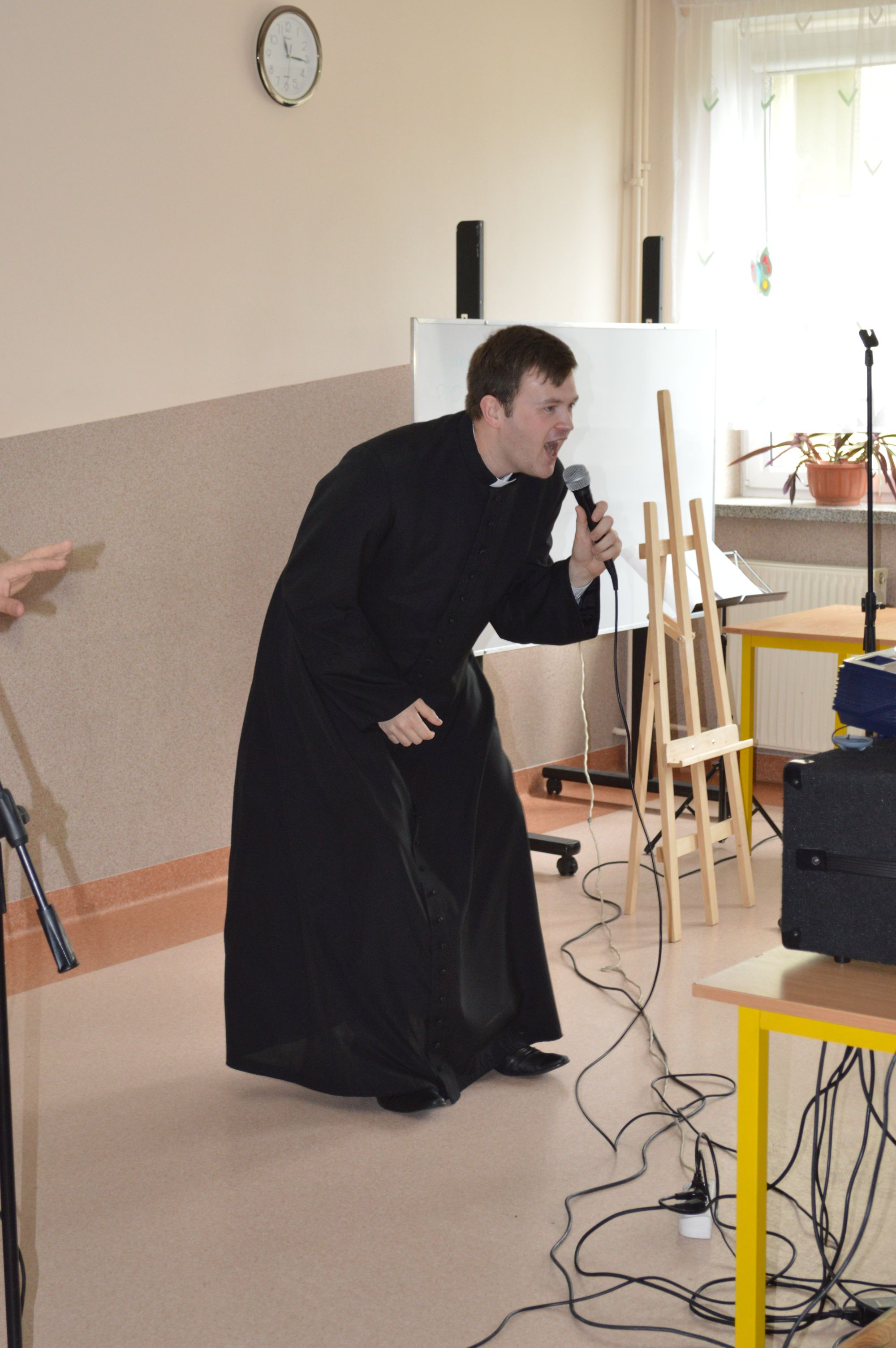 W środę, 18 maja obchodziliśmy uroczyście „Dzień Patrona Szkoły”. W dniu tym cała społeczność szkolna wzięła udział we Mszy Świętej, po której złożyliśmy kwiaty pod pomnikiem Św. Jana Pawła II. Po powrocie do szkoły pozostała część dnia poświęcona była Janowi Pawłowi II, jego życiu, jego naukom i przesłaniu, które nam pozostawił. Gościliśmy siedmiu kleryków z Wyższego Seminarium Duchownego w Drohiczynie. Dziękujemy za przygotowanie i przeprowadzenie pogadanek, konkursów tematycznych związanych z sylwetką naszego patrona.