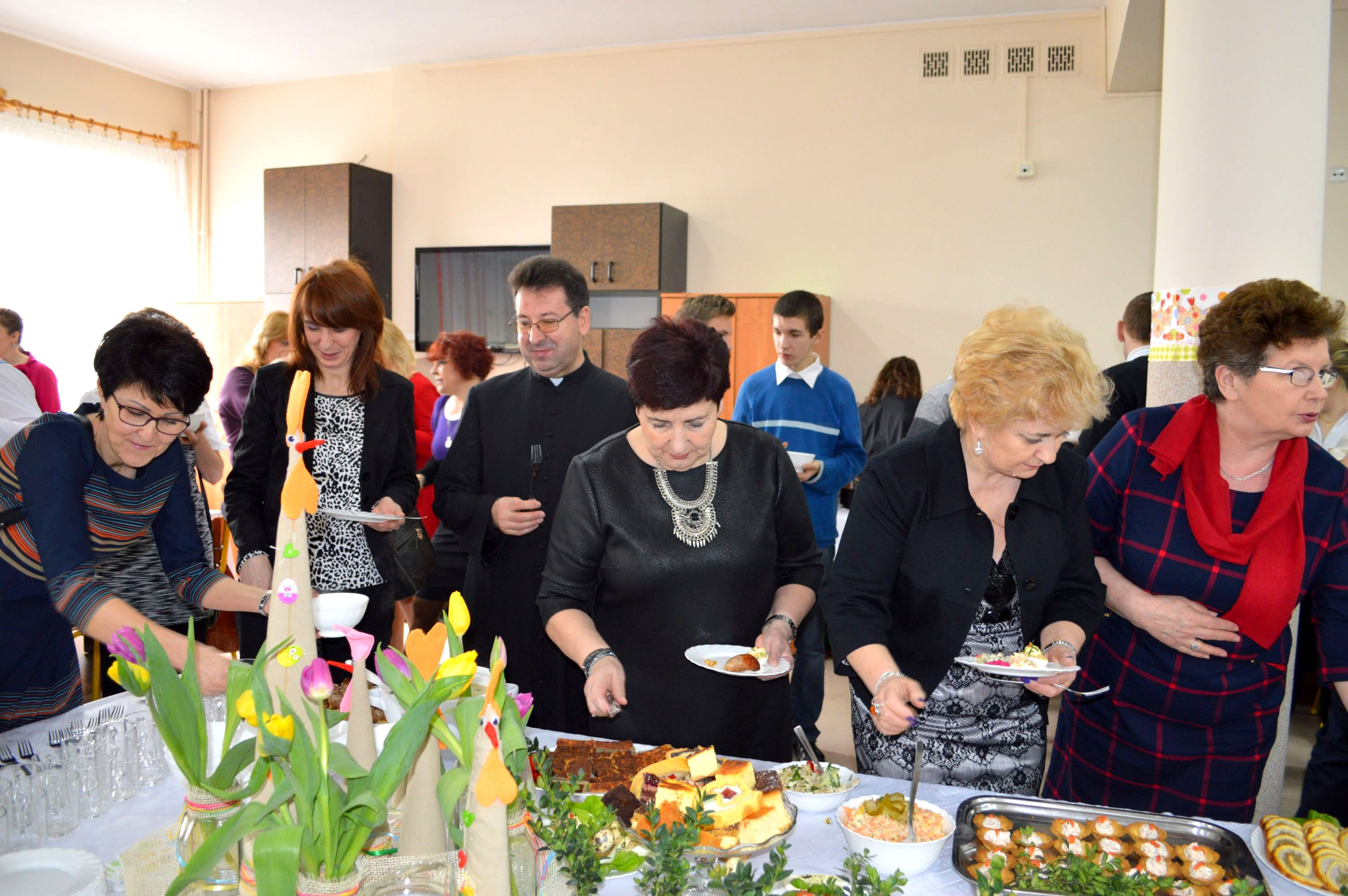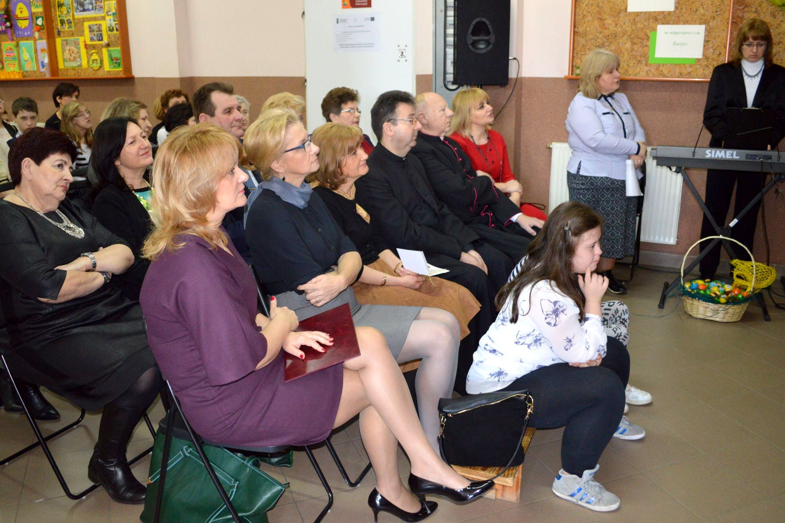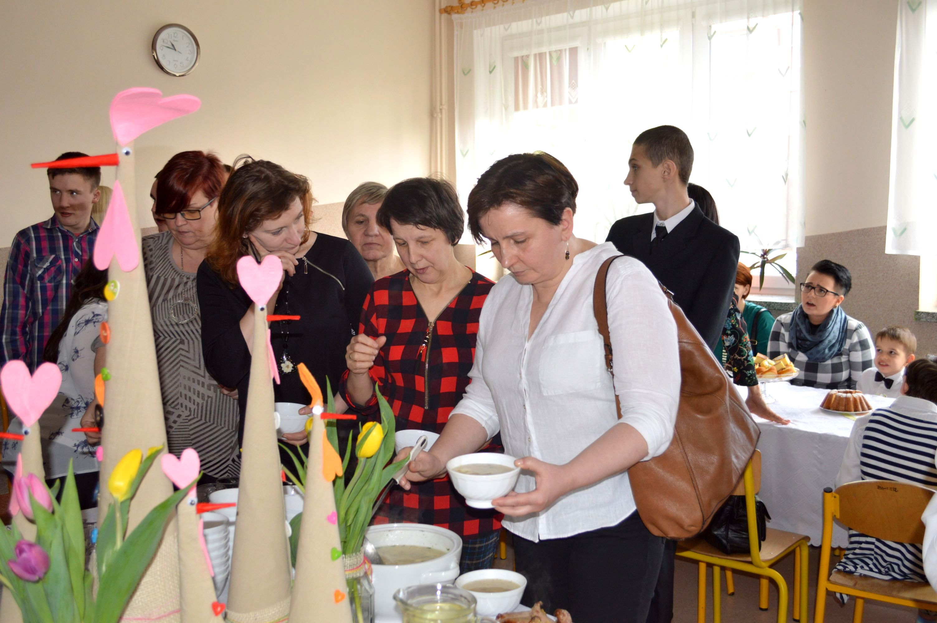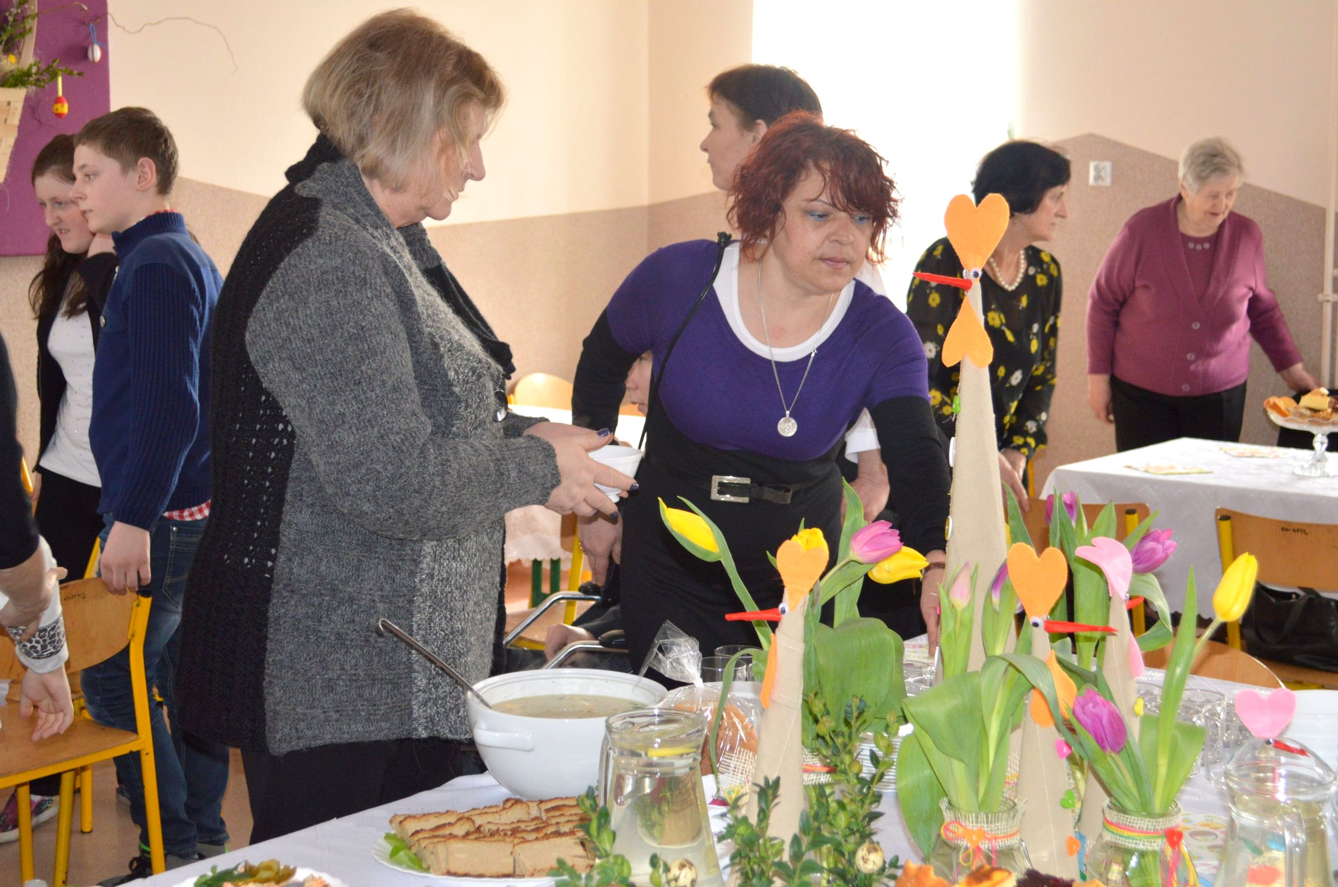 W czwartek, 17 marca, spotkaliśmy się wszyscy na Wielkanocy Szkolnej – szkolni artyści, nasi wychowankowie, wystąpili przed całą społecznością szkolną oraz gośćmi obecnymi na uroczystości. Goście z uznaniem wypowiadali się na temat występu uczniów. Po życzeniach wszyscy udaliśmy się na tradycyjny wielkanocny poczęstunek. Dekoracja świąteczna wprowadziła nas wszystkich w świąteczny nastrój. Uczniowie wraz z rodzicami, nauczycielami, wszystkimi pracownikami szkoły i zaproszonymi gośćmi próbowali potraw tradycyjnie podawanych na naszych wielkanocnych stołach, a przygotowanych przez nasze Panie z kuchni. Tradycja obchodzenia Świąt Wielkanocnych, najważniejszego święta dla chrześcijan, katolików, jest przekazywana przez wiele pokoleń, pozwala na chwilę zadumy, przemyśleń, jest okazją do spotkań w gronie nam najbliższych.
