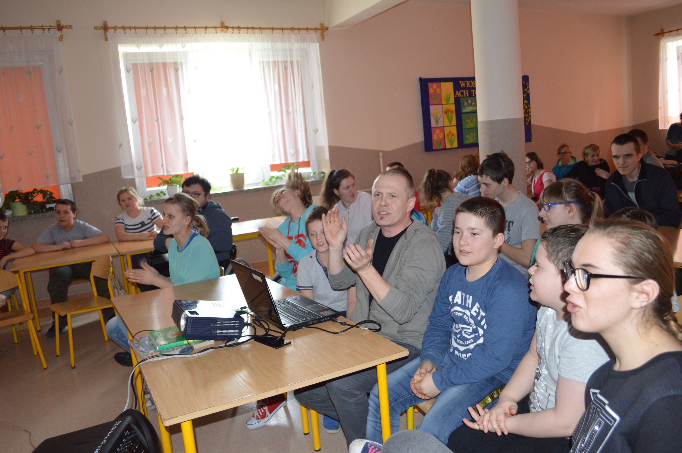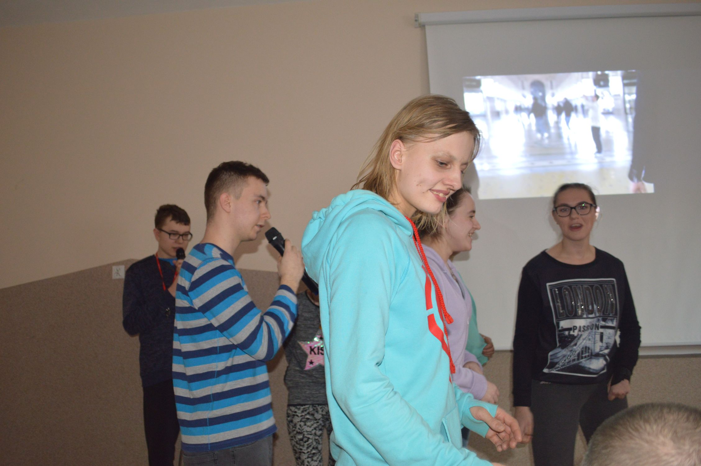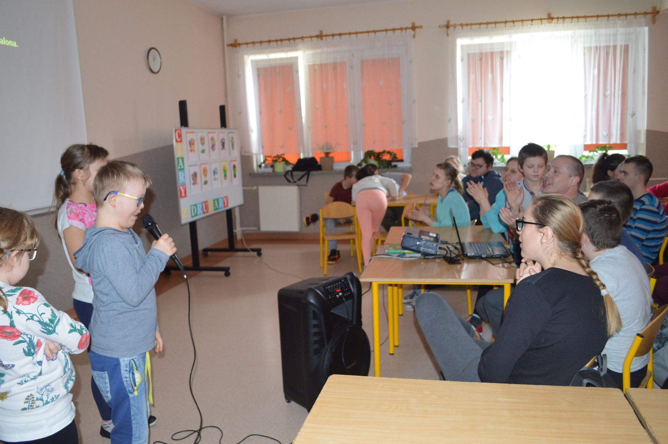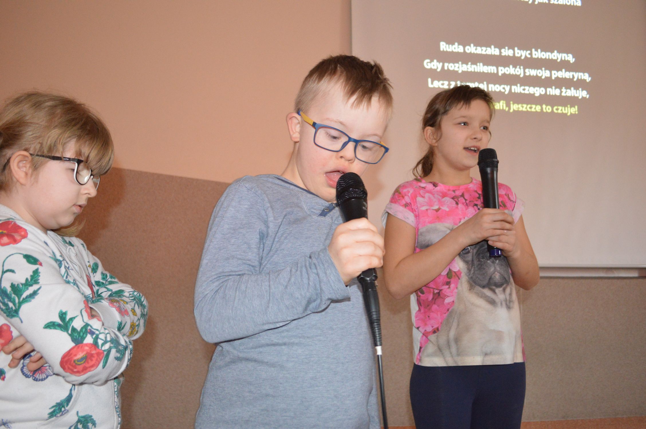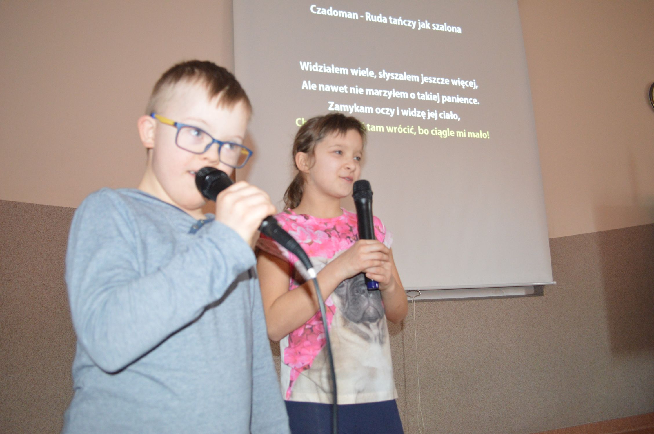 W naszej szkole w tym dniu solidaryzowaliśmy się ze wszystkimi ludźmi na świecie, którzy ten dodatkowy chromosom posiadają. Nauczyciele przyszli w kolorowych skarpetkach i razem z uczniami spędzali mile czas śpiewając ulubione piosenki w systemie karaoke. Po krótkim wstępie Pani Olgi Bielarskiej na temat obchodów Światowego Dnia Zespołu Downa Pan Grzegorz Nowotniak poprowadził „szkolne karaoke”. Samorząd uczniowski połączył w ten sposób obchody pierwszego dnia wiosny, które nierozerwalne już będą z obchodami Światowego Dnia Zespołu Downa.