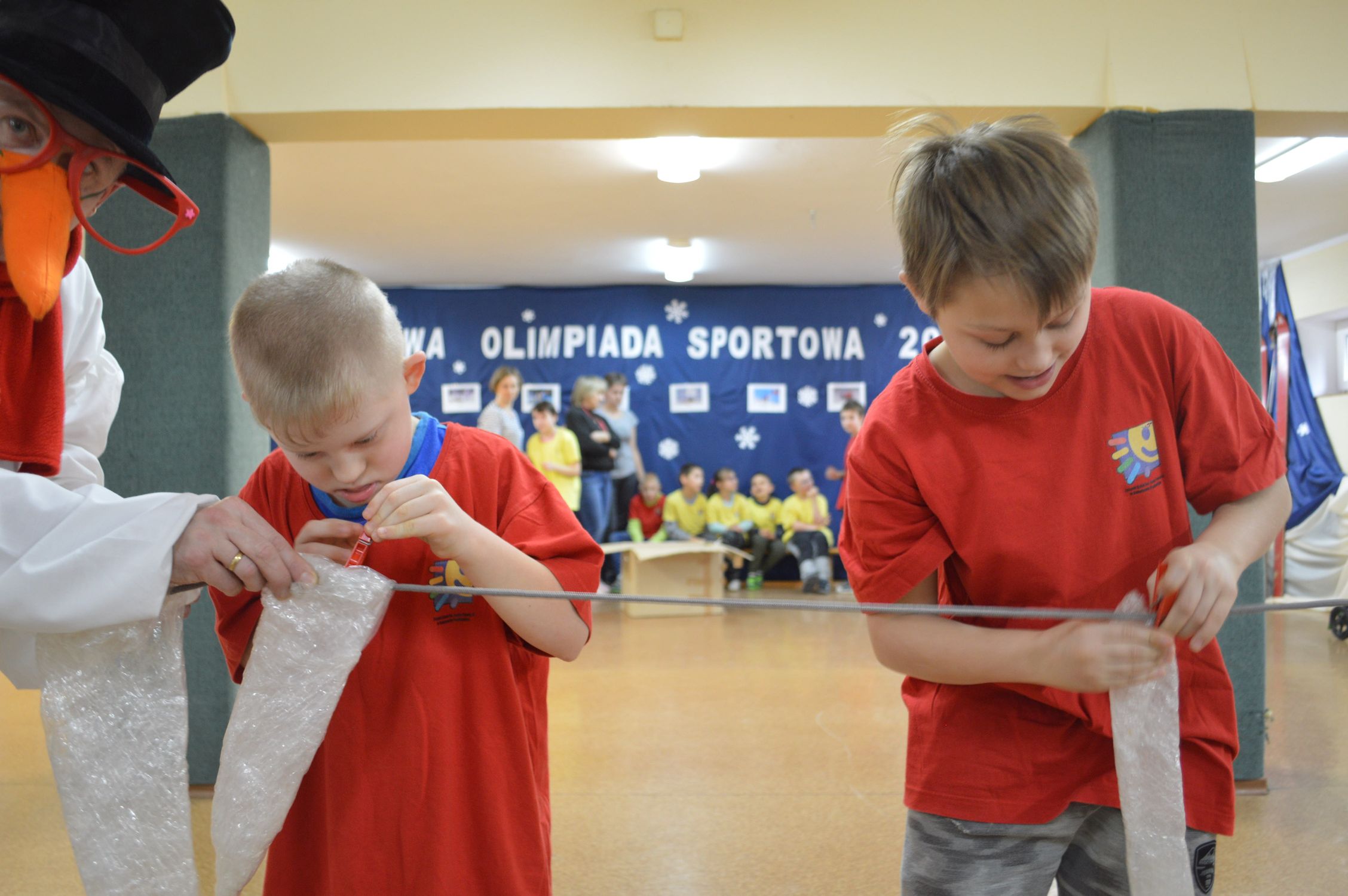 Ferie właśnie się skończyły i w naszej szkole 11 lutego miało miejsce niecodzienne wydarzenie związane z obecną porą roku. Mimo braku śniegu i całej zimowej aury, odbyła się VI Zimowa Olimpiada Sportowa. Jak co roku, na udekorowanej w olimpijskim stylu sali gimnastycznej, najmłodsi uczniowie naszej szkoły wcielili się w rolę zimowych olimpijczyków.