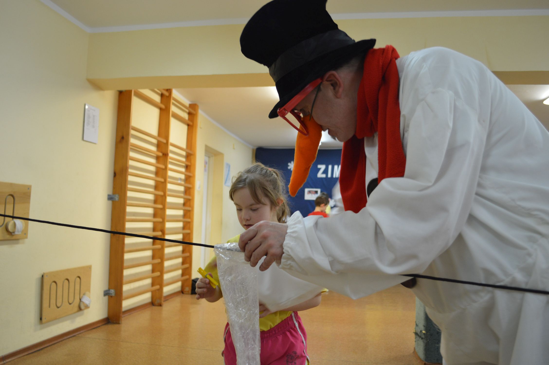 Igrzyska oficjalnie otworzyli: Pani Dyrektor Beata Biernat oraz zimowi bohaterowie: pomocnicy Świętego Mikołaja -Elfy oraz Bałwanek, w których rolę wcielili się nauczycielki wf-u pani Małgorzata Dąbrowiecka i pani Aneta Nowotniak oraz pan Grzegorz Nowotniak. Uczniowie podzieleni na dwa zespoły próbowali swych sił w takich konkurencjach jak : pchanie śnieżnych kul, strzały kijami hokejowymi do bramek , jazda na wózkach, wieszanie sopli. Ostatnią konkurencją była jazda na sankach ciągniętych przez Bałwanka.