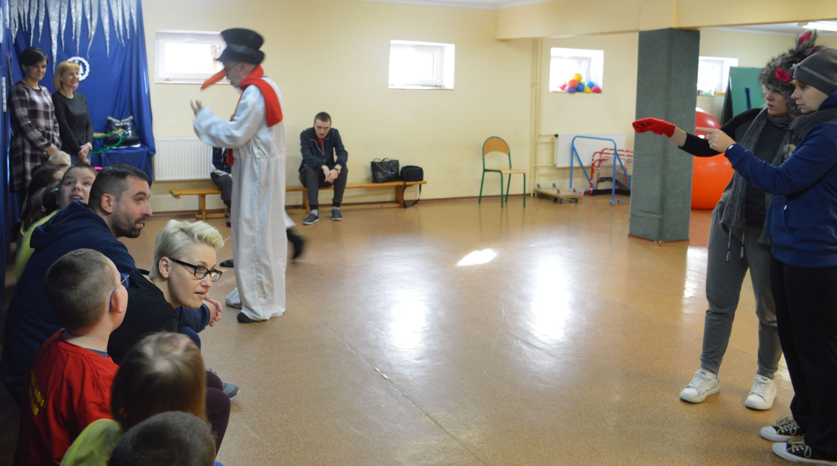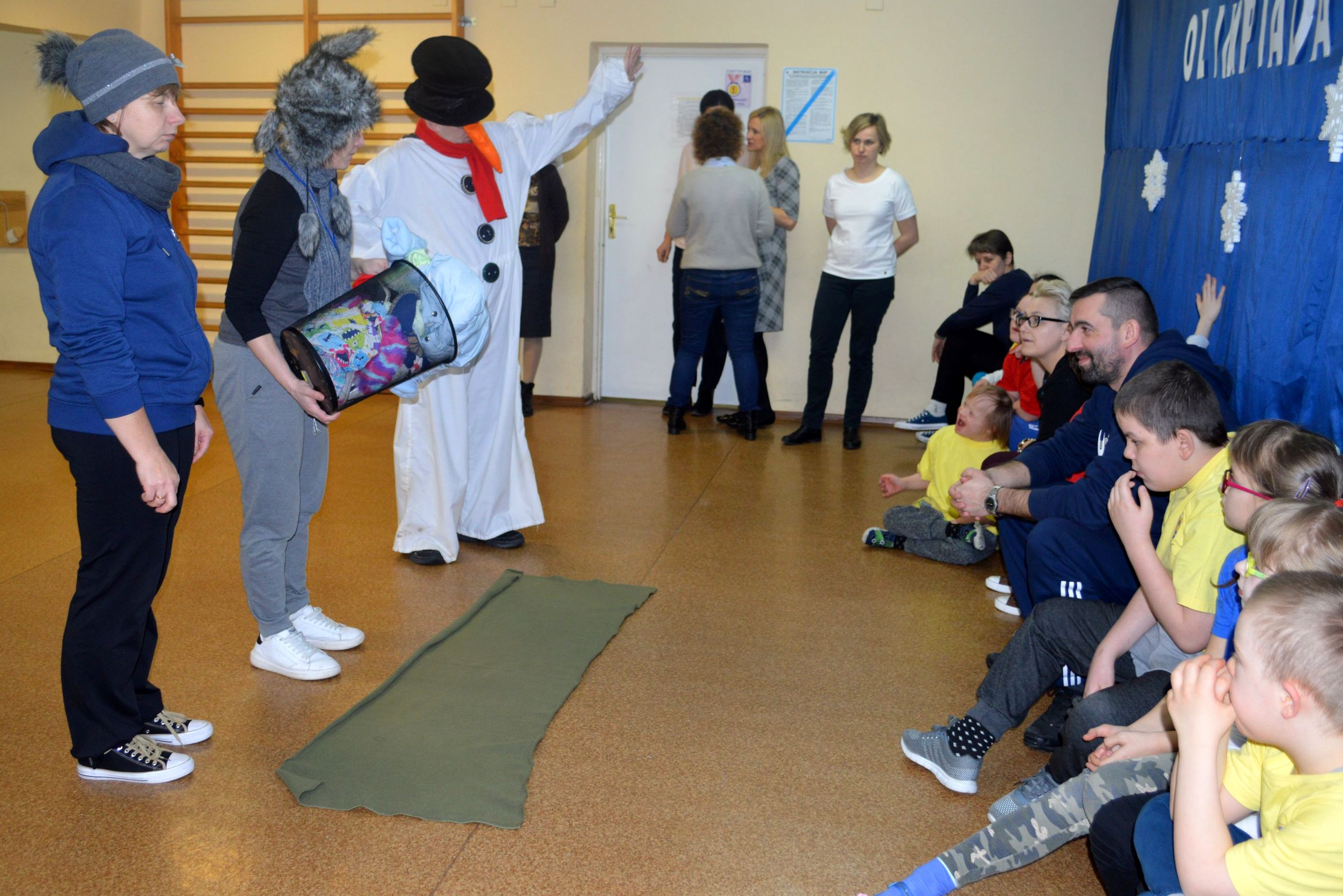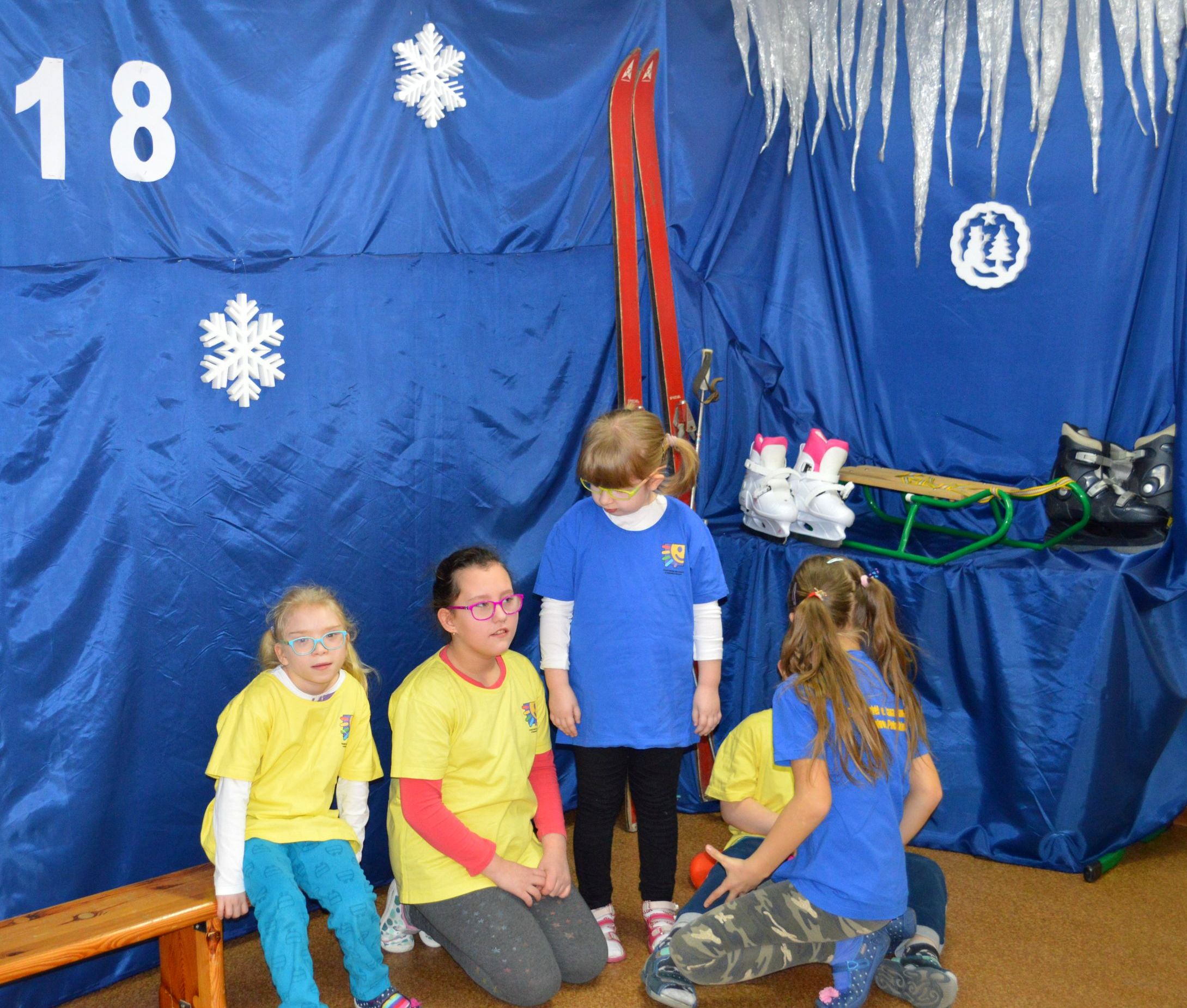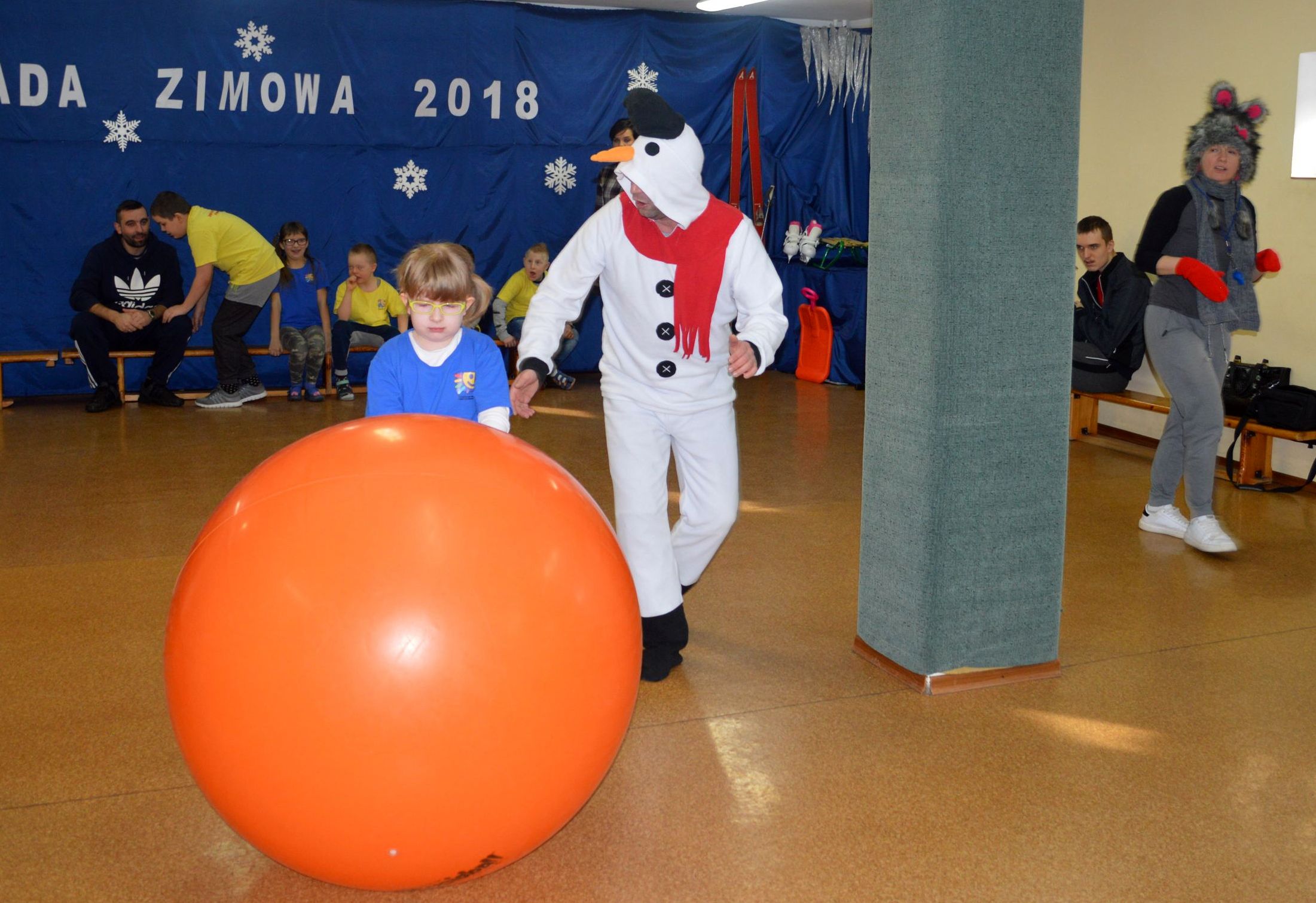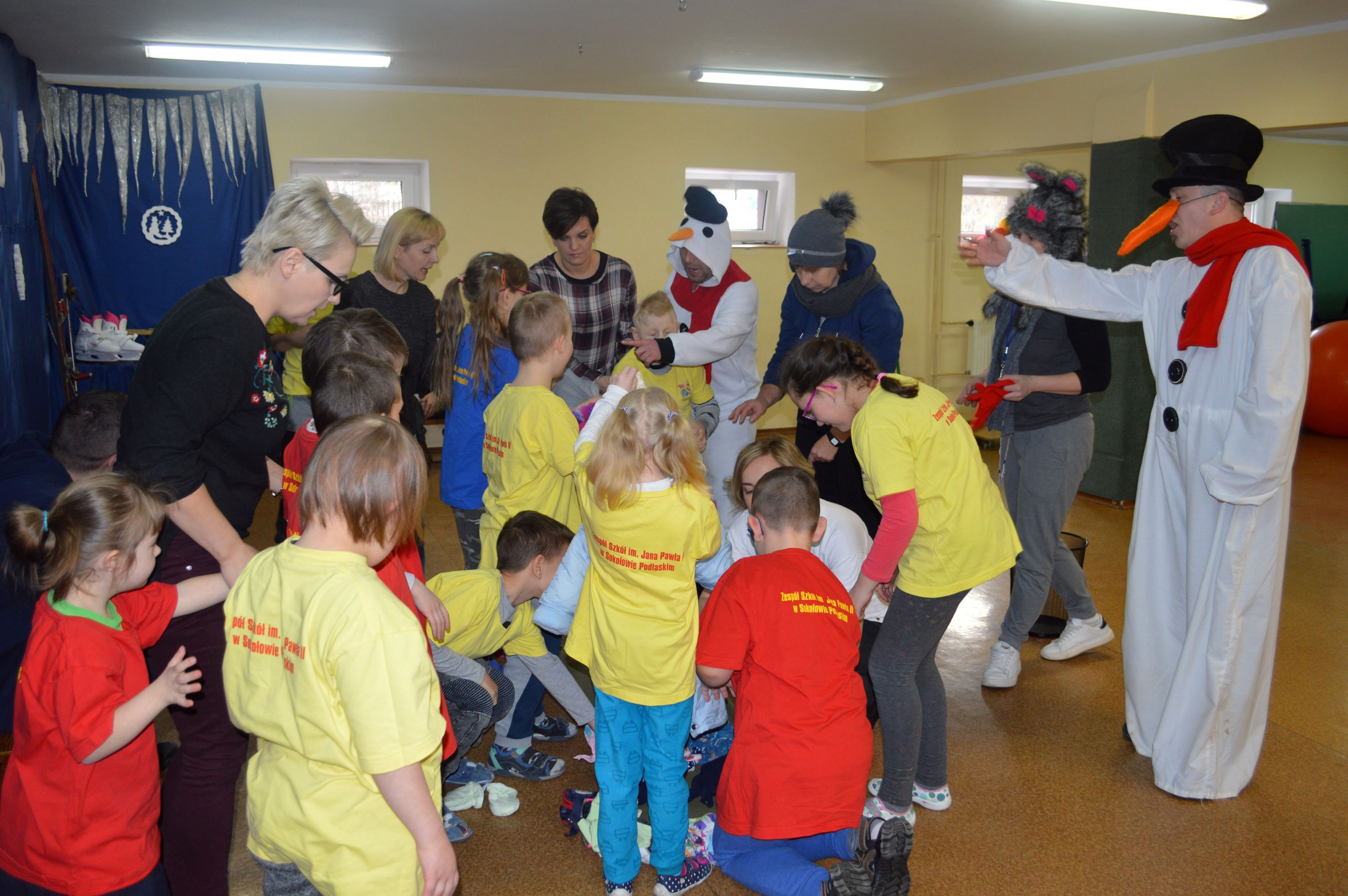 Toczenie wielkiej piłki „ kuli śnieżnej” , rzut piłeczkami „śnieżkami” do kosza, ubieranie miśka w „zimowy strój„, wieszanie „sopli„, przejście przez tunel „zaspę”, jazda na „sankach” to tylko niektóre z konkurencji, z którymi przyszło zmierzyć się naszym uczniom podczas Olimpiady. W sportowych zmaganiach pomagały dzieciom dwa sympatyczne bałwanki, w których rolę wcielili się p. Grzegorz Nowotniak i p. Przemysław Mroczkowski. Wszyscy bawili się doskonale a ich trud został nagrodzony. Dzieci z rąk pana wicedyrektora Waldemara Prokopczuka otrzymali złote medale ufundowane przez Radę Rodziców.