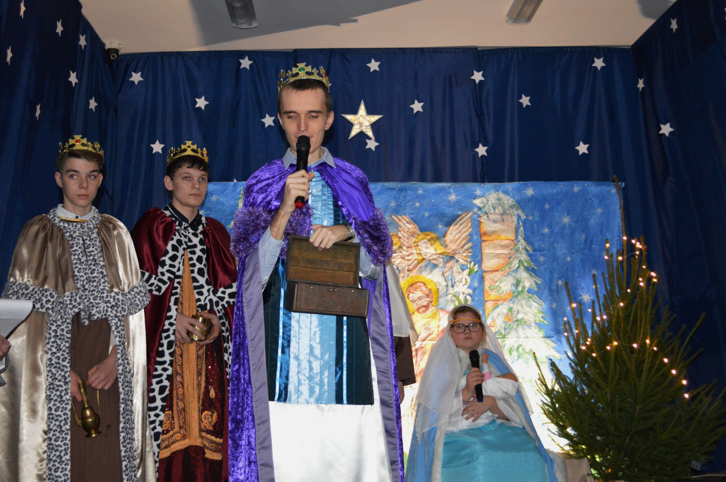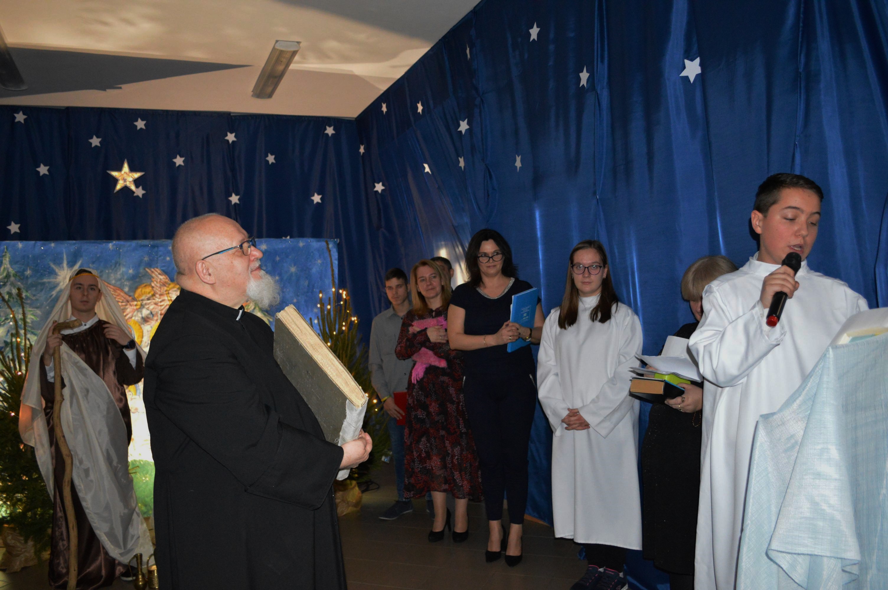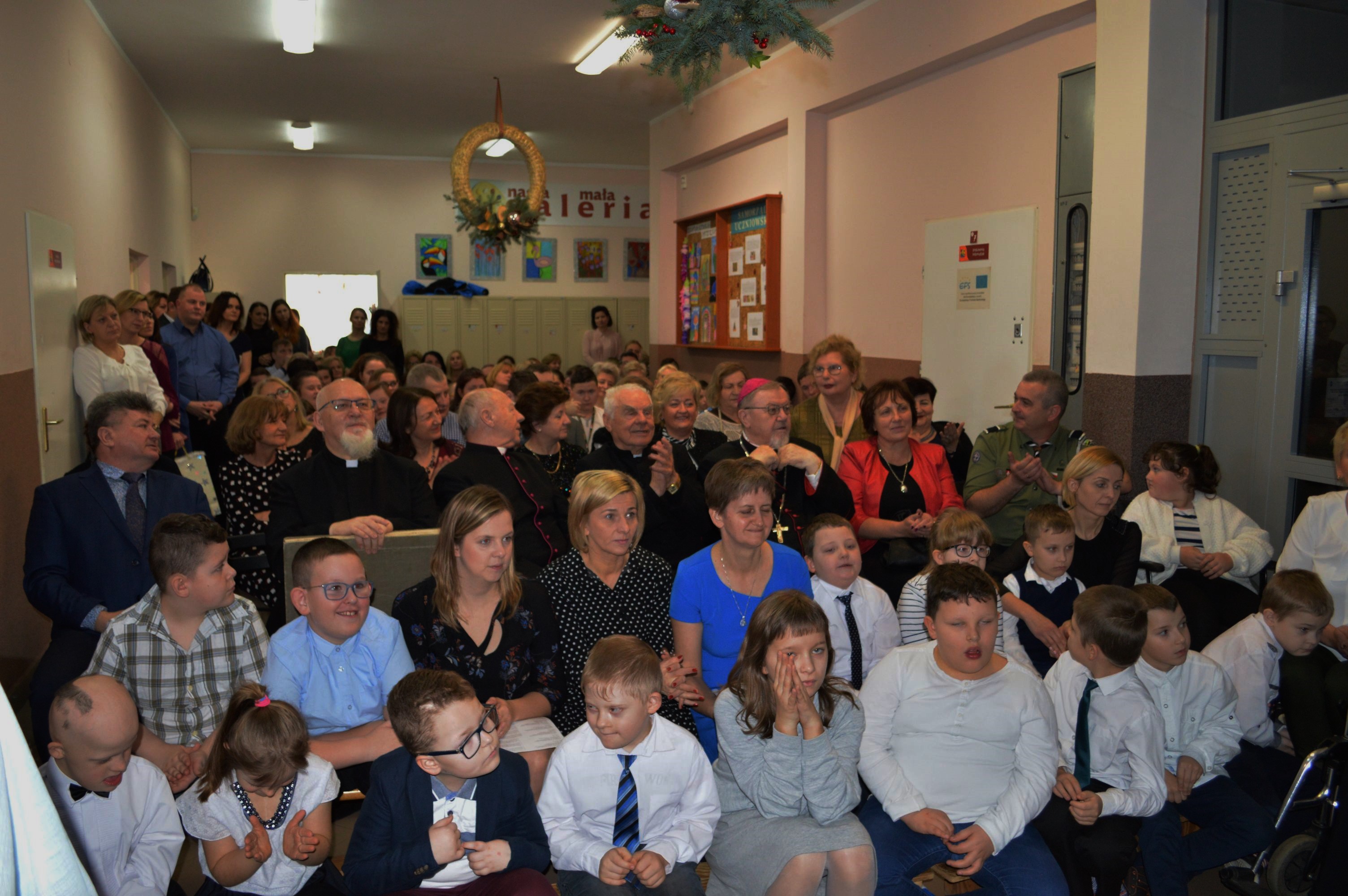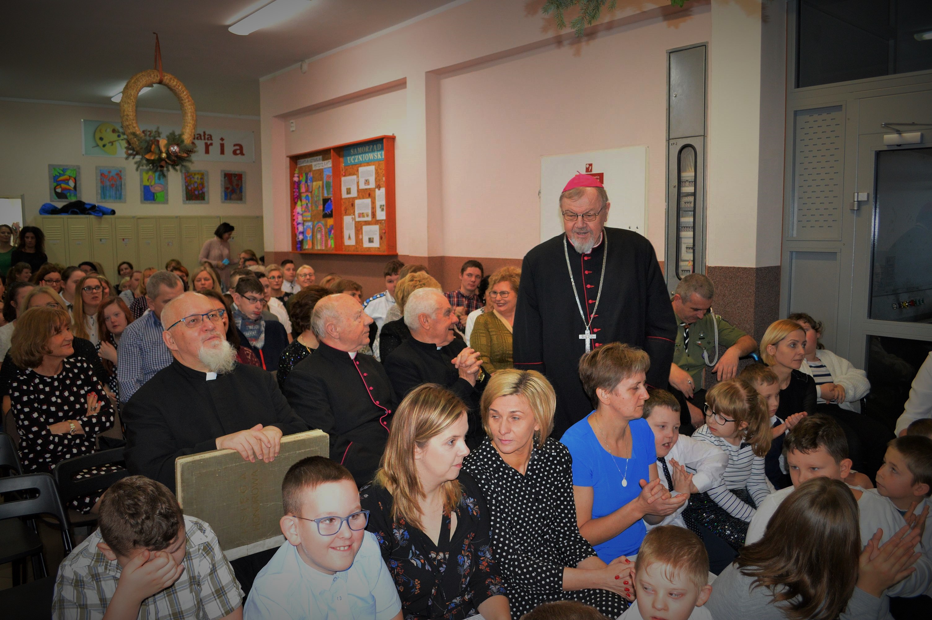 W dniu dzisiejszym spotkaliśmy się, jak co roku w okresie przedświątecznym, na Szkolnej Wigilii. Dzieci, Rodzice, Nauczyciele, Pracownicy Szkoły oraz Zaproszeni Goście – wszyscy, którzy tworzą jedną, wielką szkolną rodzinę. Najpierw występy, w których uczestniczyli uczniowie wspólnie z nauczycielami, po występach życzenia i przemówienia gości, przy „Szopce Betlejemskiej” dzielenie się opłatkiem i wreszcie „Wigilijny Posiłek” z tradycyjnymi potrawami. Coraz bliżej Święta ! …