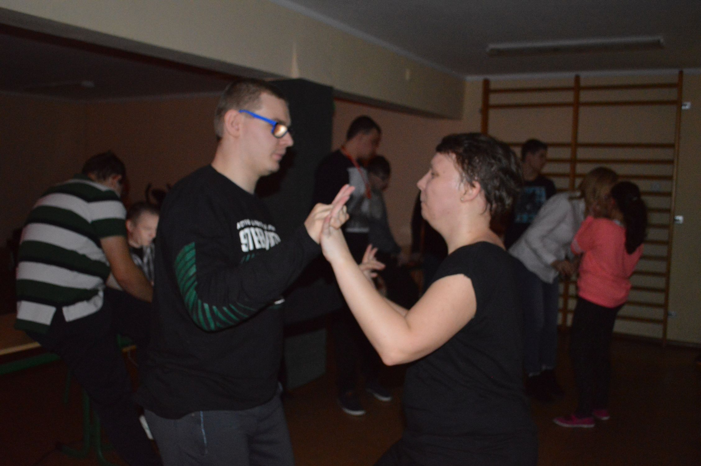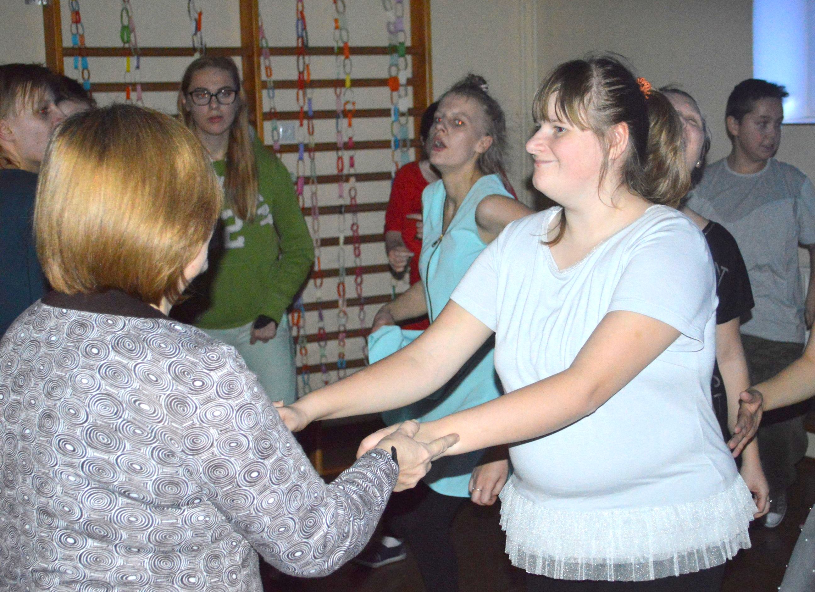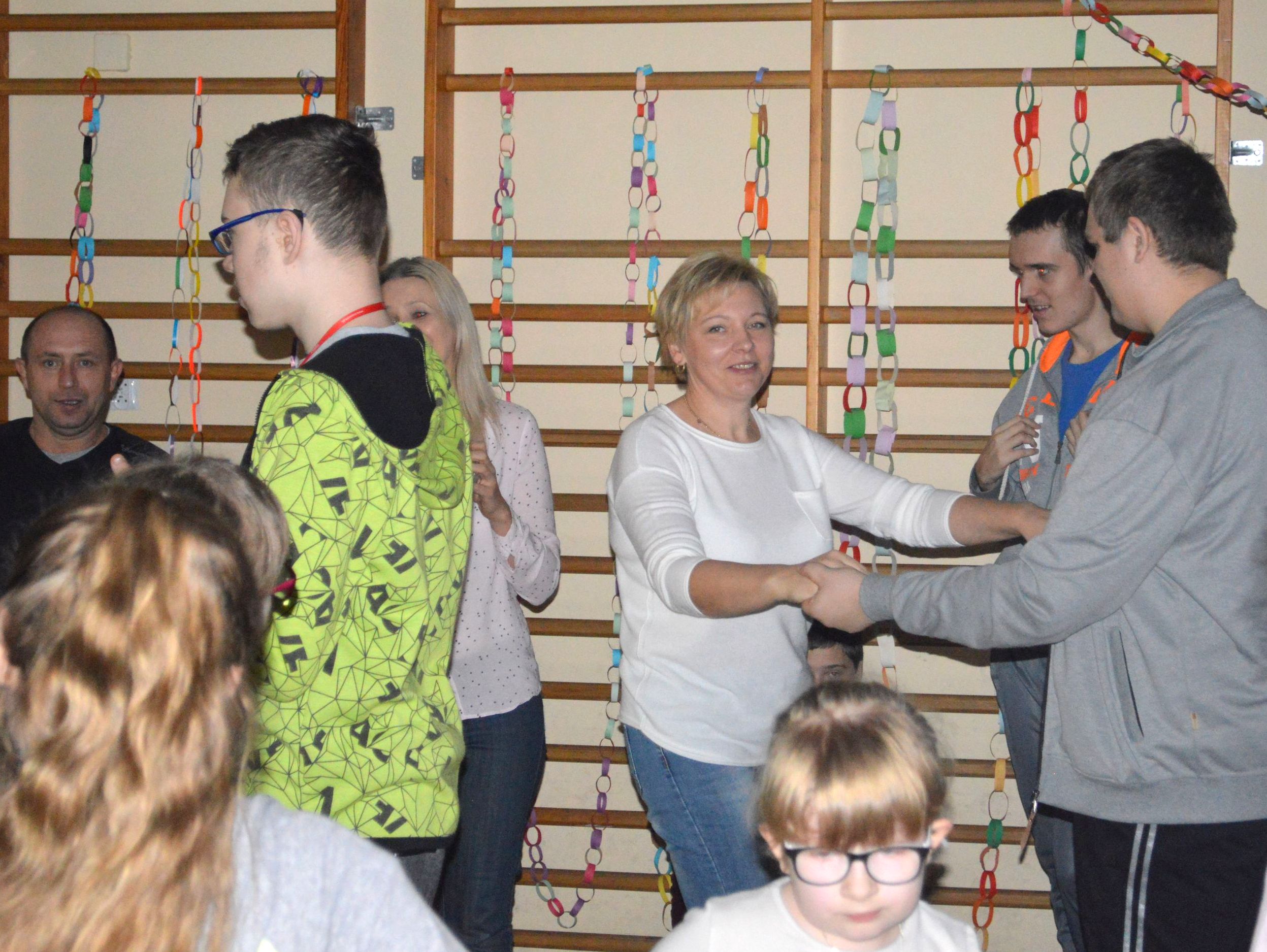 Zostaliśmy serdecznie powitani przez Dyrektora szkoły i organizatorów. Spotkanie rozpoczęły zabawy relaksacyjne i wspólne śpiewanie kolęd przy akompaniamencie ks. Arbaszewskiego.