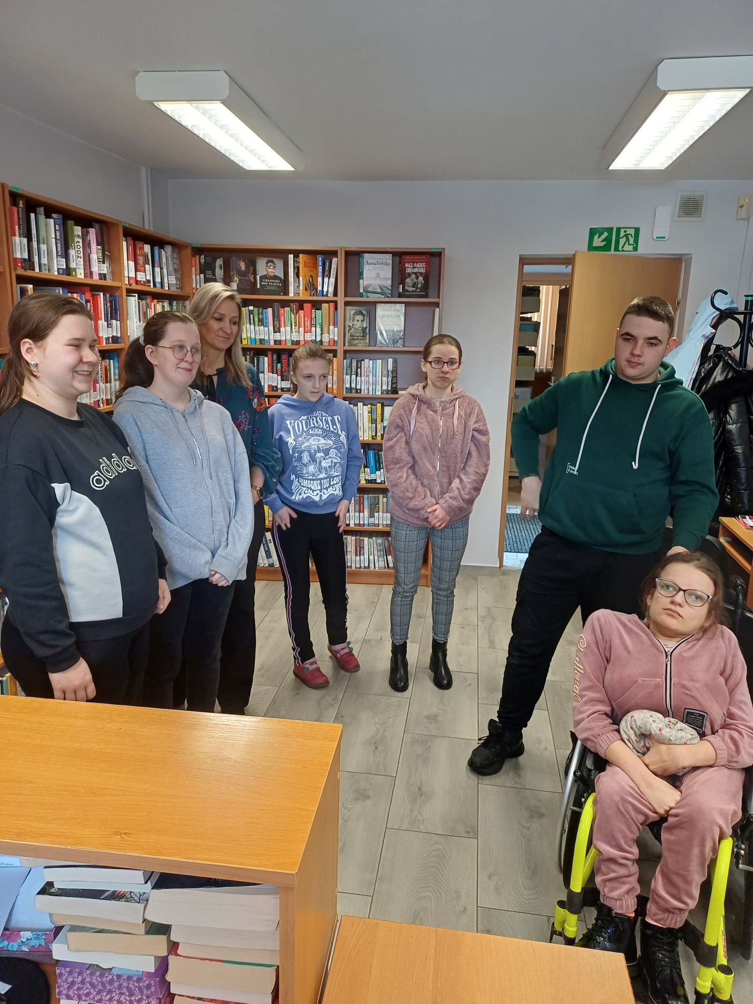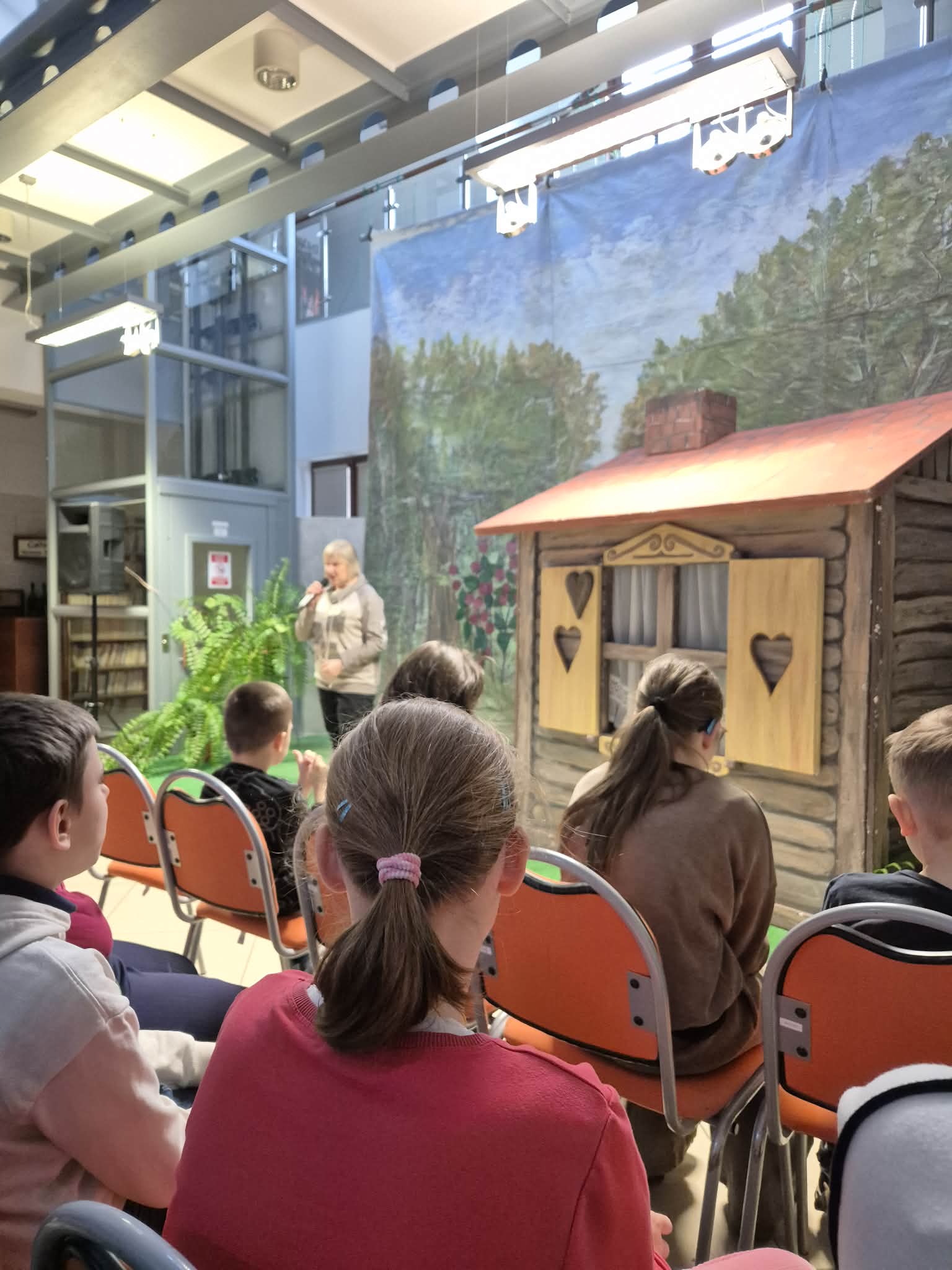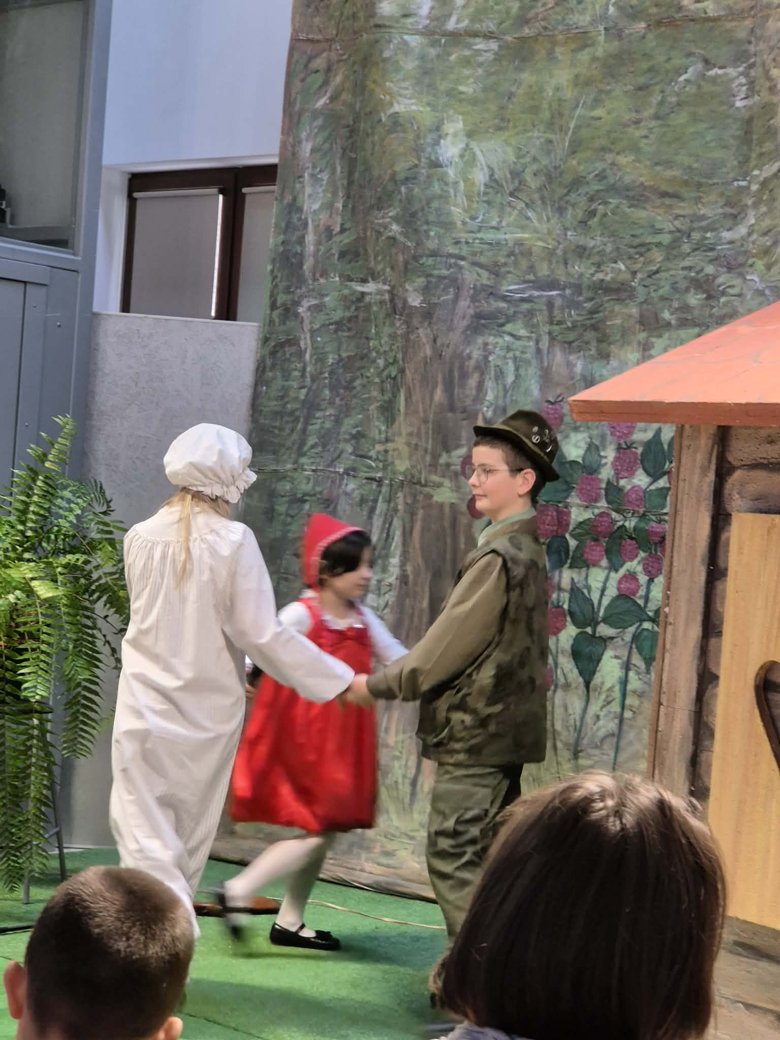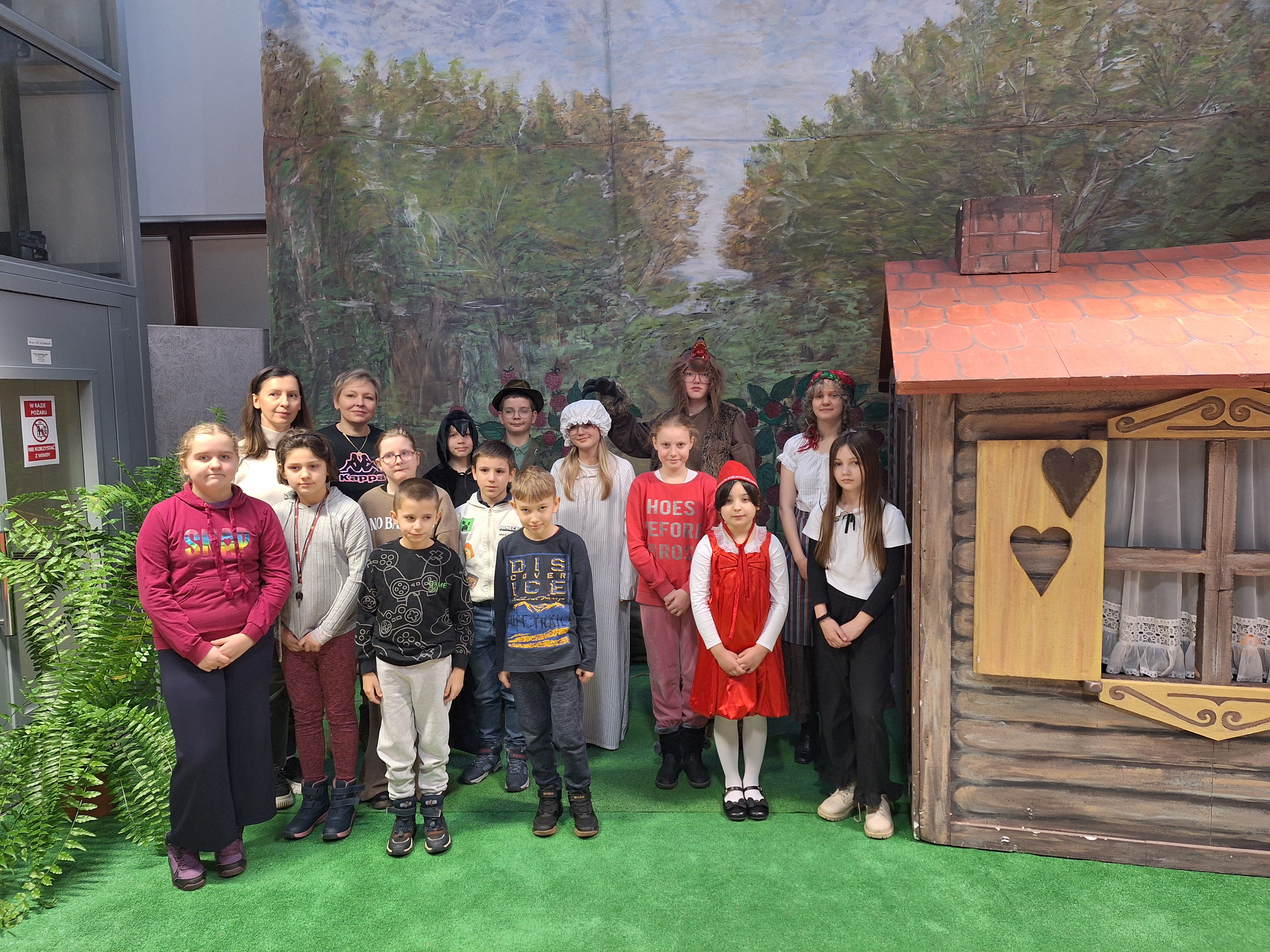 Dnia 24 lutego 2026 roku klasy : I-II-IIIa i IIIb z wychowawcami p. Anitą Rurarz i Mirosławą Strzałą wybrały się do Miejskiej Biblioteki w Sokołowie Podlaskim. Dzieci obejrzały przedstawienie teatralne „Czerwony Kapturek” w reżyserii p. Bożeny Mrozowskiej –Gozdek. Aktorami były dzieci z Koła Teatralnego „Wiraż”. Przedstawienie zachwyciło wszystkich. Przepiękna dekoracja i cudowna gra młodych aktorów zasługiwała na wielkie brawa. Panie z biblioteki pokazały dzieciom księgozbiory, opowiedziały ciekawe historie o bibliotece, zachęciły do czytelnictwa i odwiedzania właśnie takich miejsc kulturalnych.